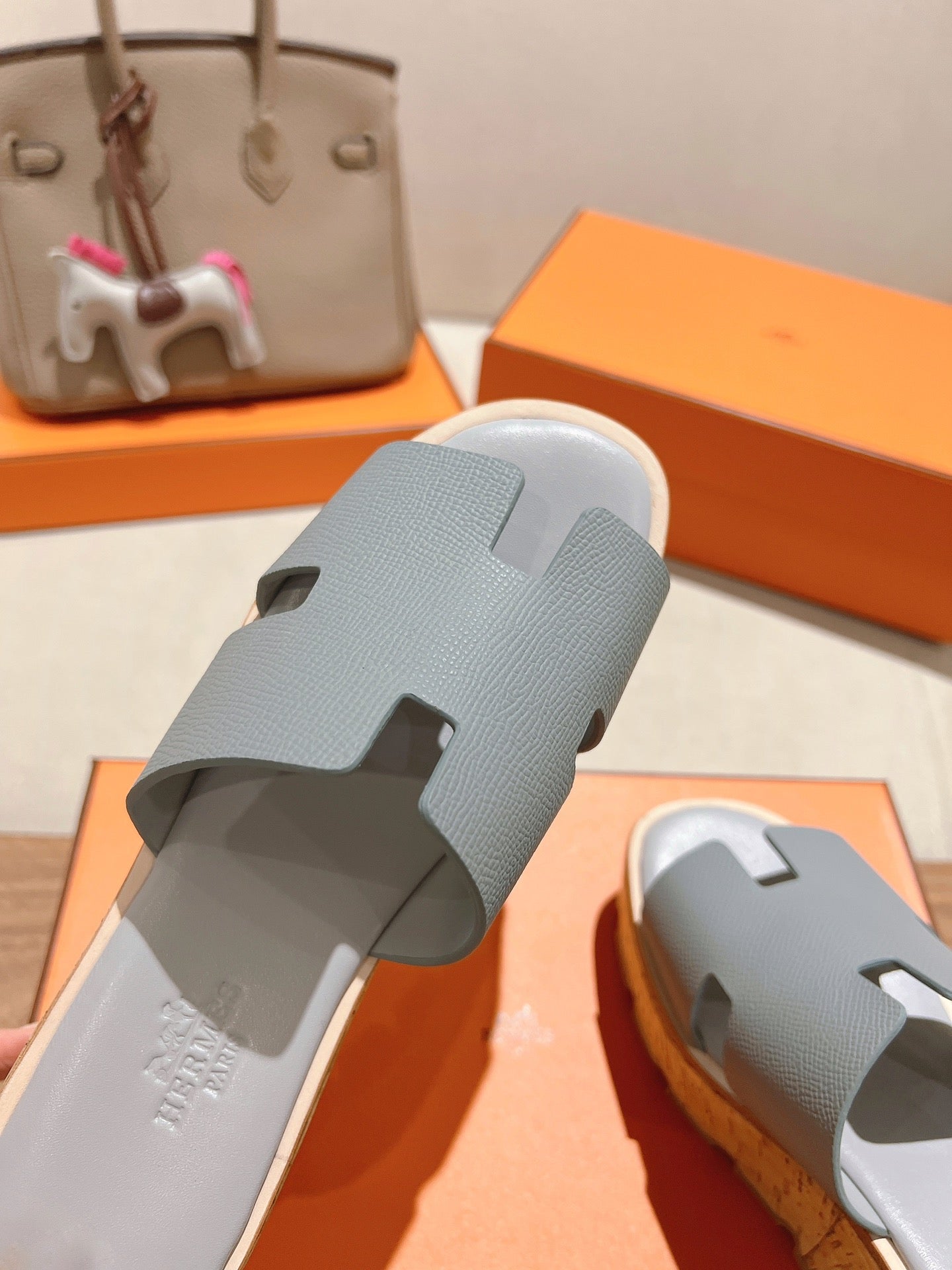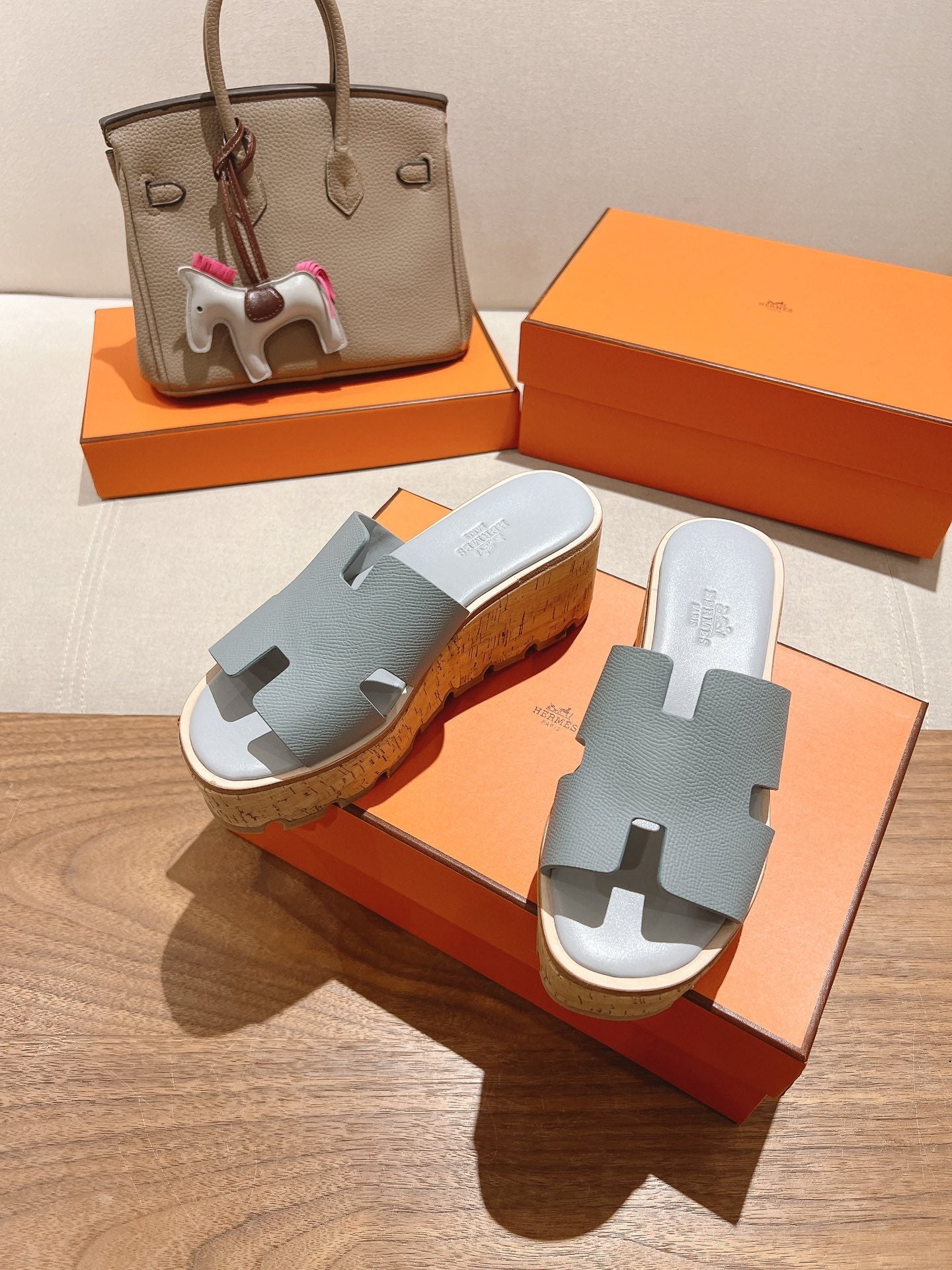 HM 25S HIGH WEDGE SANDALS IN LIGHT GREY LAMBSKIN STYLE 13