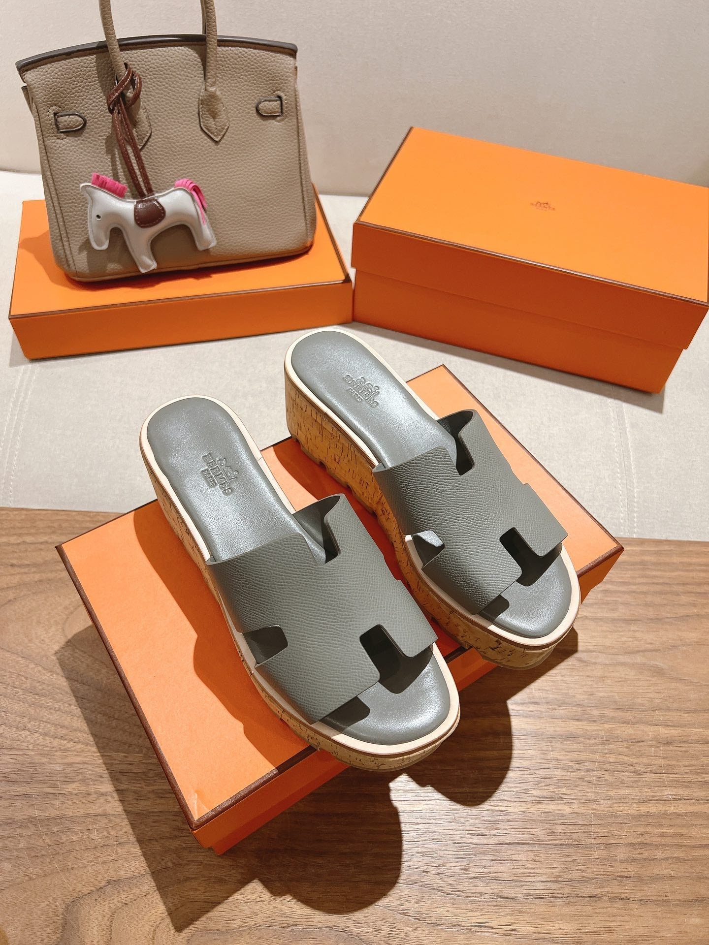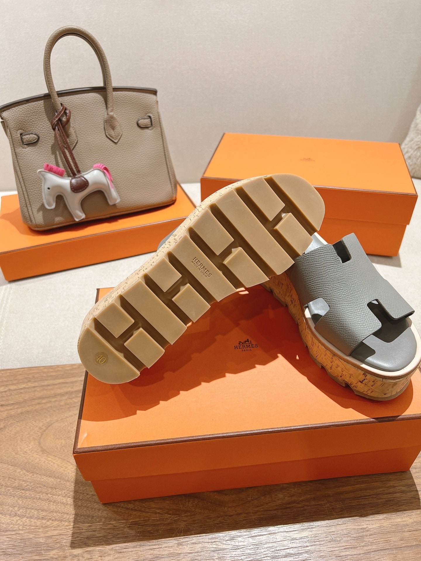 HM 25S HIGH WEDGE SANDALS IN LIGHT GREY LAMBSKIN STYLE 9