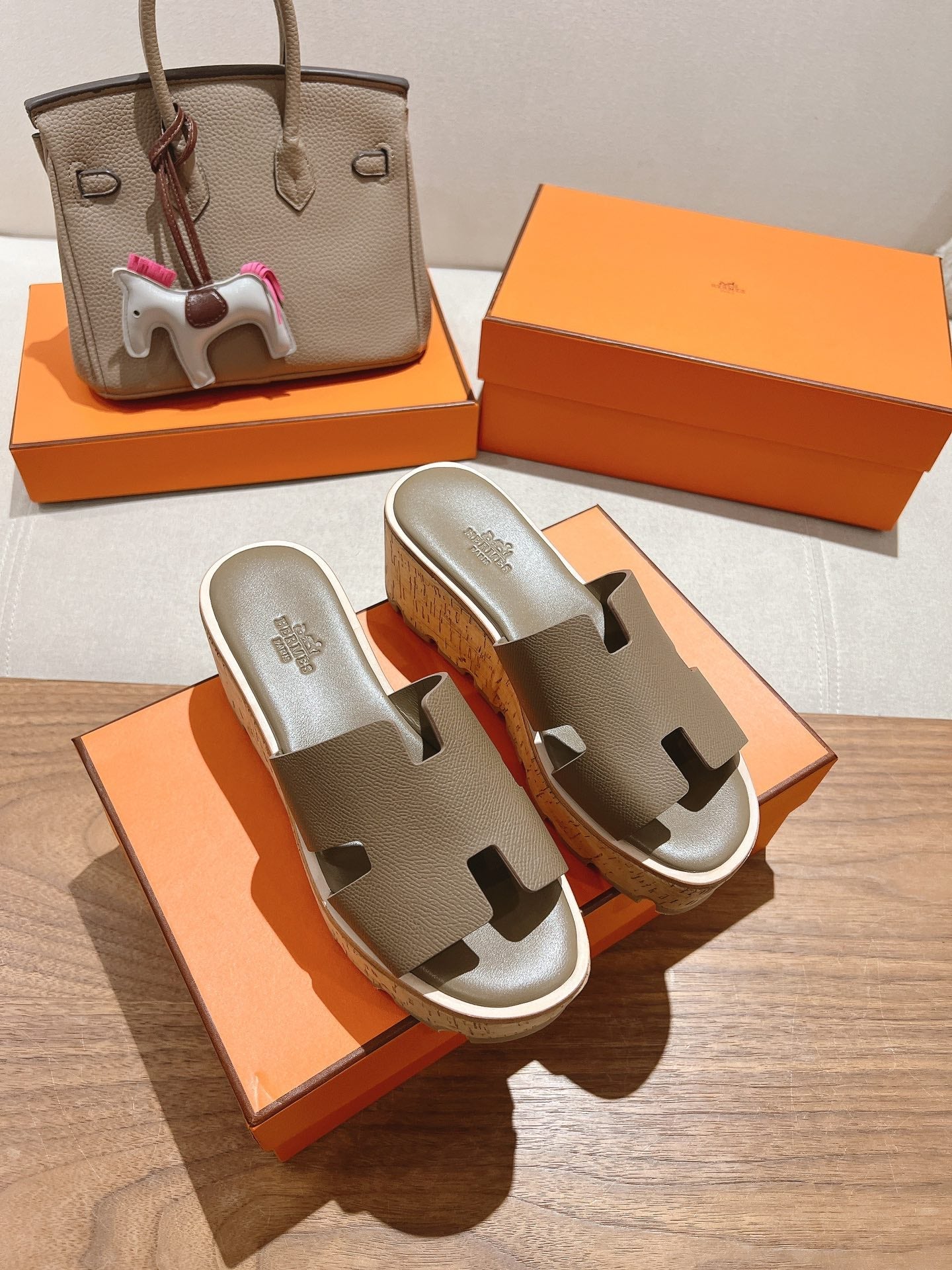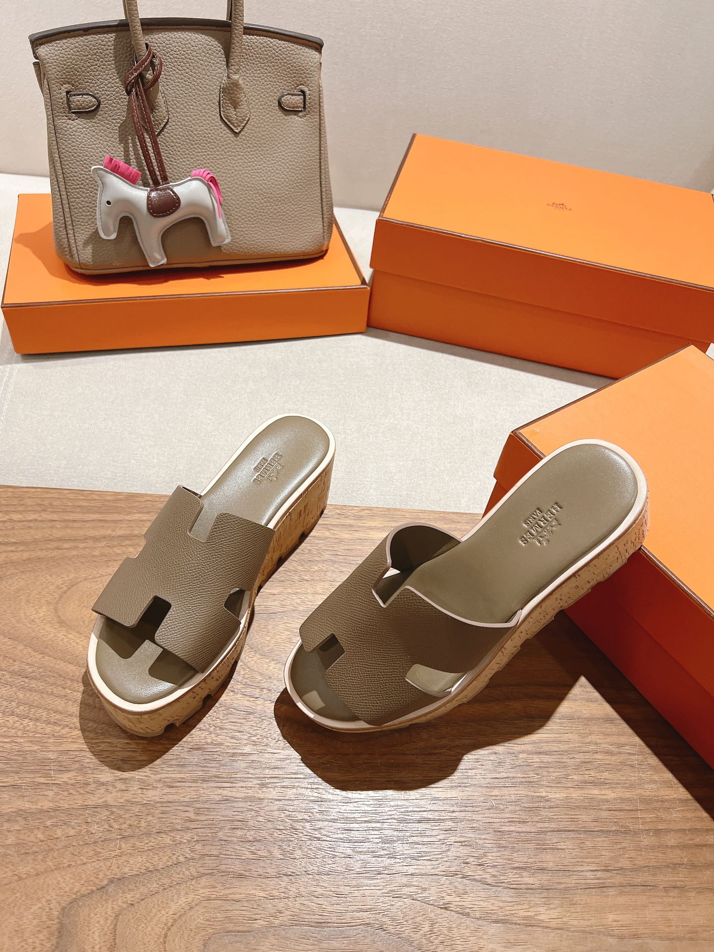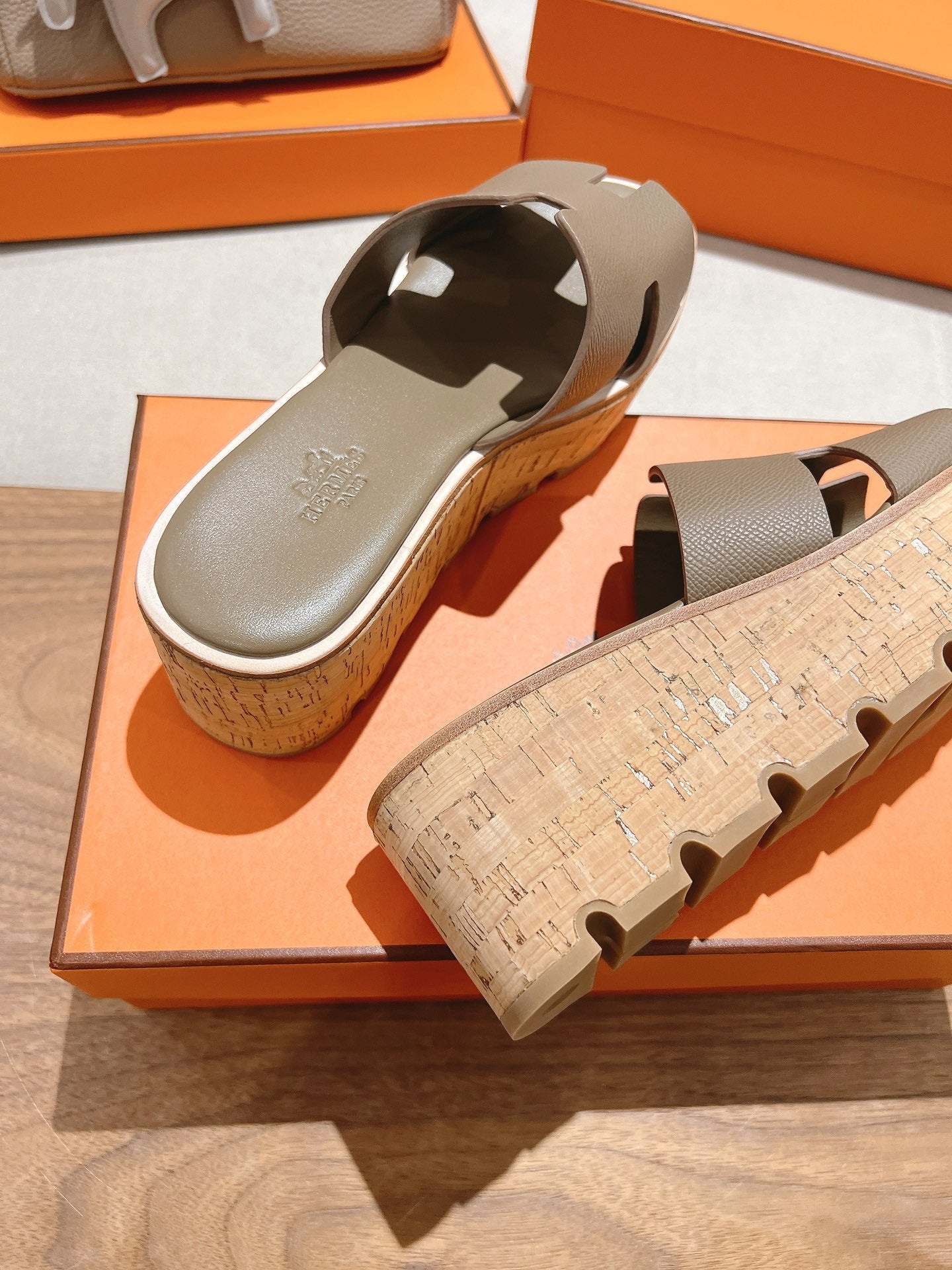 HM 25S HIGH WEDGE SANDALS IN MOCHA BROWN LAMBSKIN STYLE 15