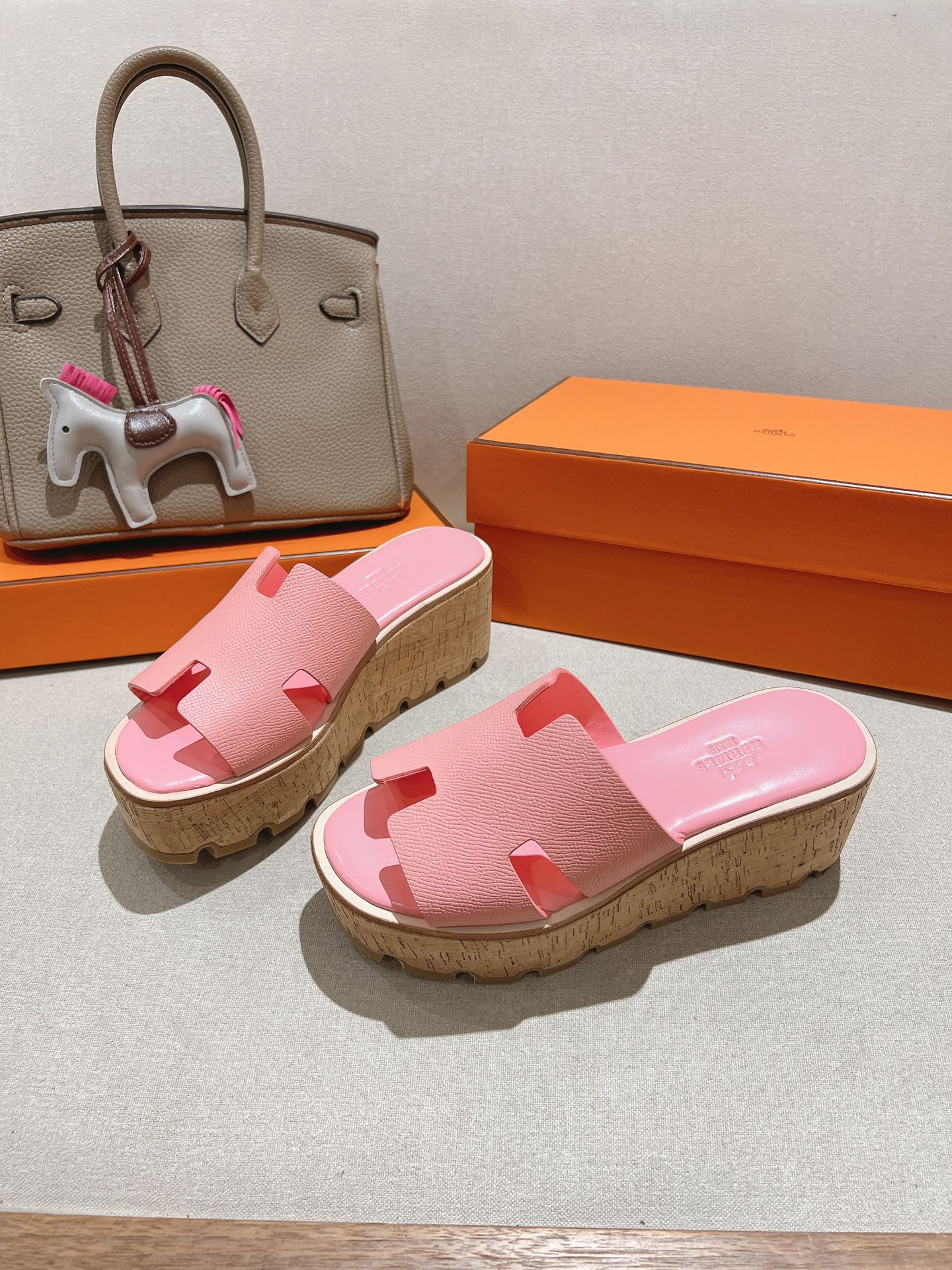 HM 25S HIGH WEDGE SANDALS IN PINK LAMBSKIN STYLE 31