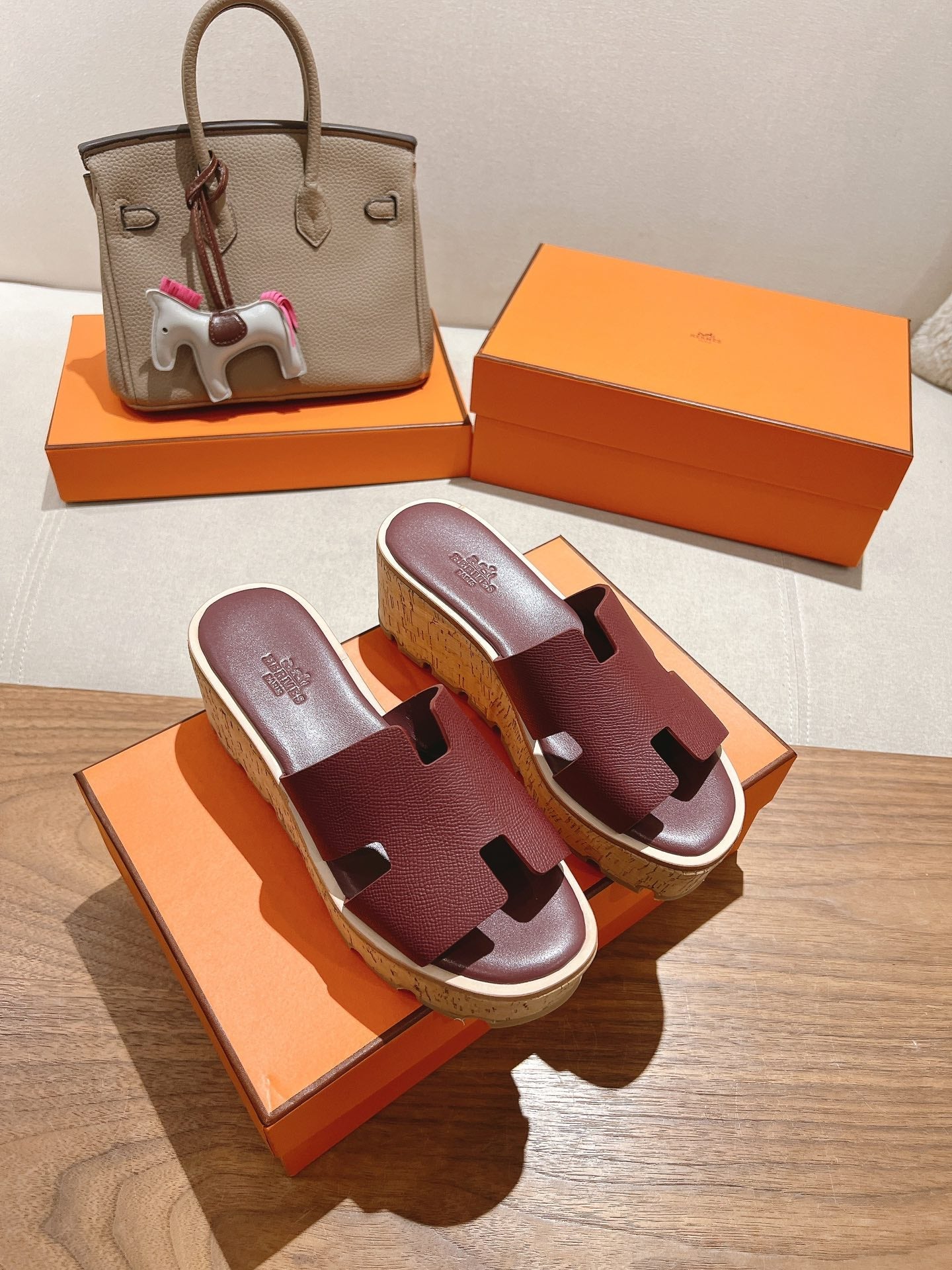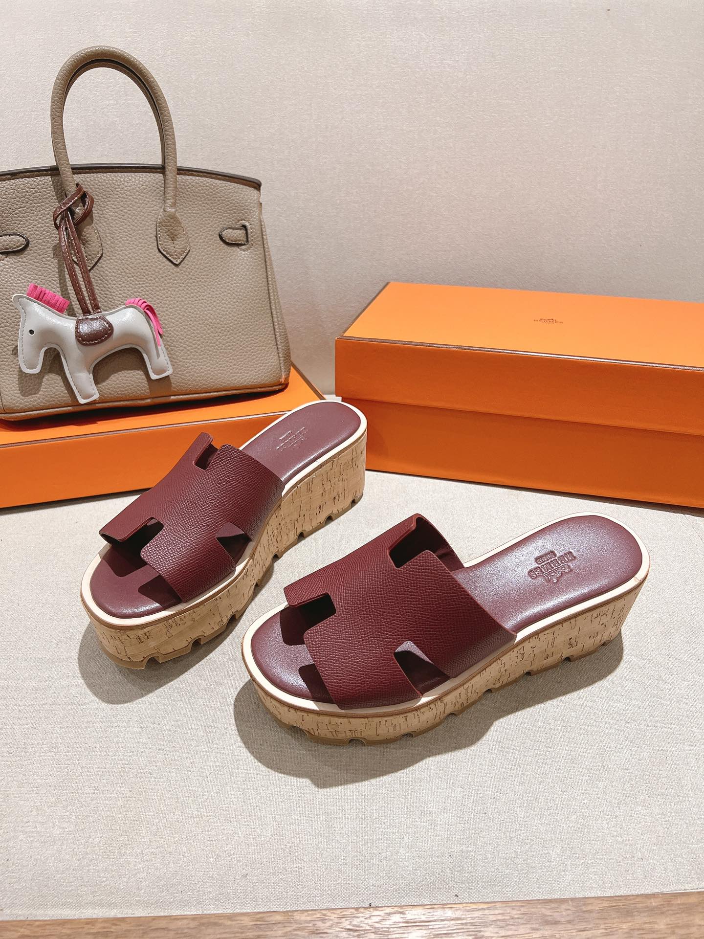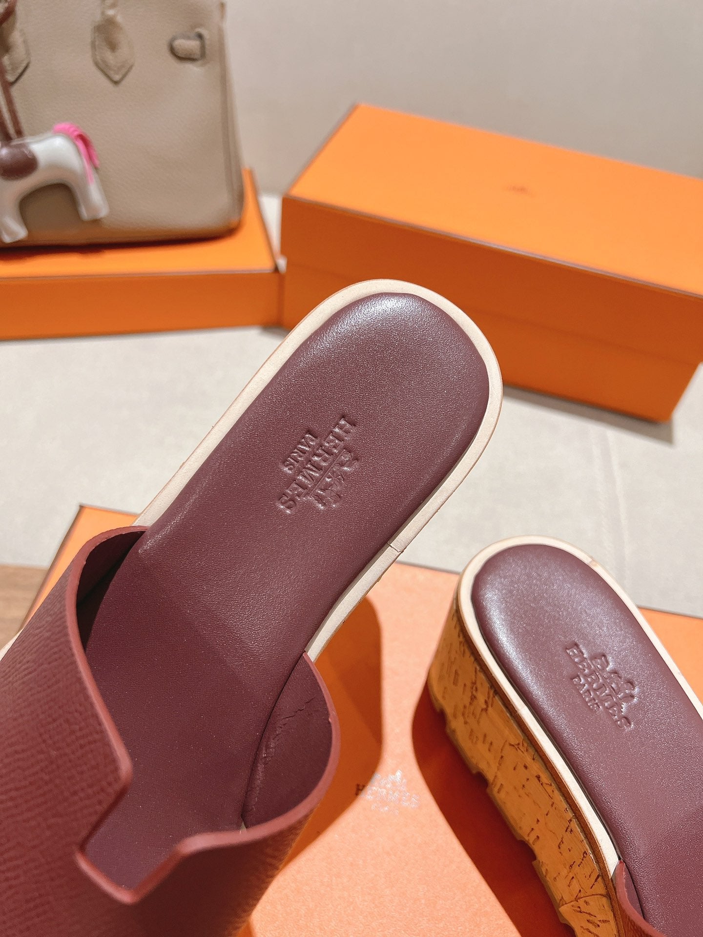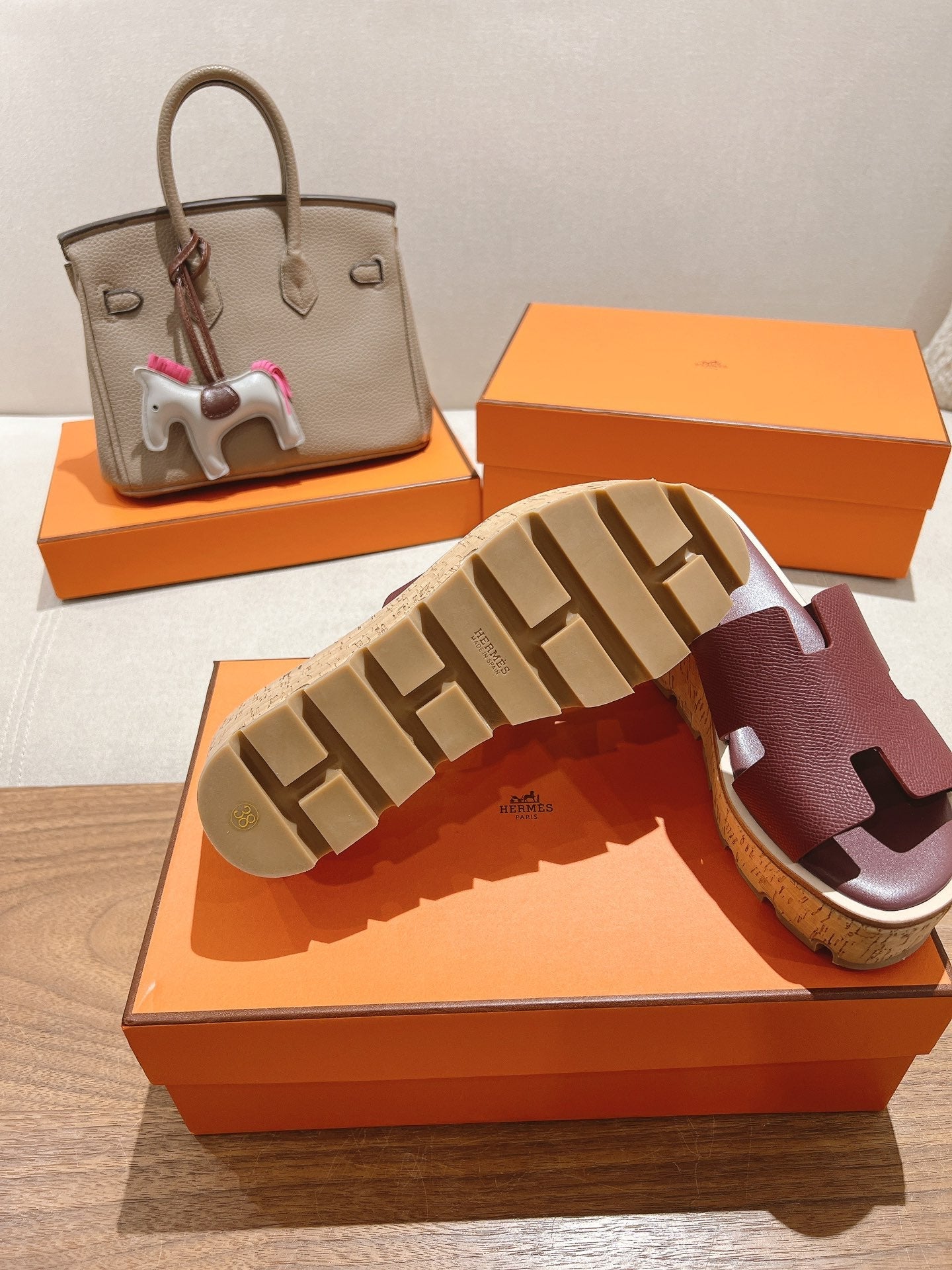 HM 25S HIGH WEDGE SANDALS IN RICH WINE RED LAMBSKIN STYLE 21