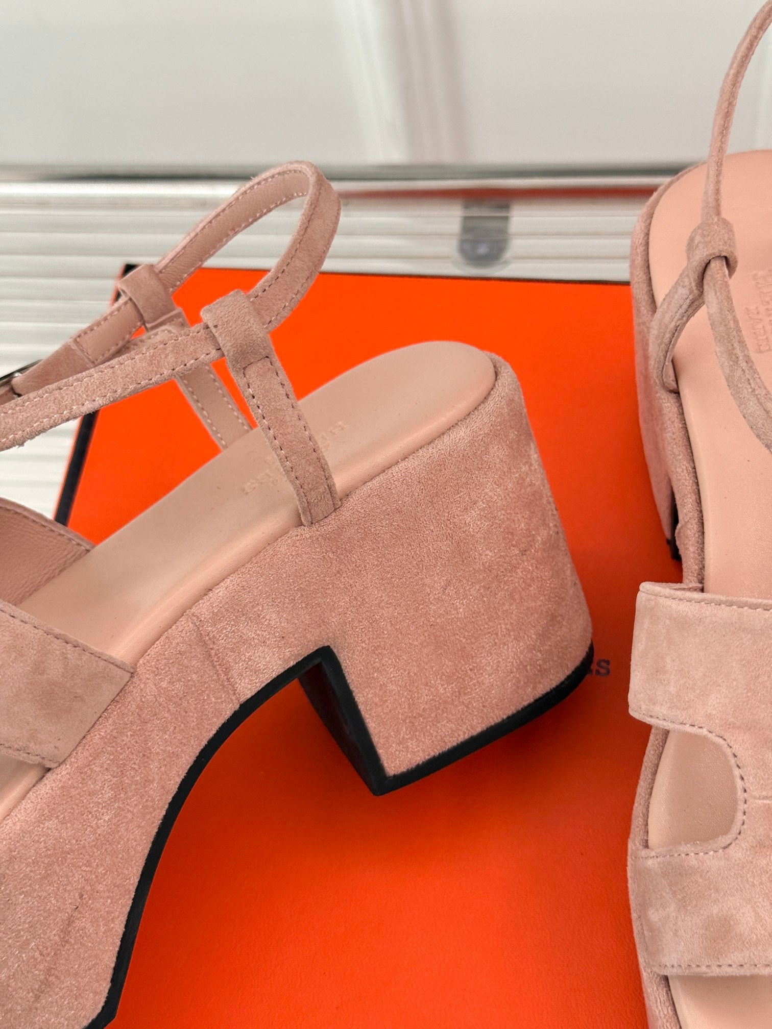 HM 25S JAM 30 HIGH-HEEL SANDAL IN PEACH PINK SUEDE