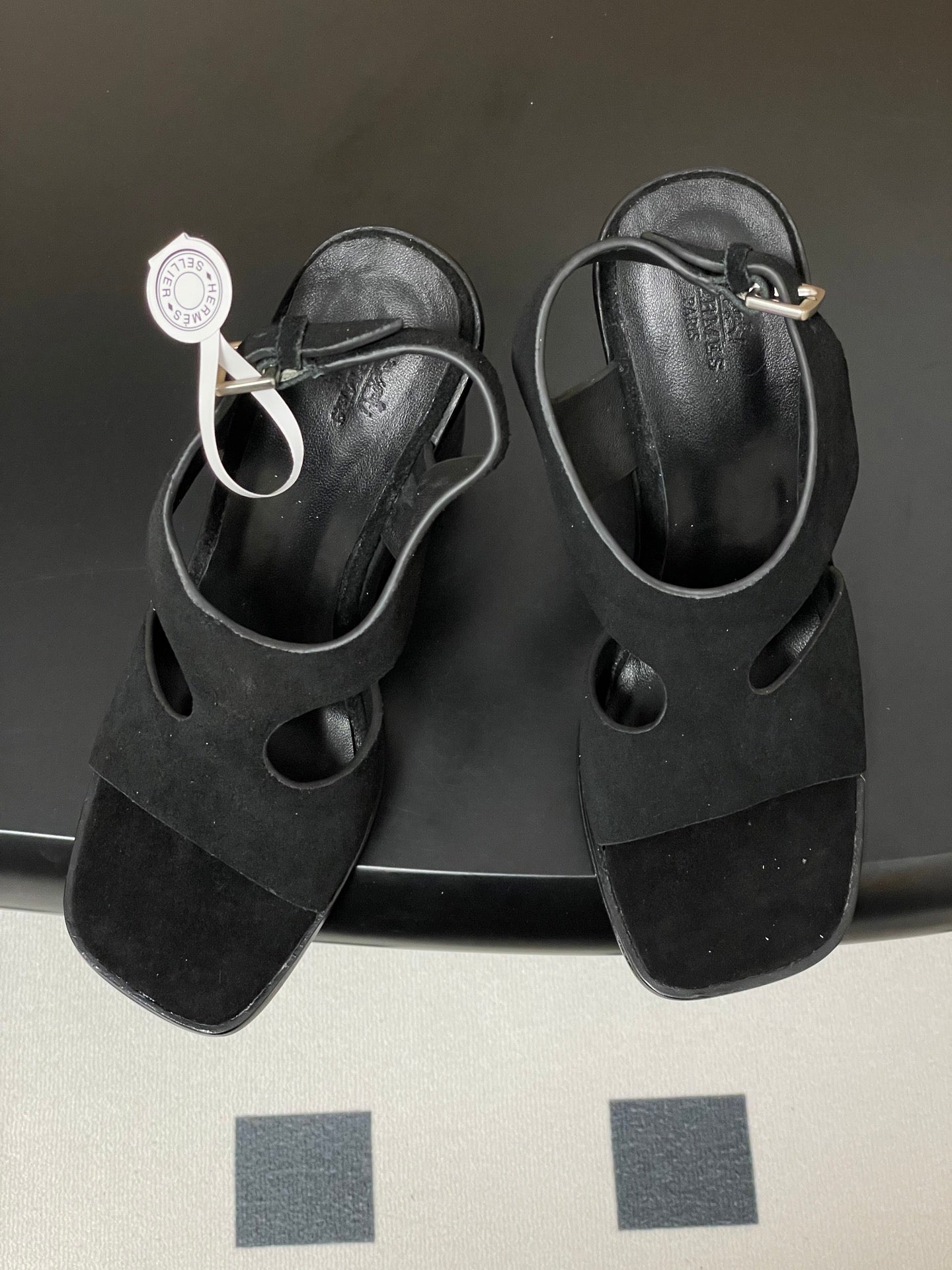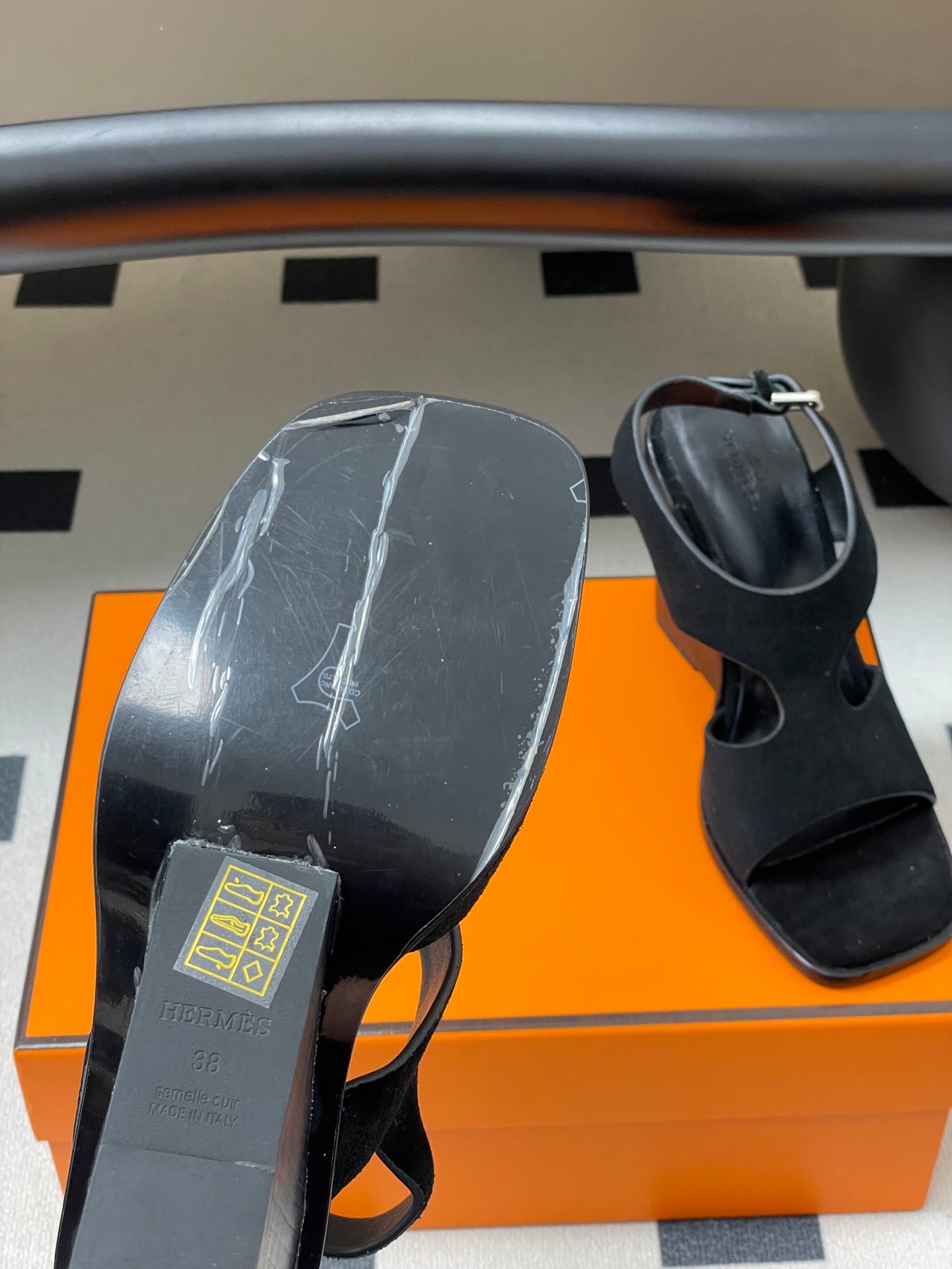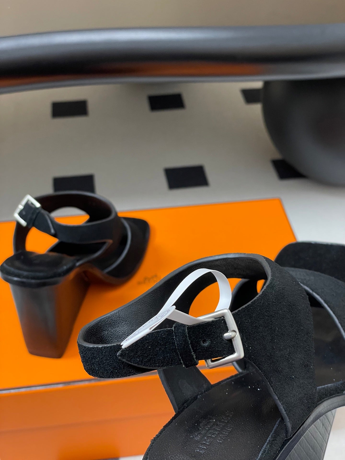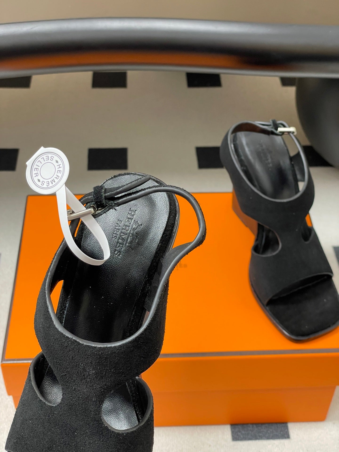 HM 25S KALYA WEDGE SANDAL 100 MM IN BLACK SUEDE