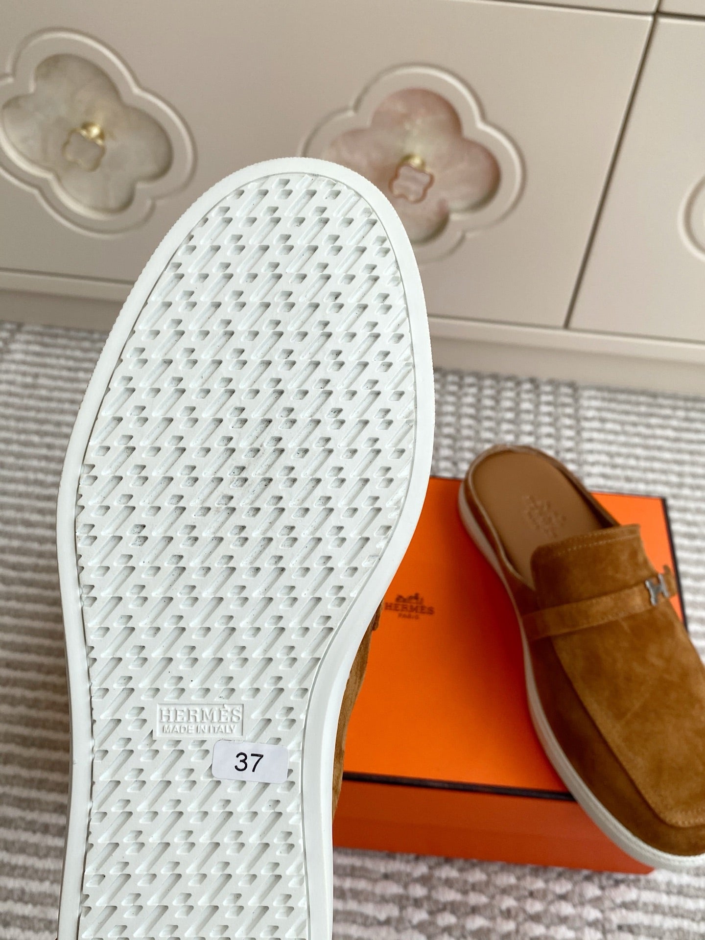 HM 25S MULES IN BROWN SUEDE WITH SILVER HARDWARE