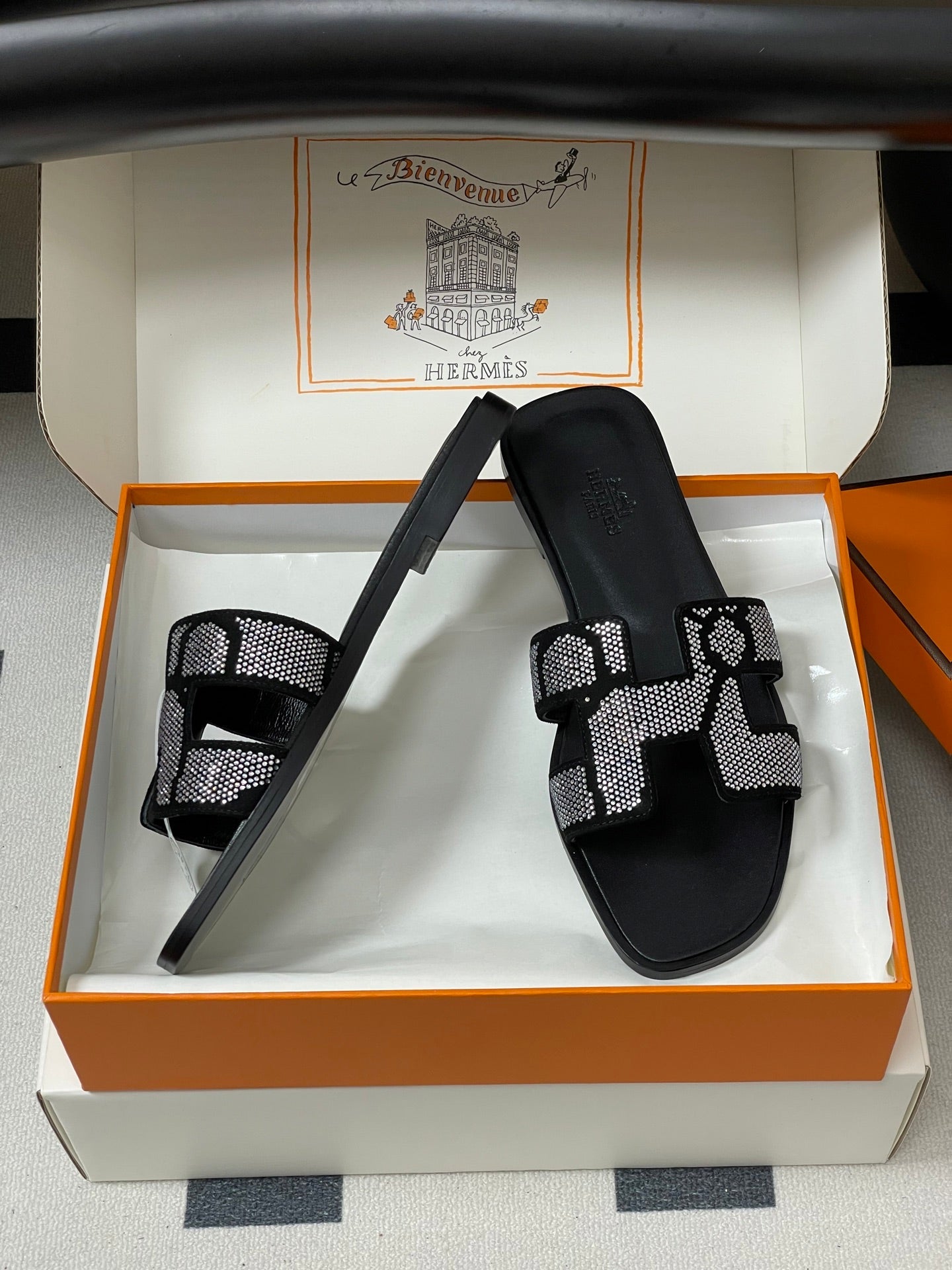 HM 25S ORAN SANDAL IN BLACK LAMBSKIN WITH WHITE STONE DETAILS