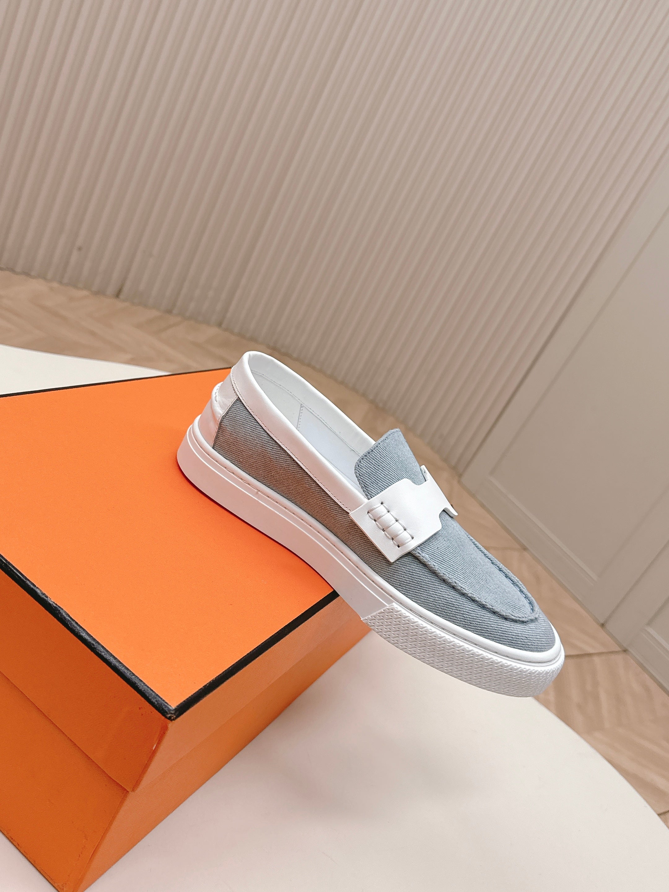 HM 25S SLIP-ON IN BLUE DENIM AND WHITE LAMBSKIN