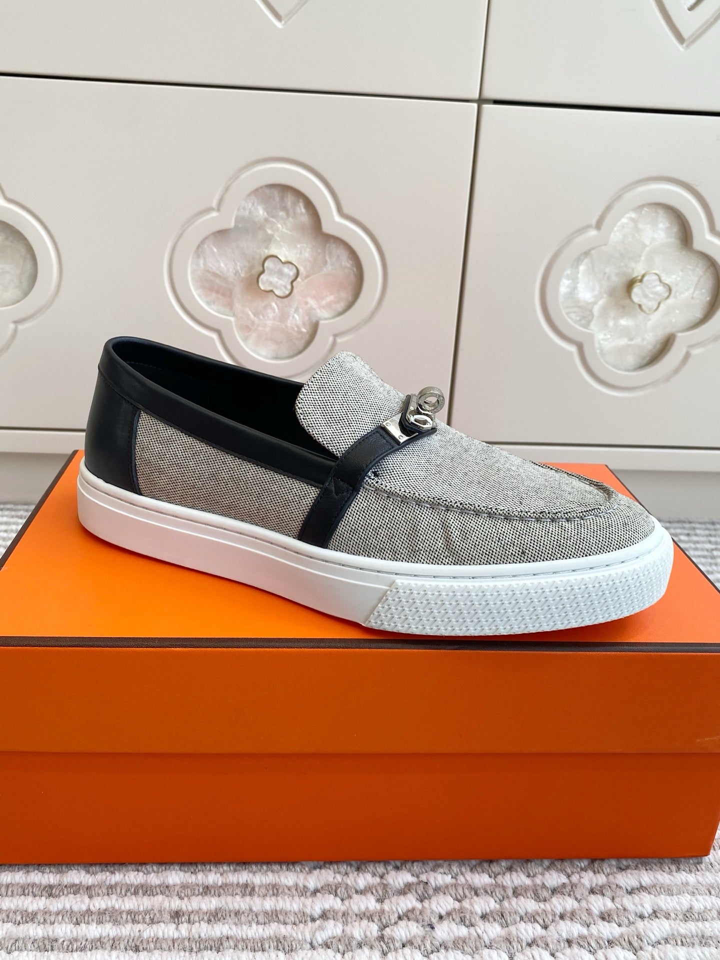 HM 25S SLIP-ON IN GREY CANVAS AND BLACK LAMBSKIN WITH SILVER HARDWARE