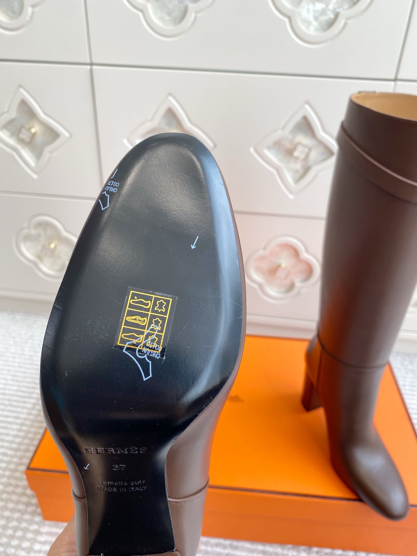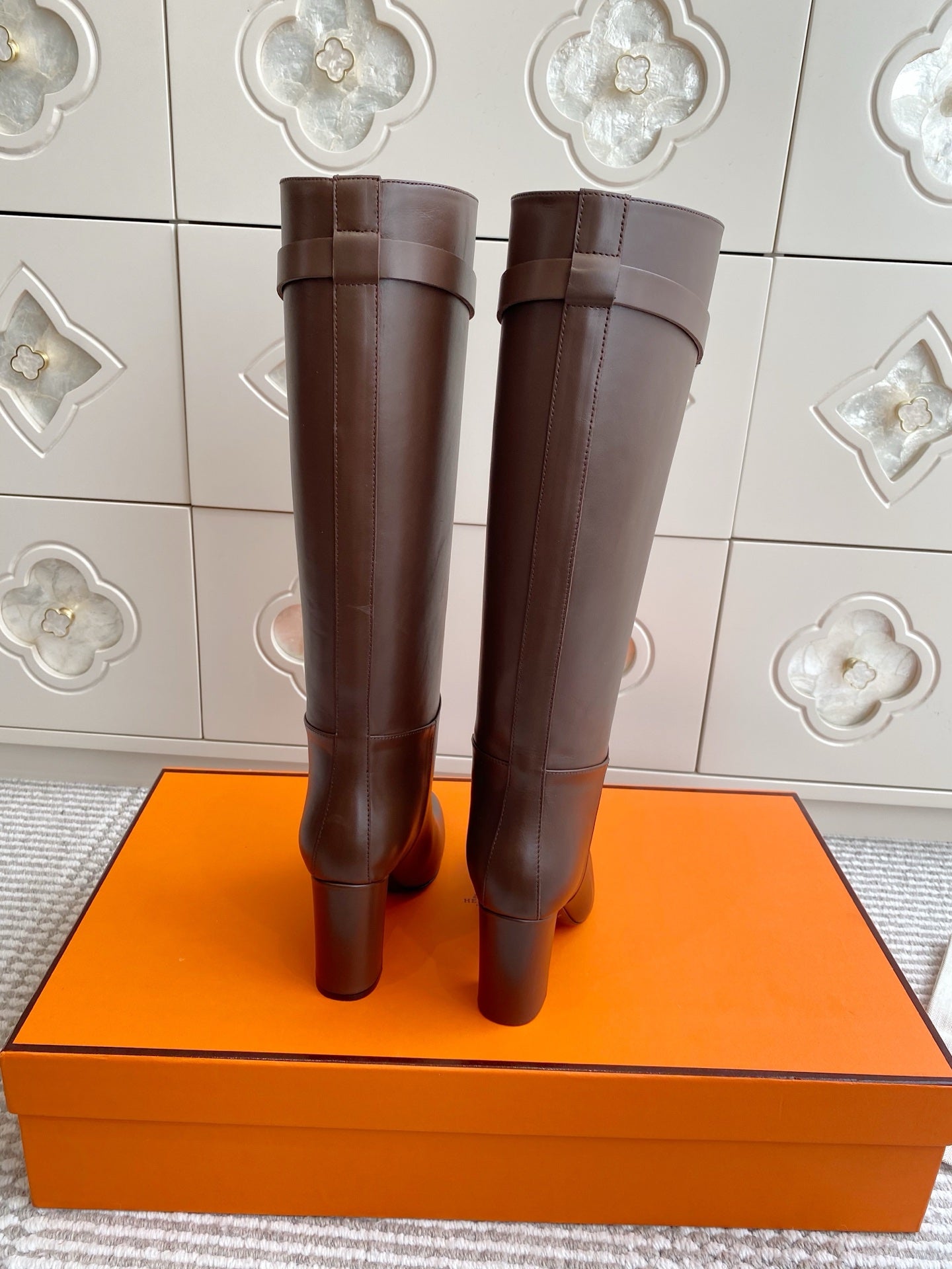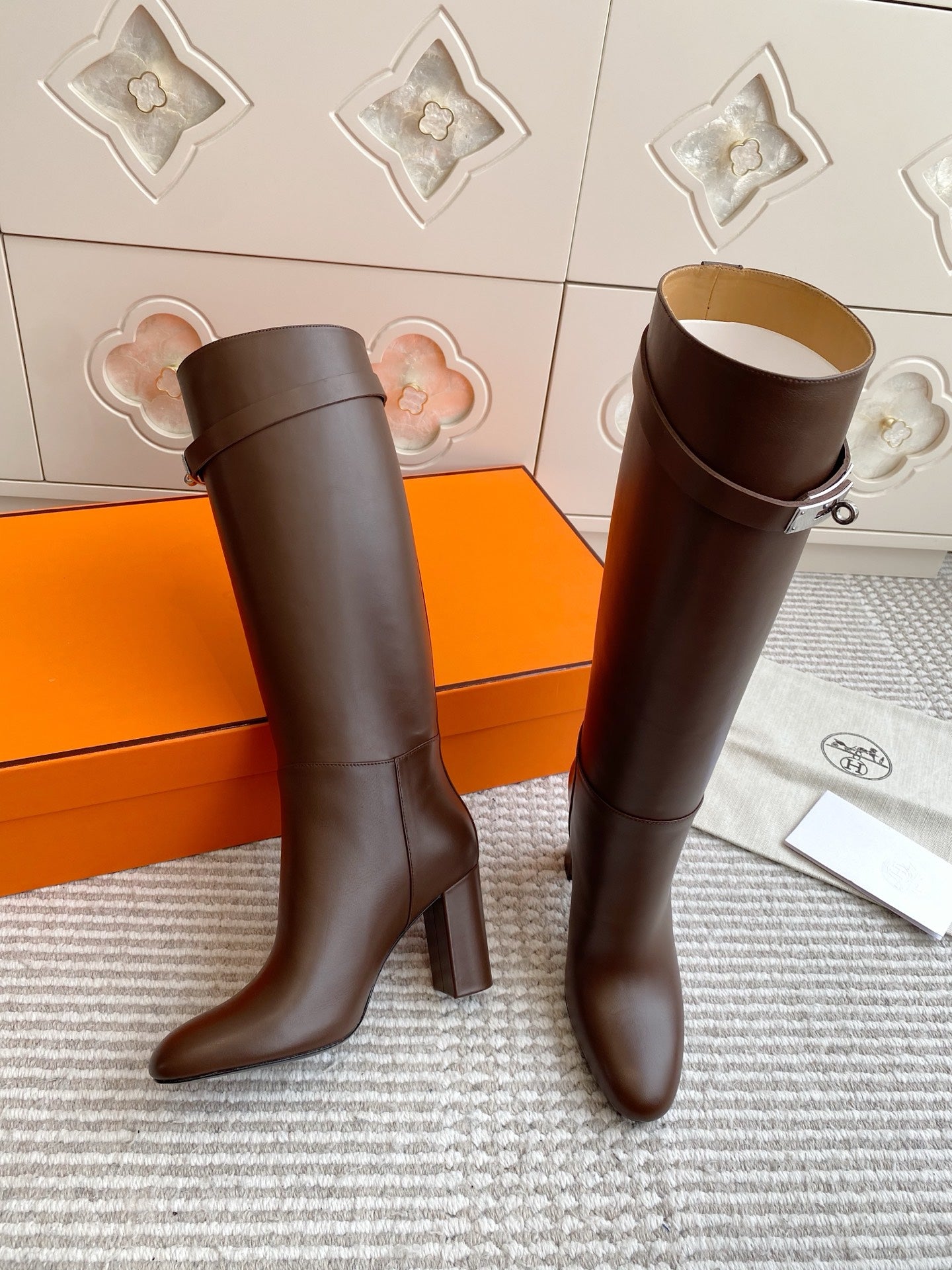 HM 25S TALL BOOTS 90 MM IN DARK BROWN LAMBSKIN WITH SILVER HARDWARE