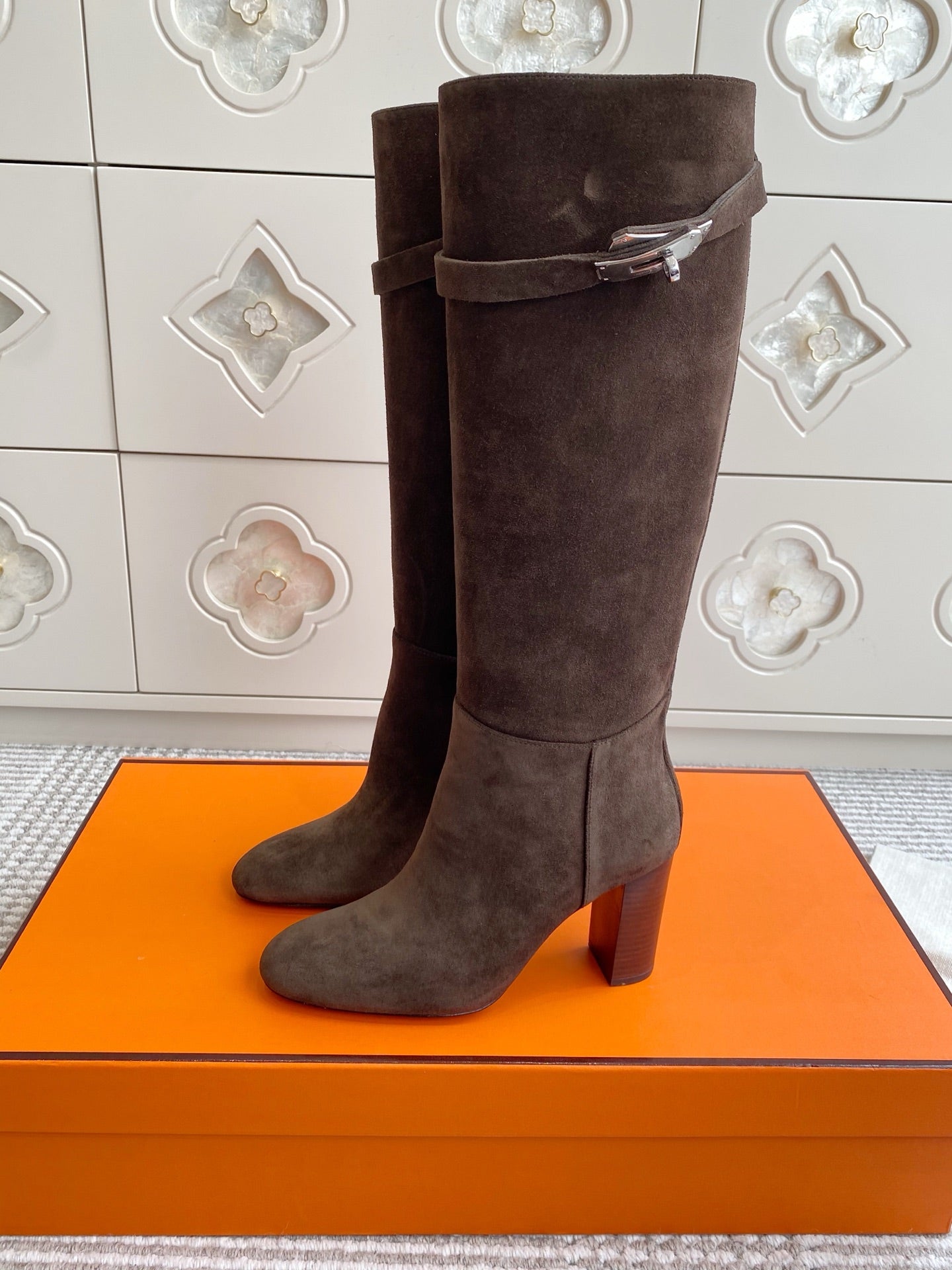 HM 25S TALL BOOTS 90 MM IN DARK BROWN SUEDE