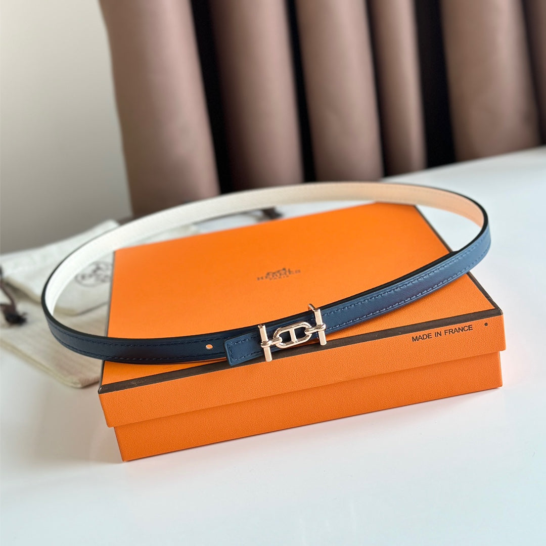 HM ANCRE BUCKLE & REVERSIBLE WHITE AND NAVY BLUE LEATHER STRAP 13MM COPPER HARDWARE