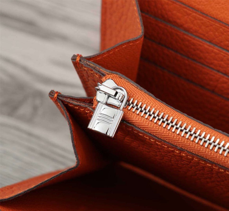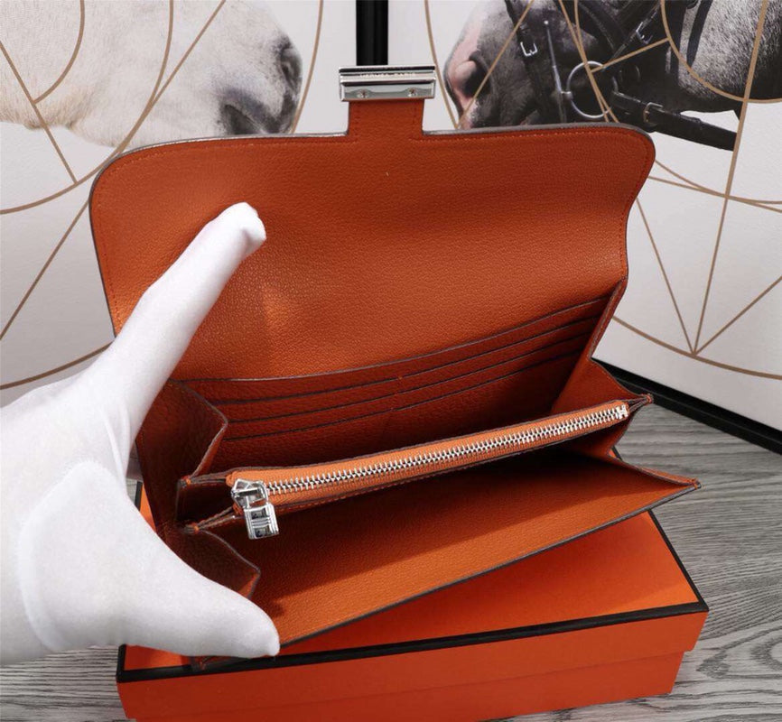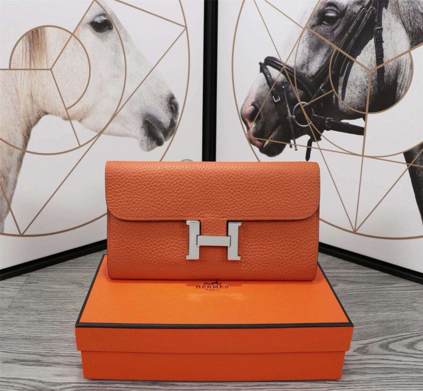 HM CLUTCH CONSTANCE 20.5 ORANGE CALFSKIN SILVER HARDWARE