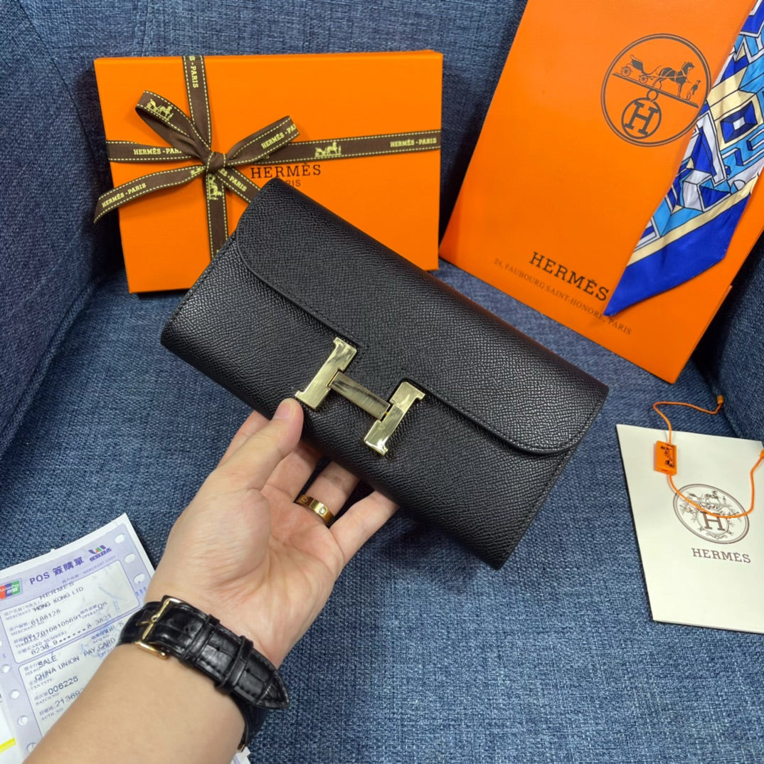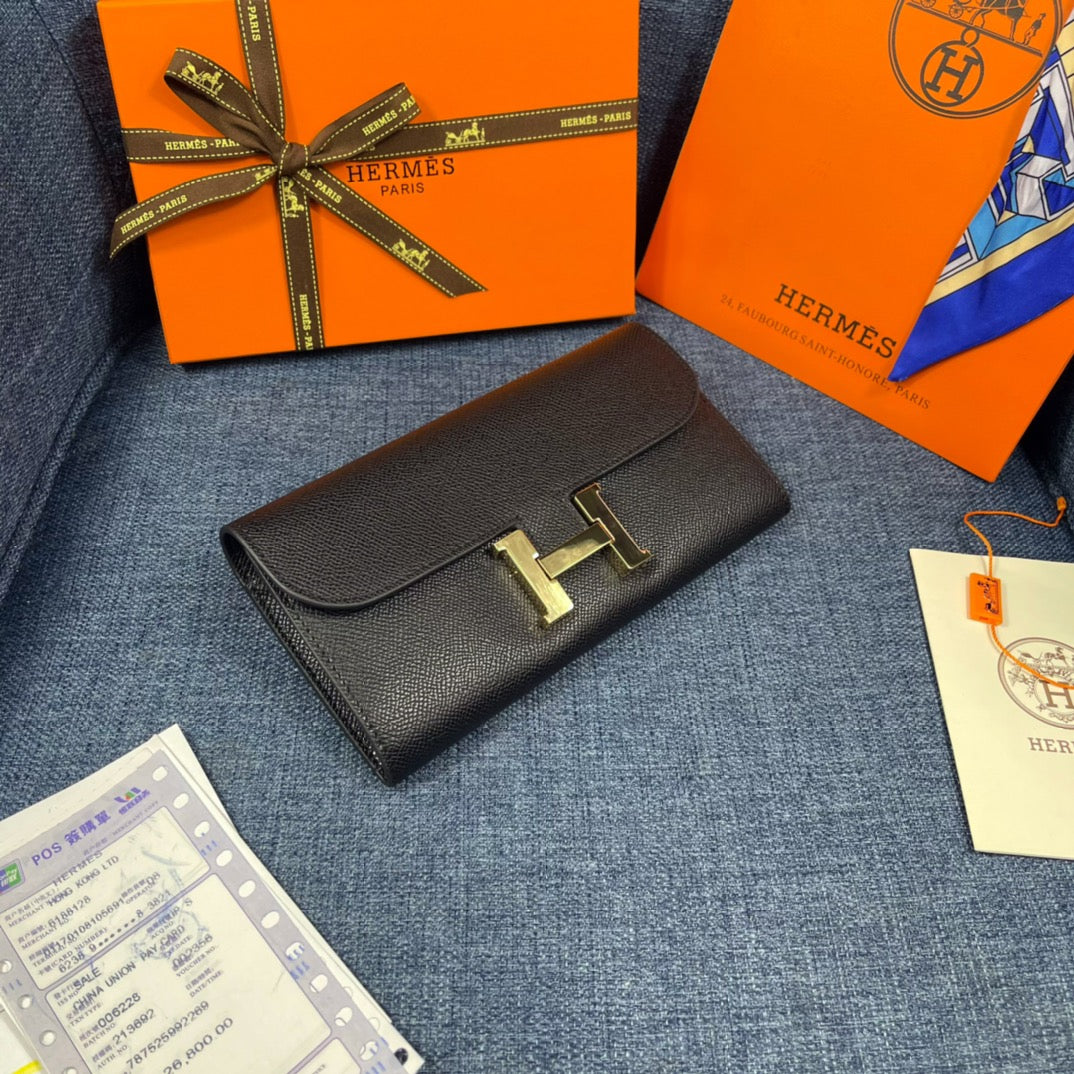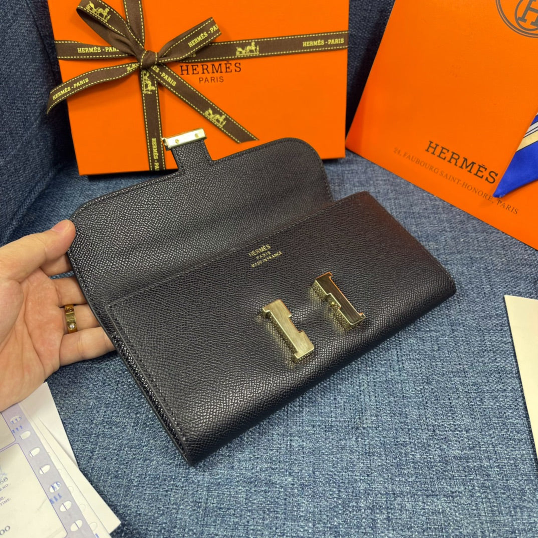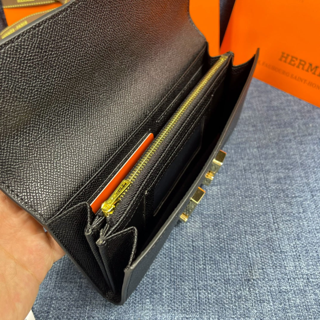 HM CLUTCH CONSTANCE 22 BLACK CALFSKIN GOLD HARDWARE