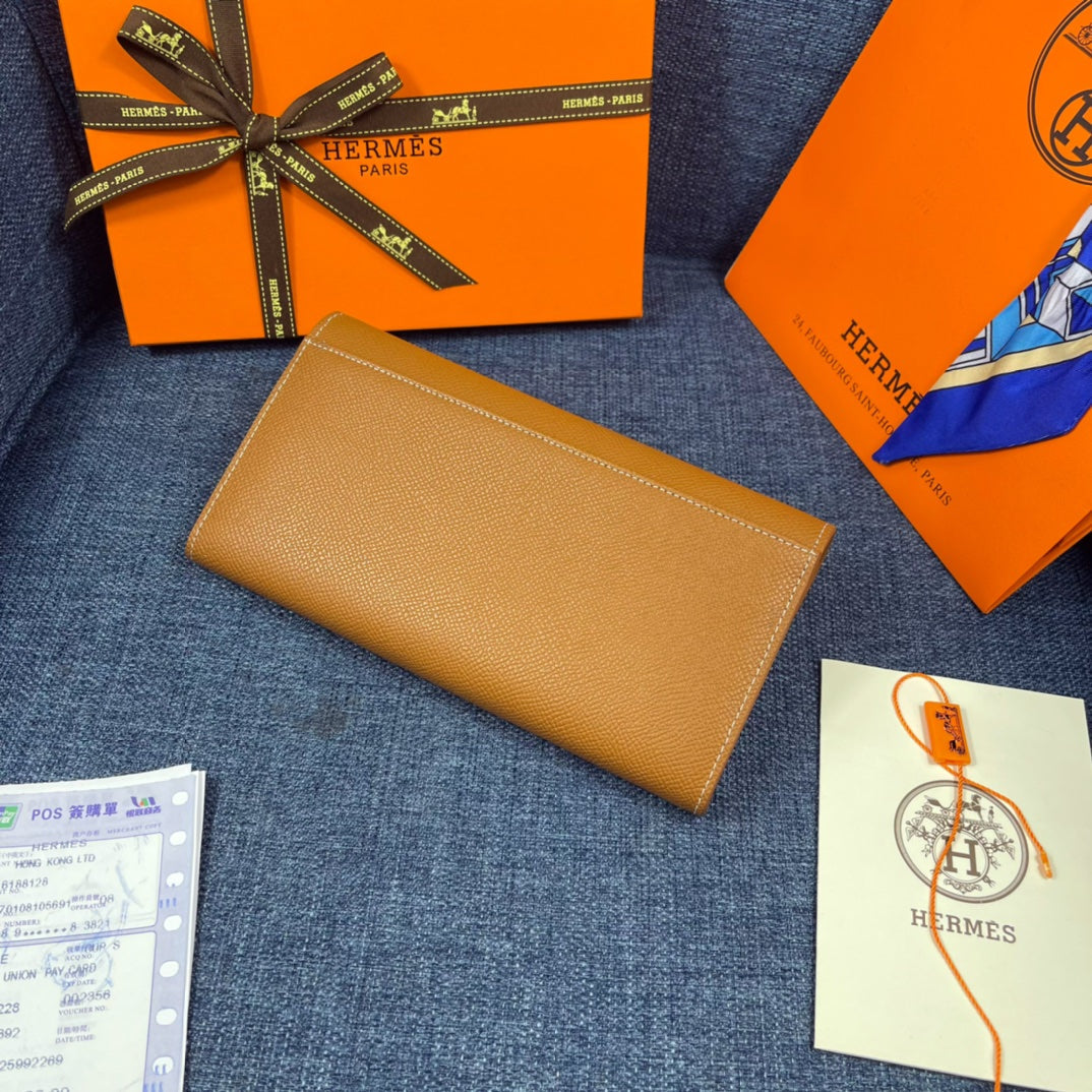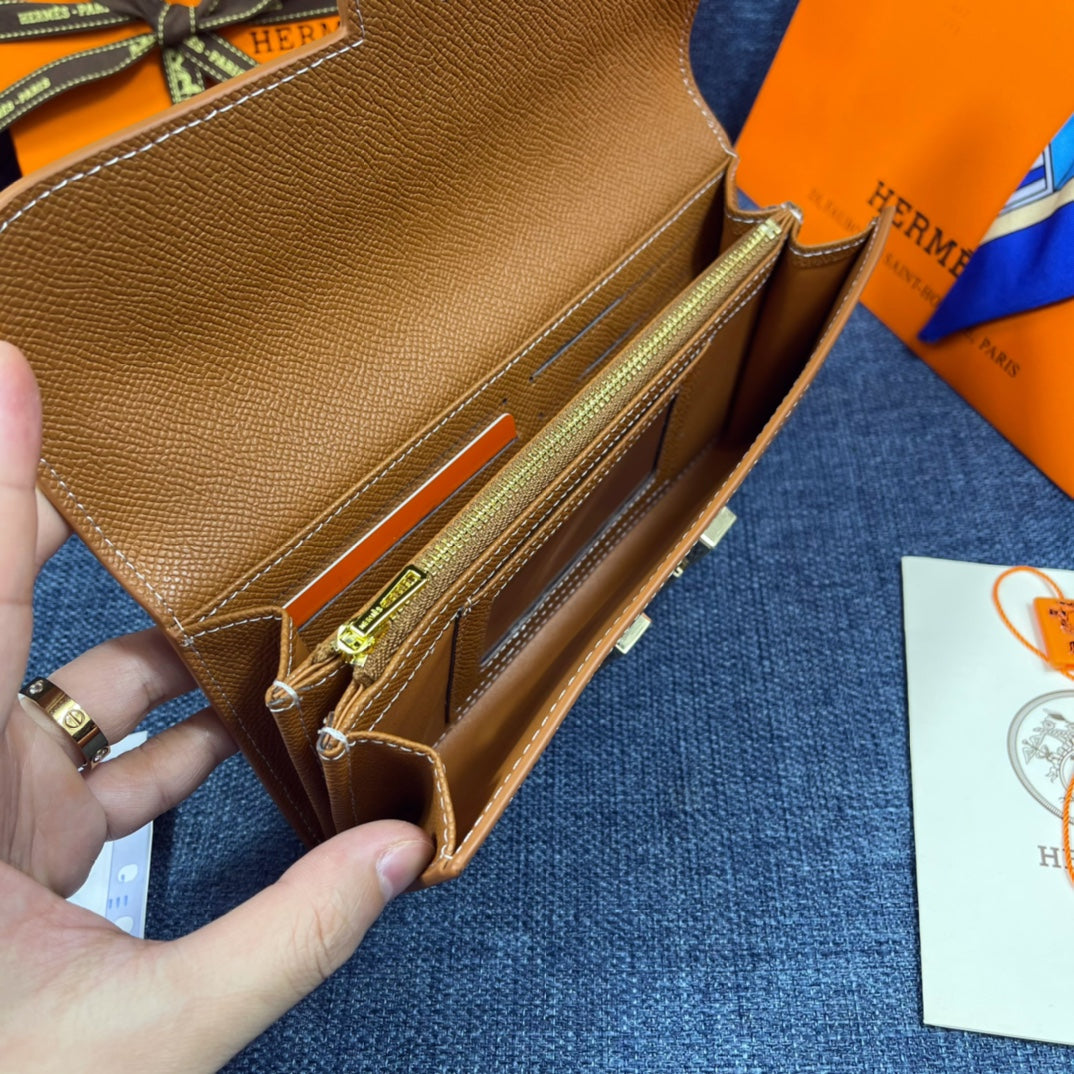 HM CLUTCH CONSTANCE 22 BRONZE CALFSKIN GOLD HARDWARE