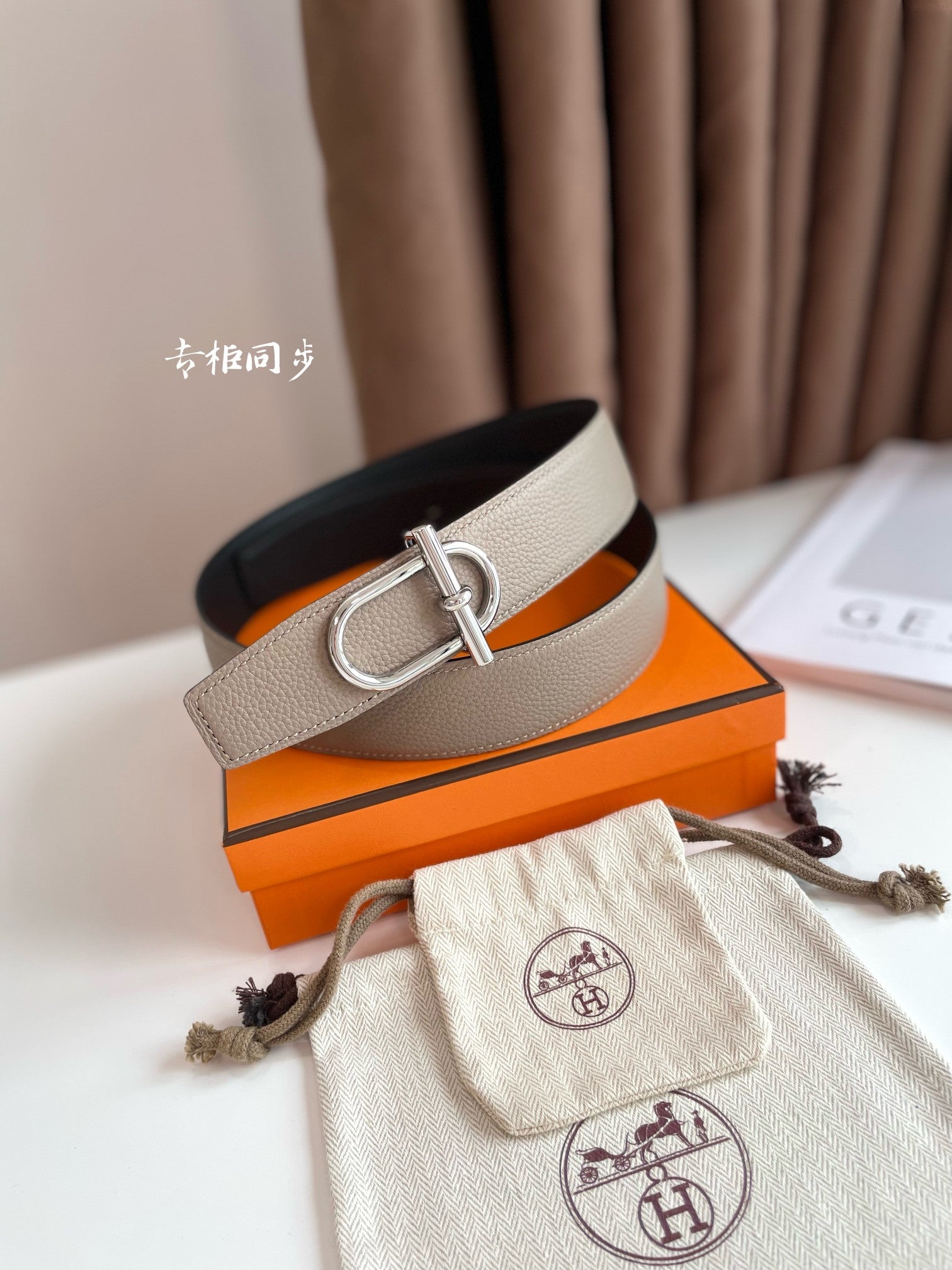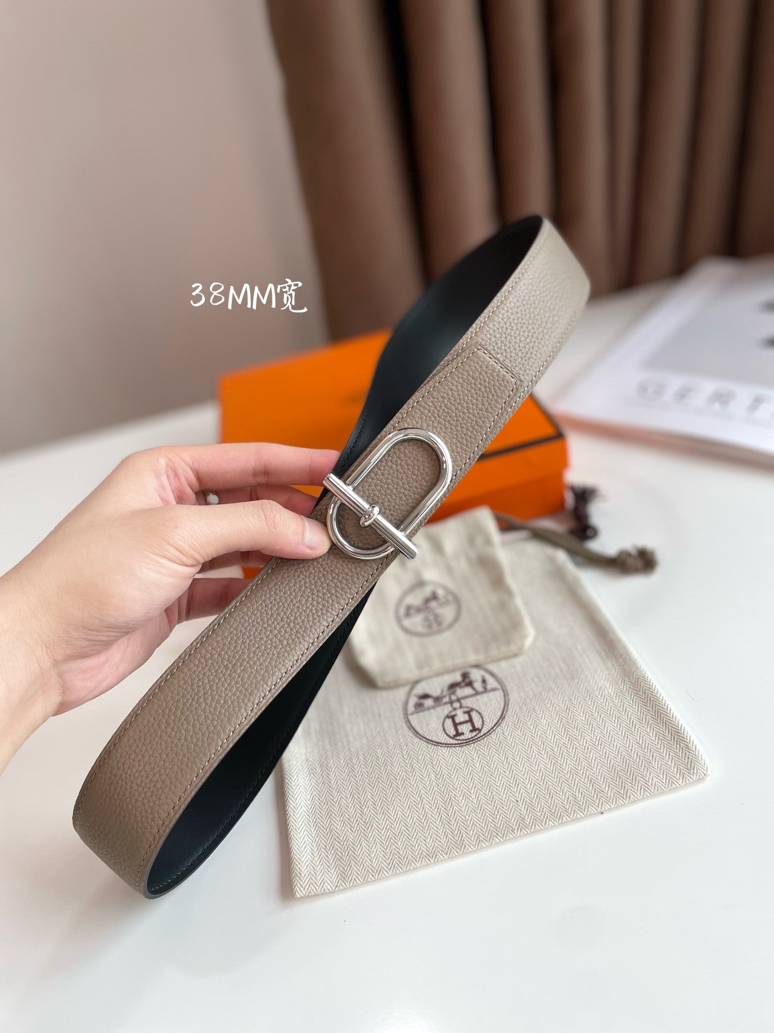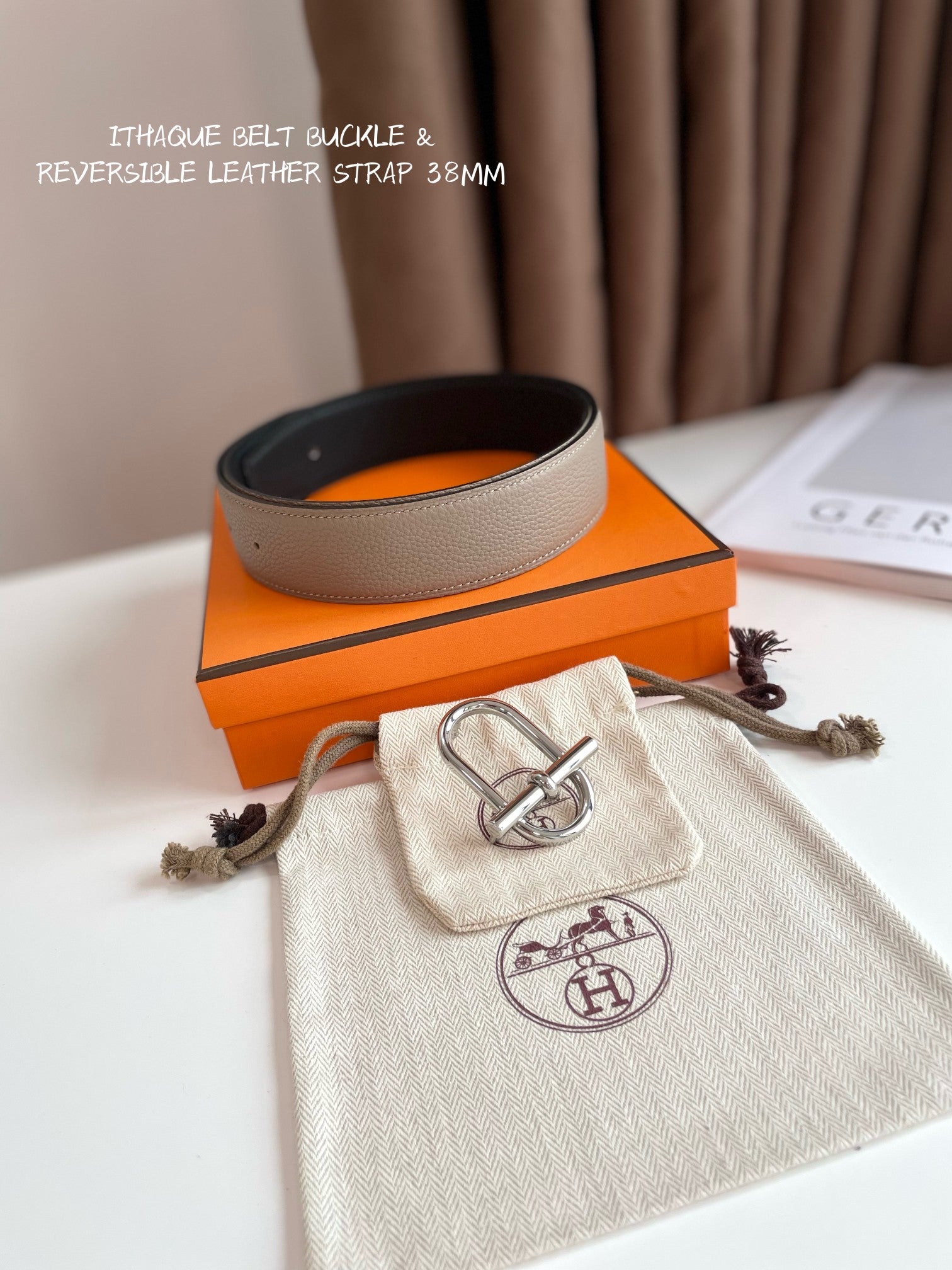 HM ITHAQUE BELT SILVER BUCKLE & REVERSIBLE CAMEL BROWN AND BLACK LEATHER STRAP 38MM