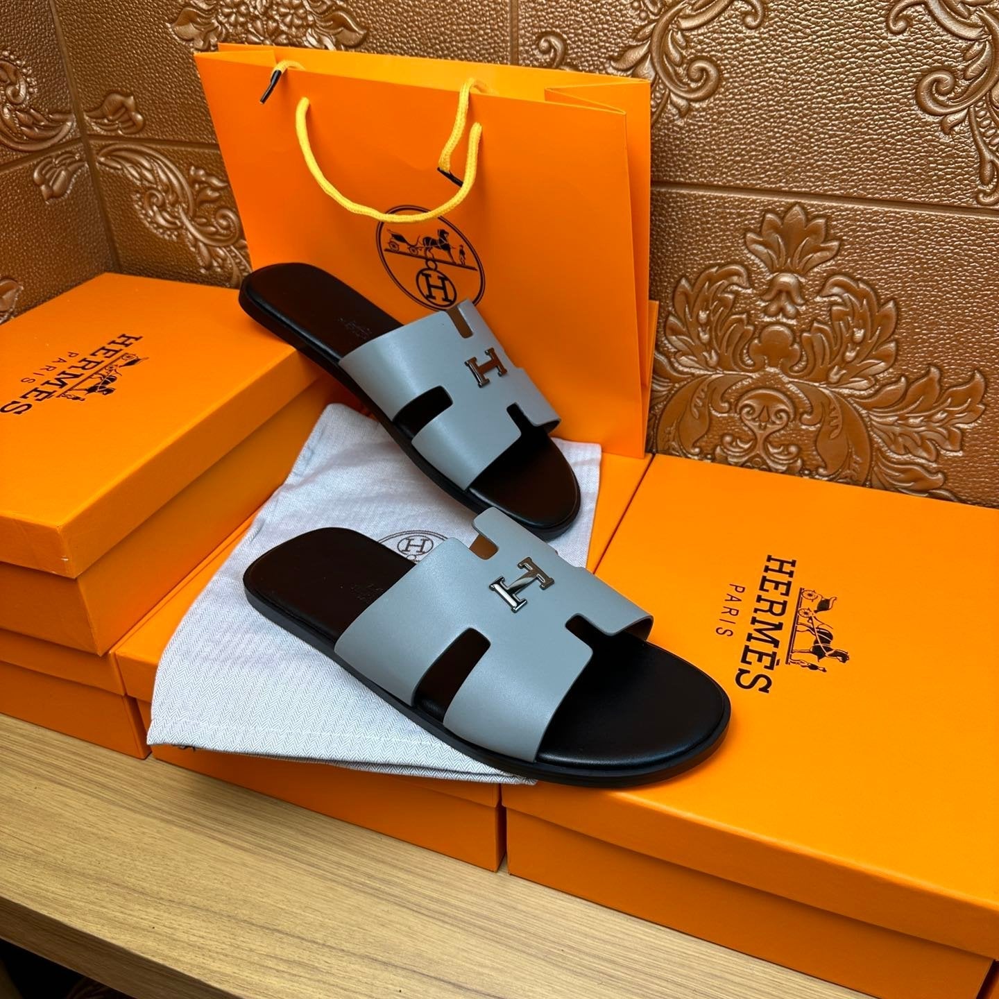 HM IZMIR H-BUCKLE SANDAL STONE CALFSKIN