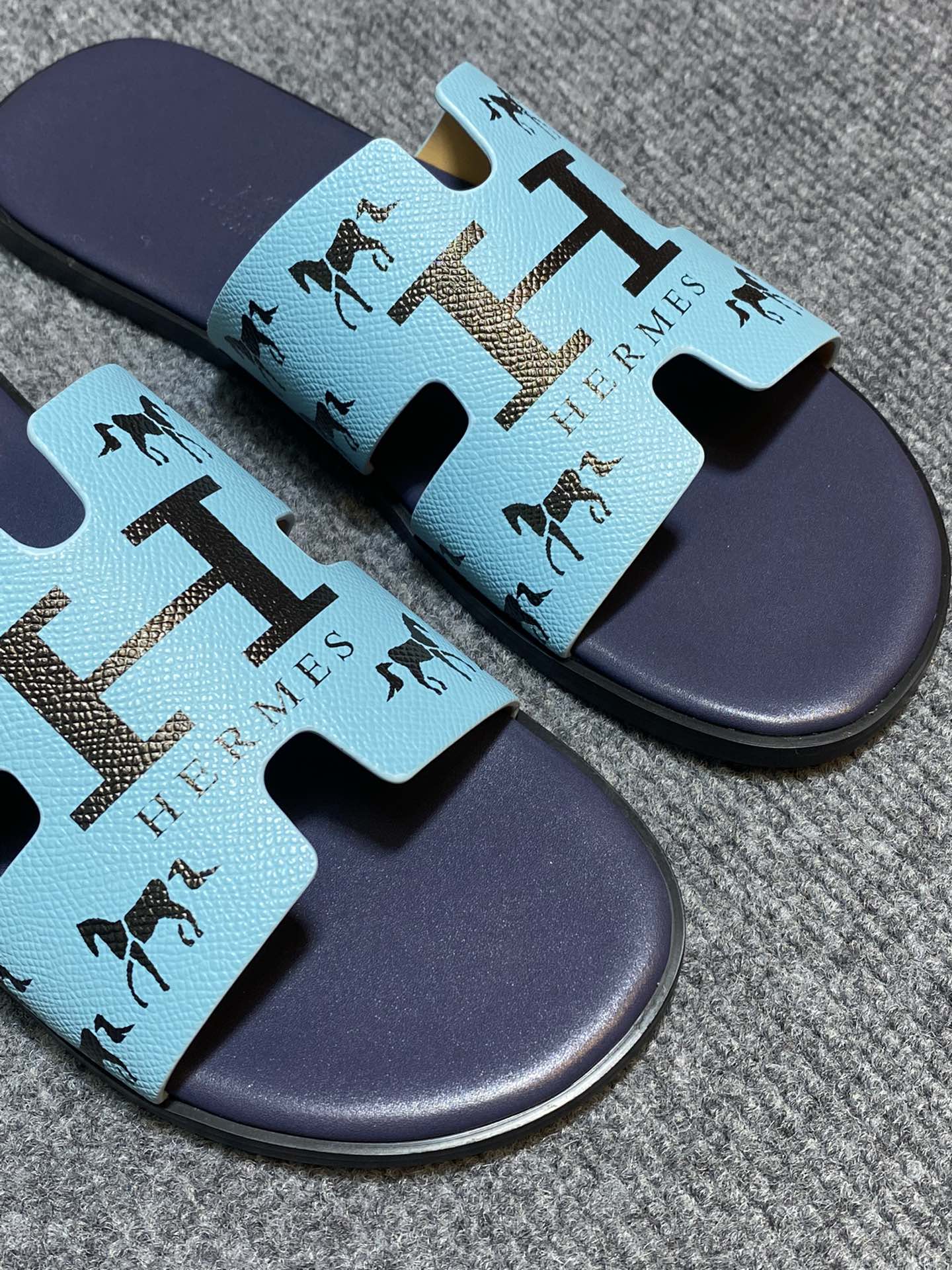 HM IZMIR SANDAL INDIGO AND SKY CALFSKIN WITH ICON