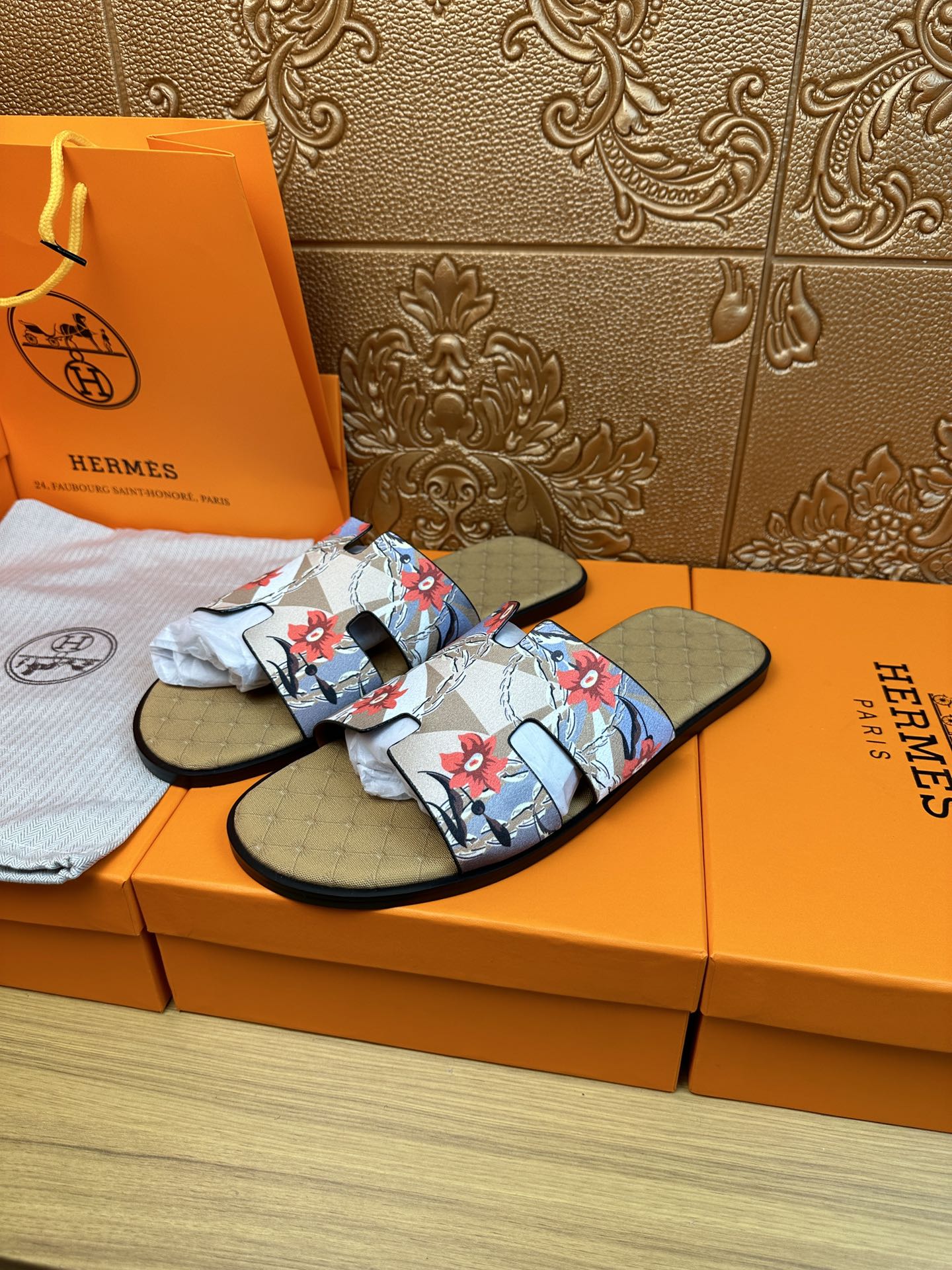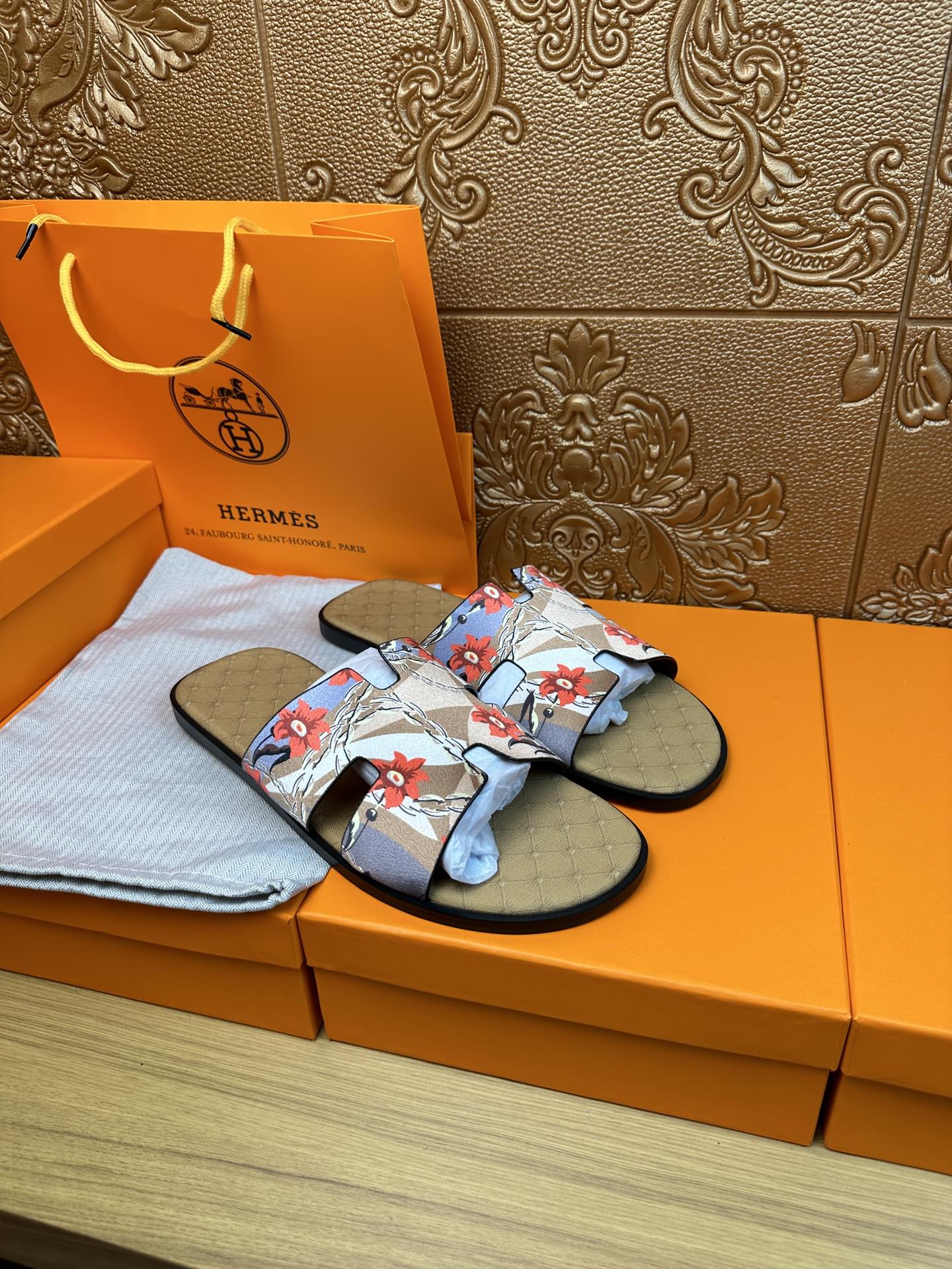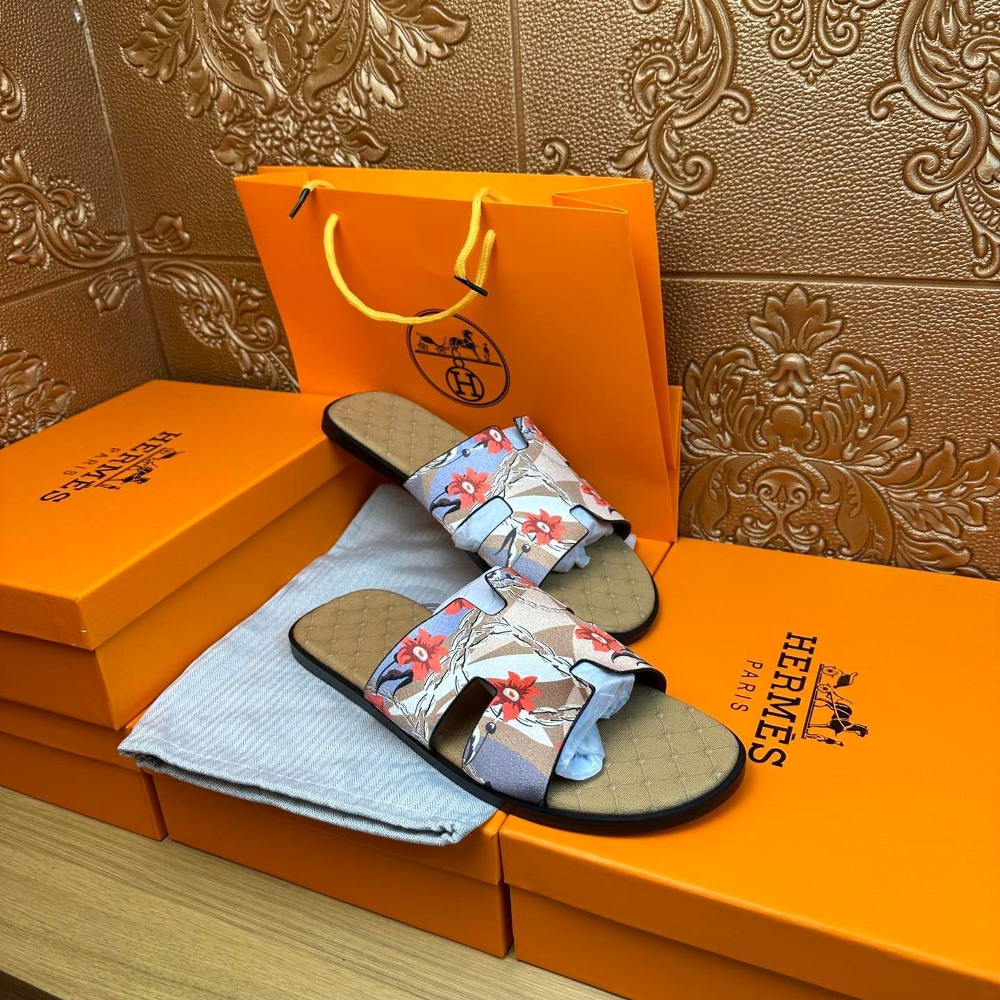 HM IZMIR SANDAL MUSTARD SUEDE WITH FLOWER MOTIF