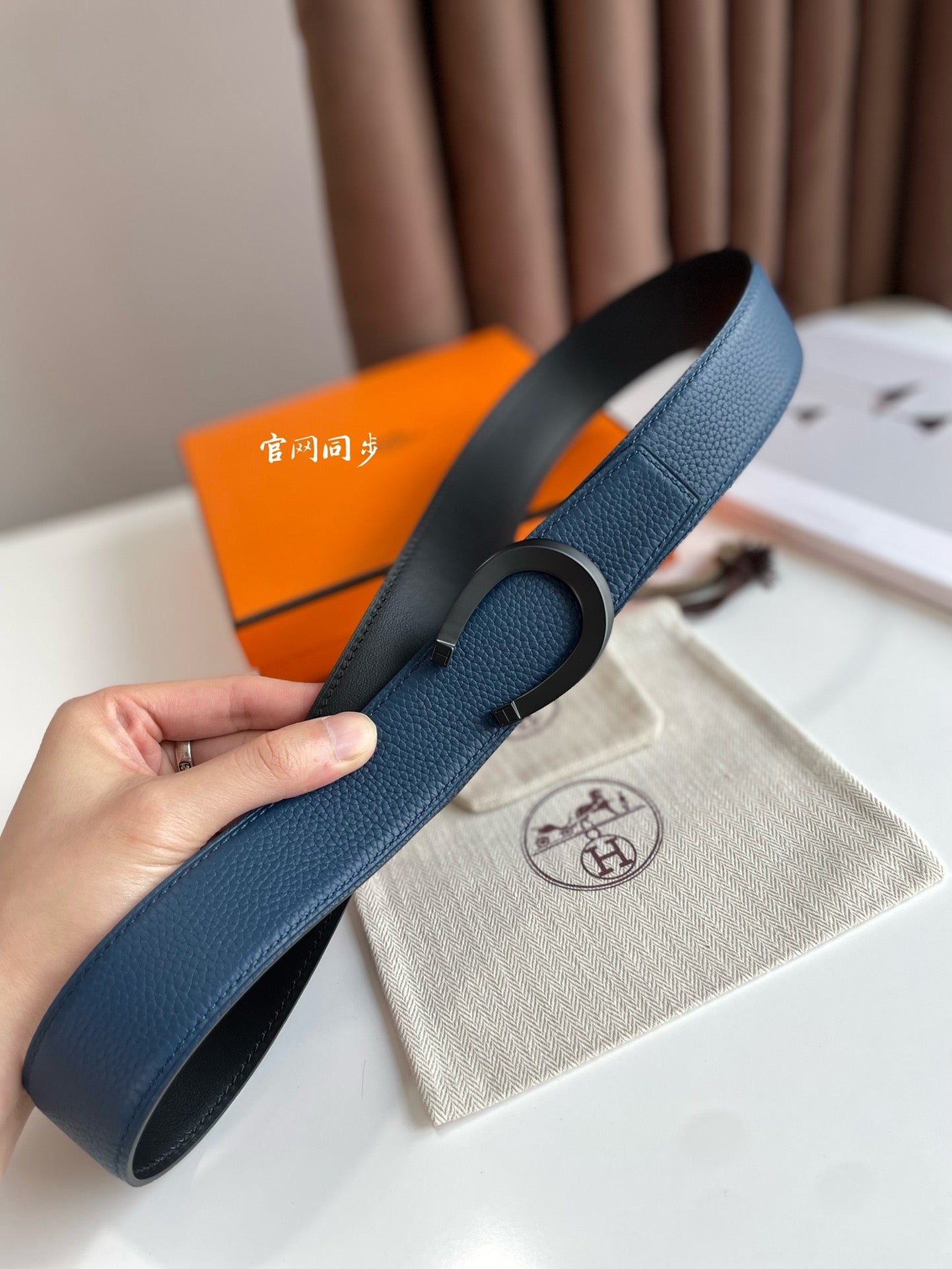 HM LUCK BELT BUCKLE & REVERSIBLE BLACK AND NAVY BLUE LEATHER STRAP 38MM