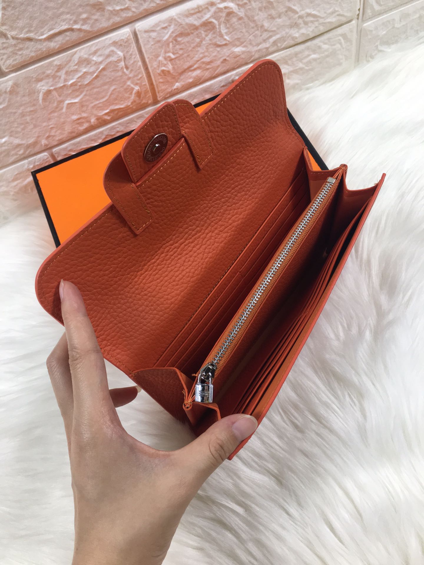 HM SNAP LOCK WALLET 19.5 ORANGE GRAINED CALFSKIN