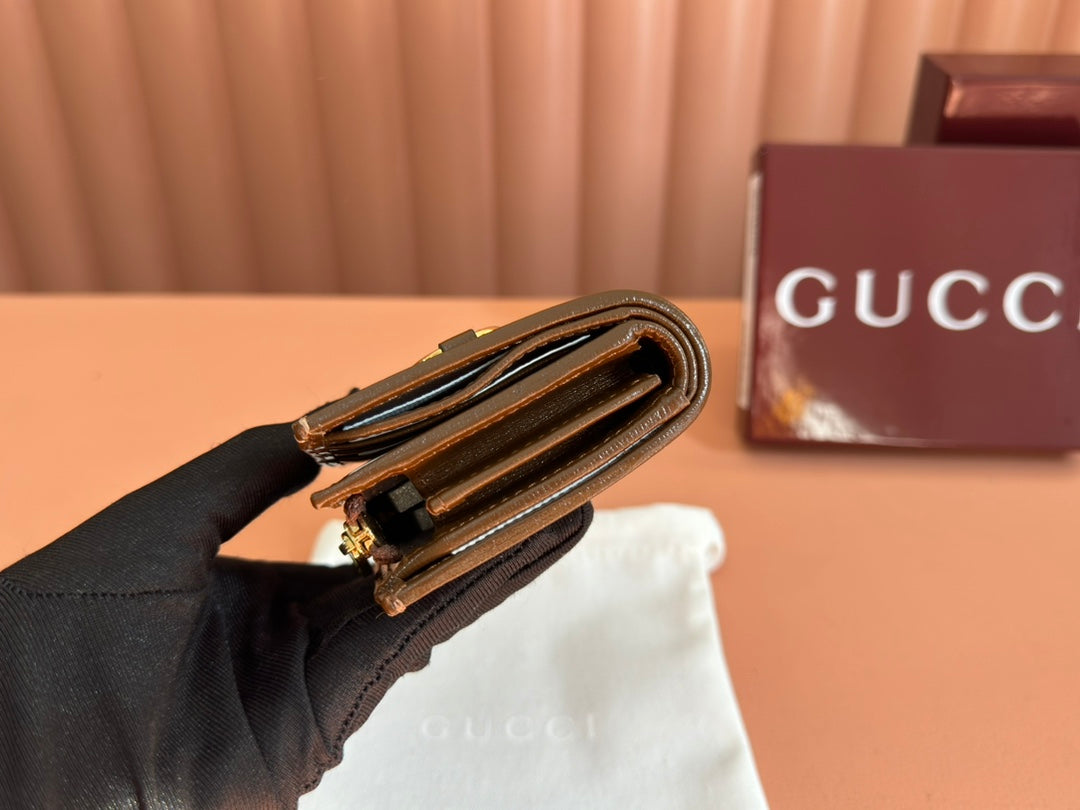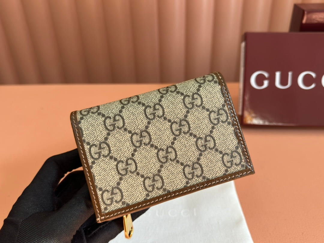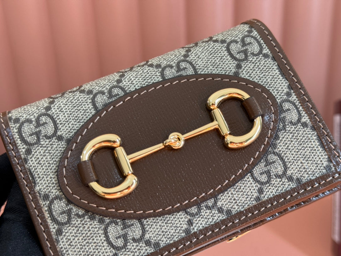 HORSEBIT 1955 CARD CASE WALLET 11.5 IN BEIGE EBONY GG CANVAS BROWN CALFSKIN