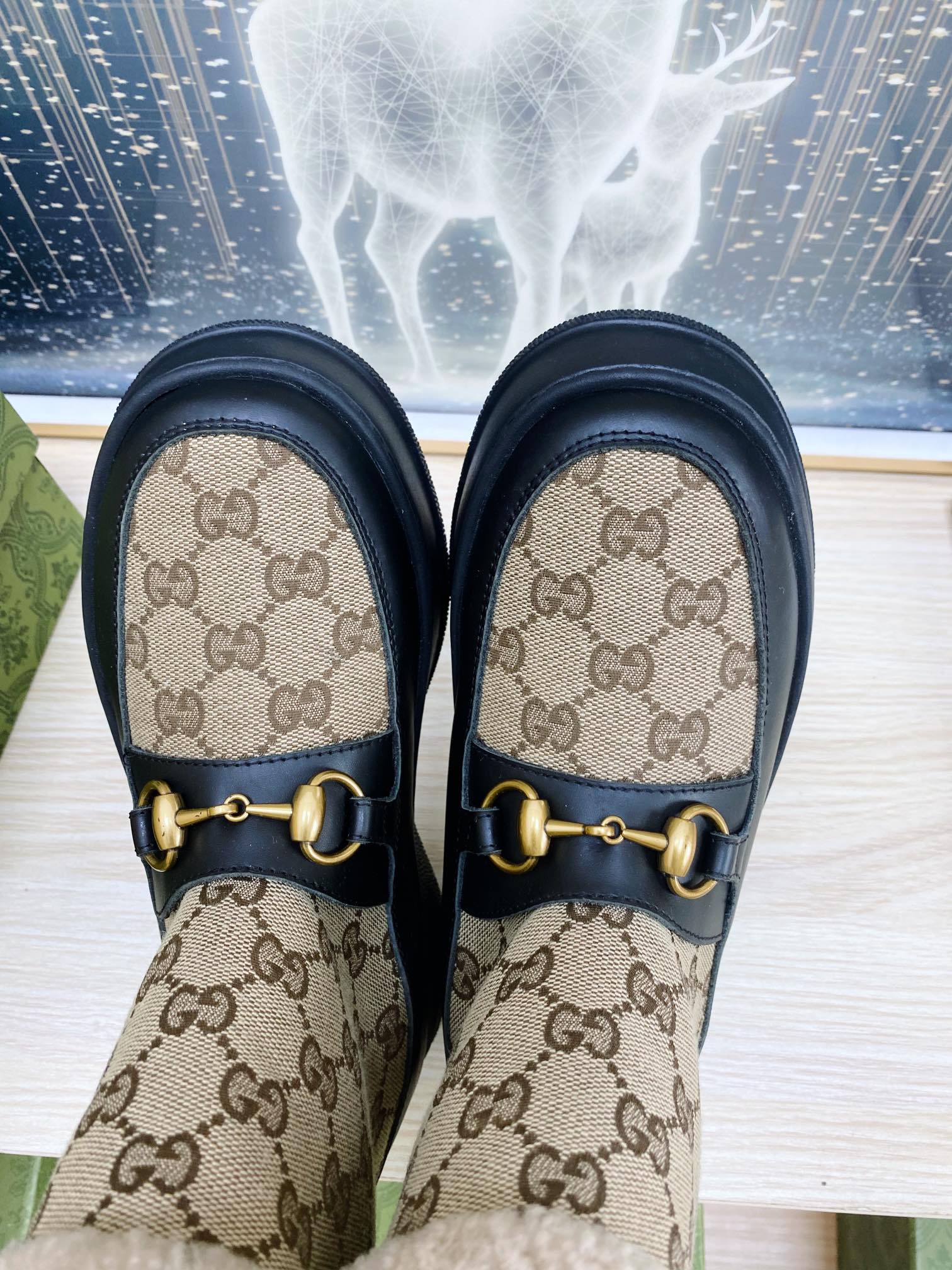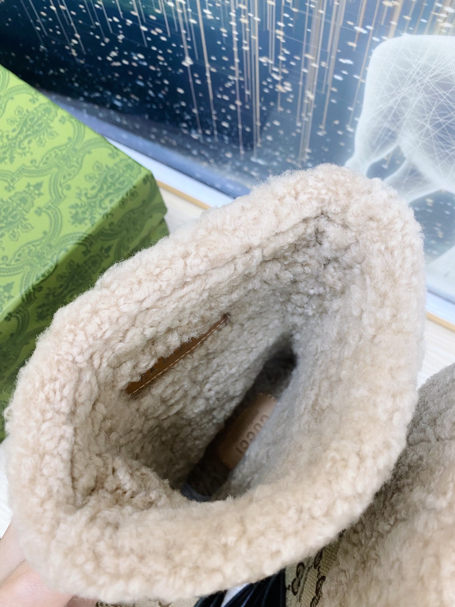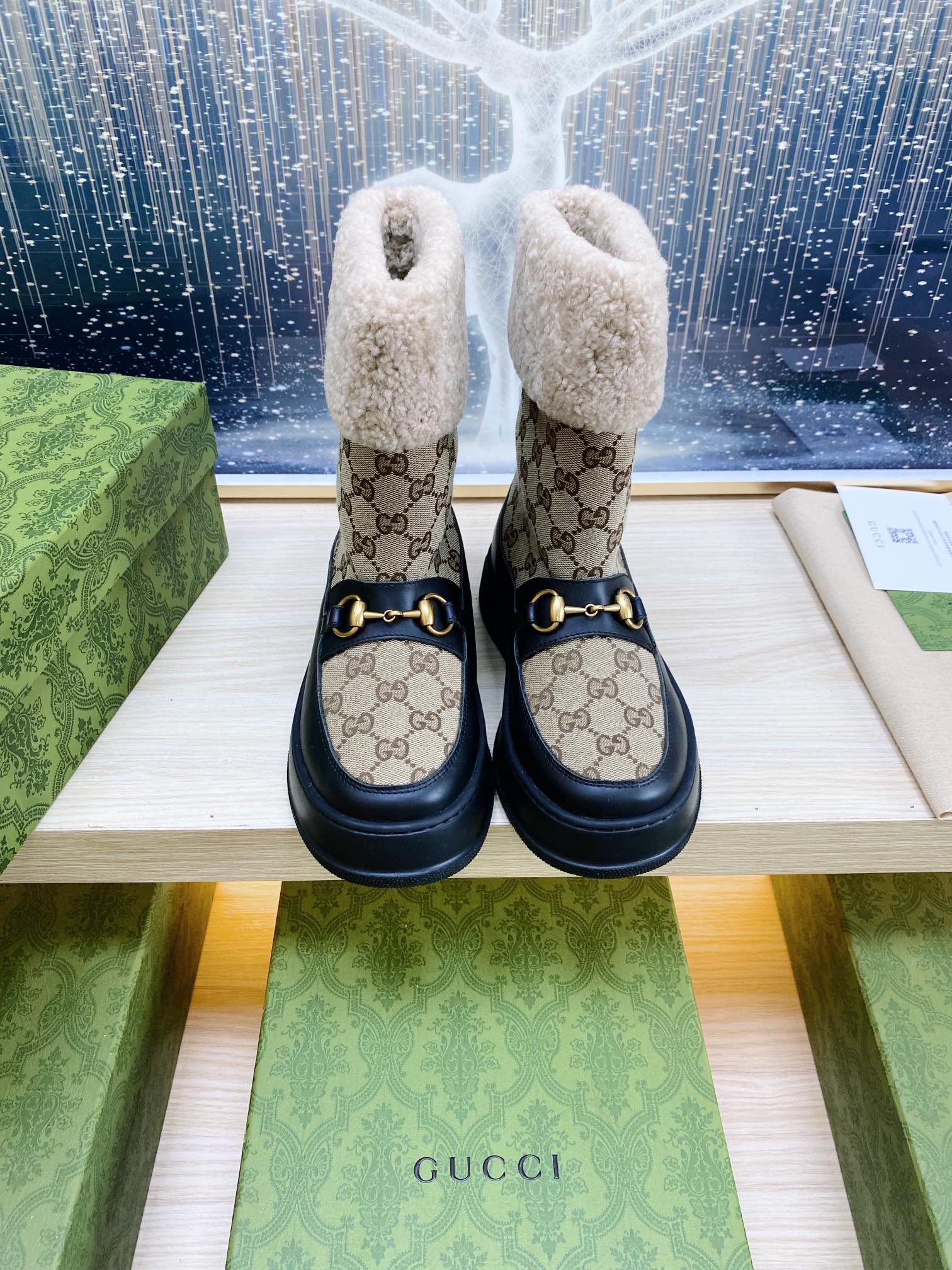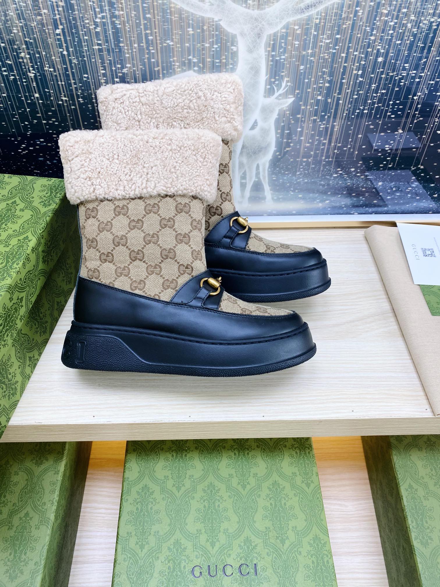 HORSEBIT ANKLE BOOTS WITH MERINO TRIM IN BEIGE JACQUARD FABRIC MIX BLACK CALFSKIN