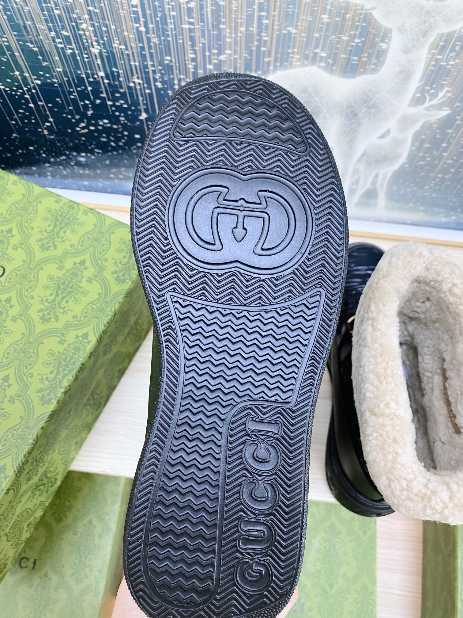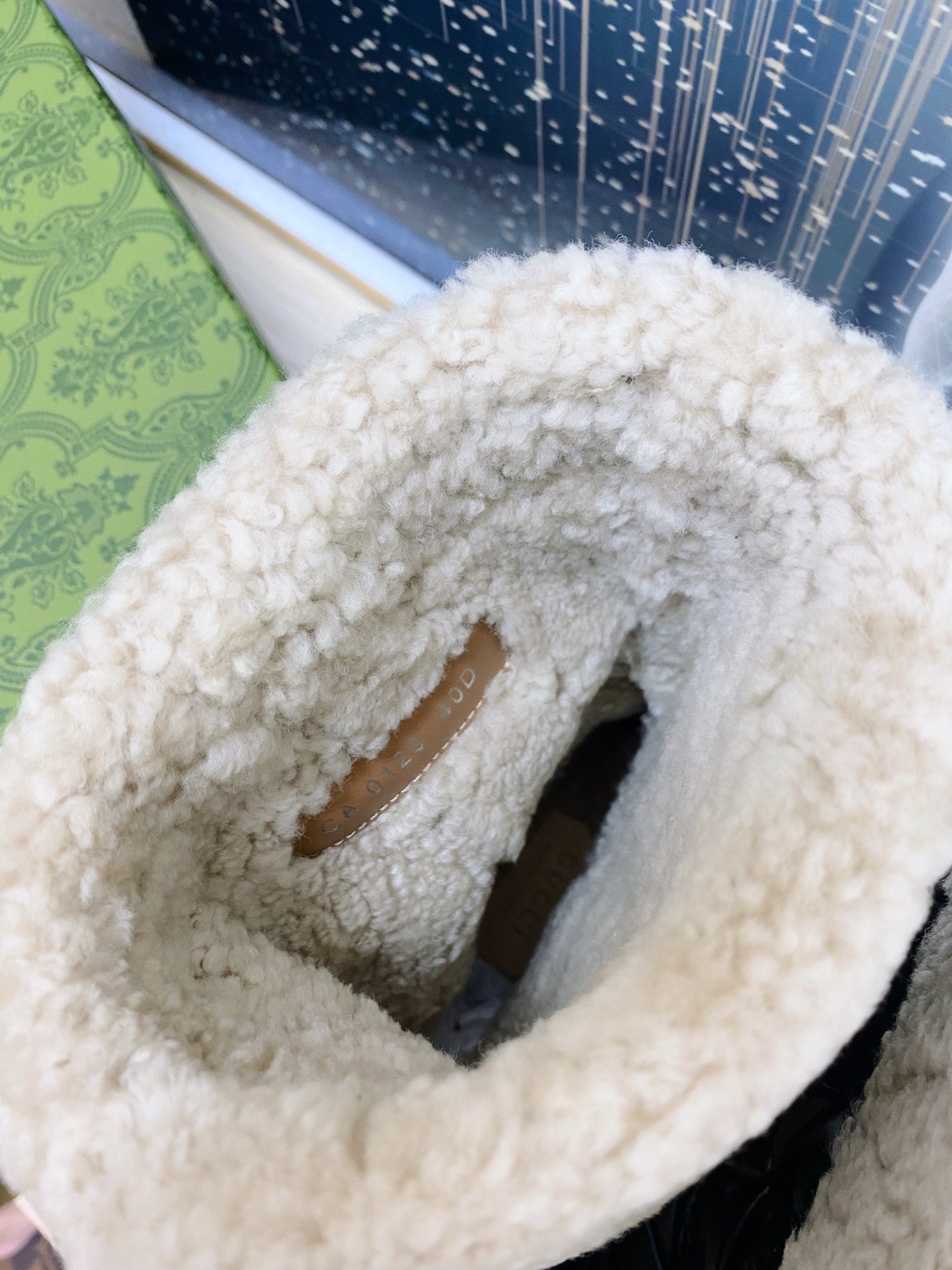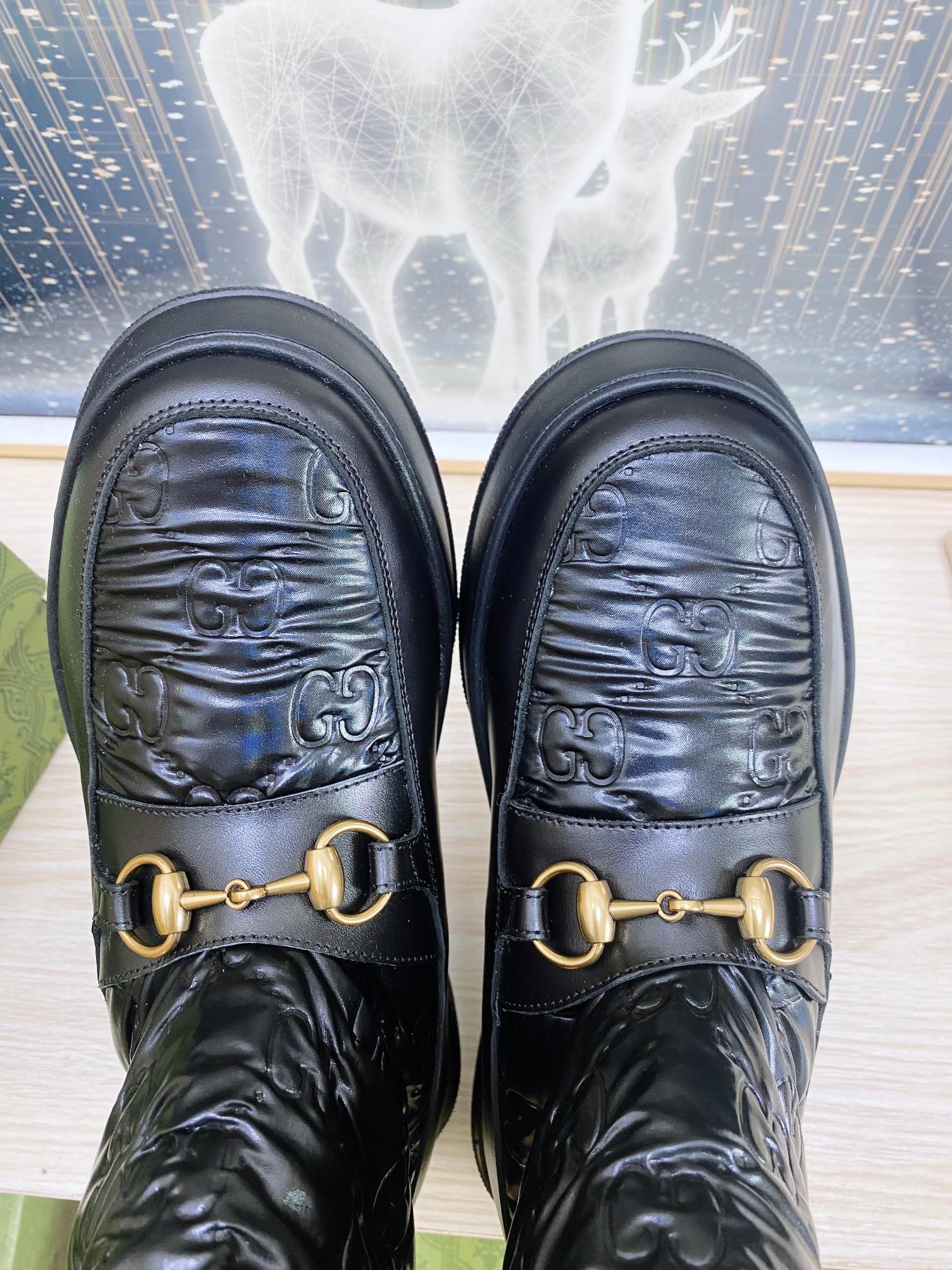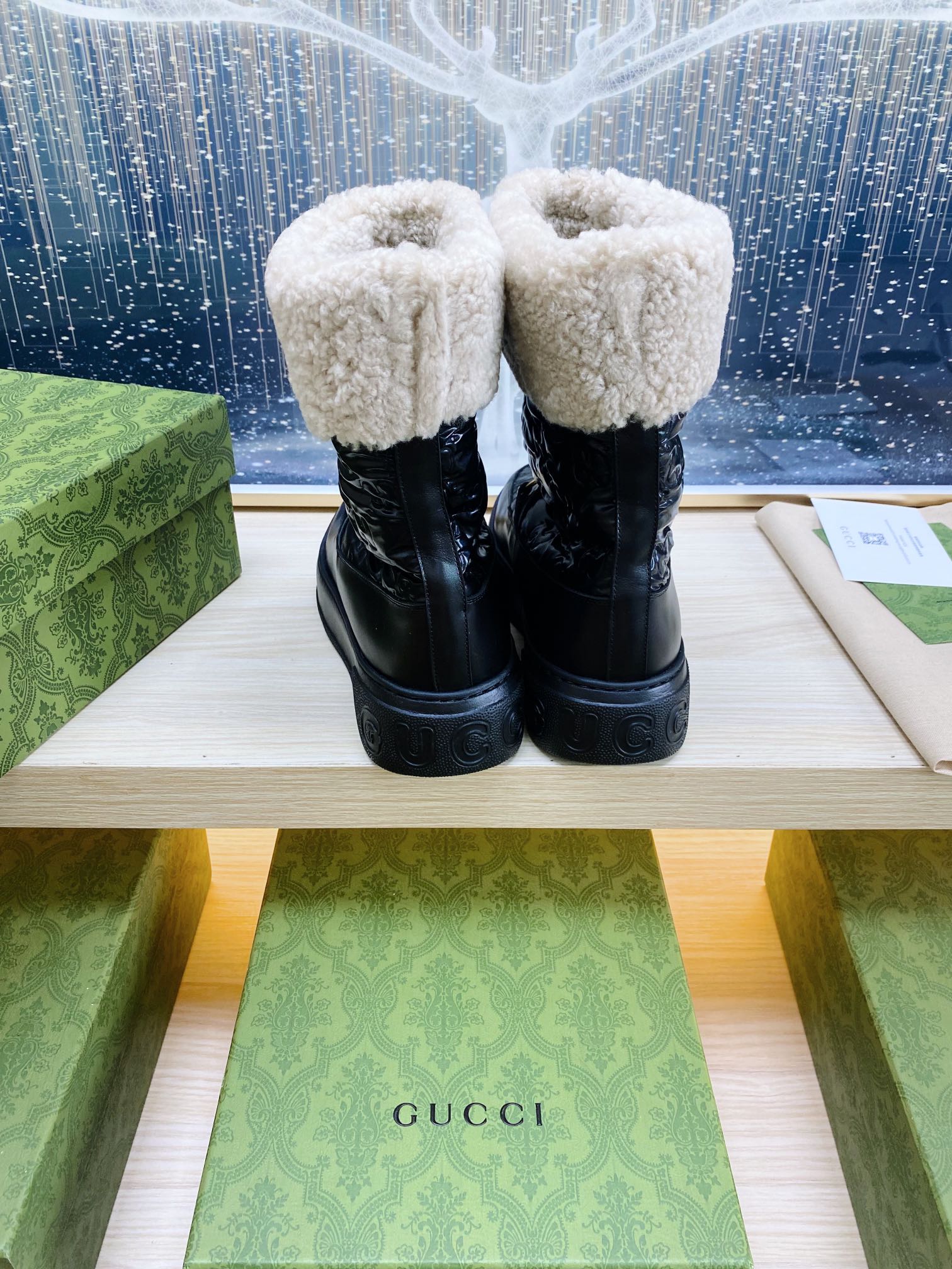 HORSEBIT ANKLE BOOTS WITH MERINO TRIM IN BLACK EMBOSSED CALFSKIN