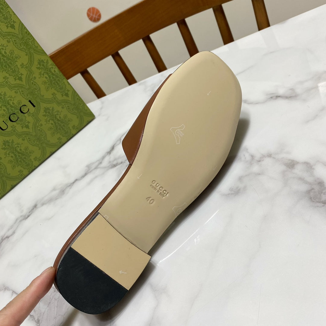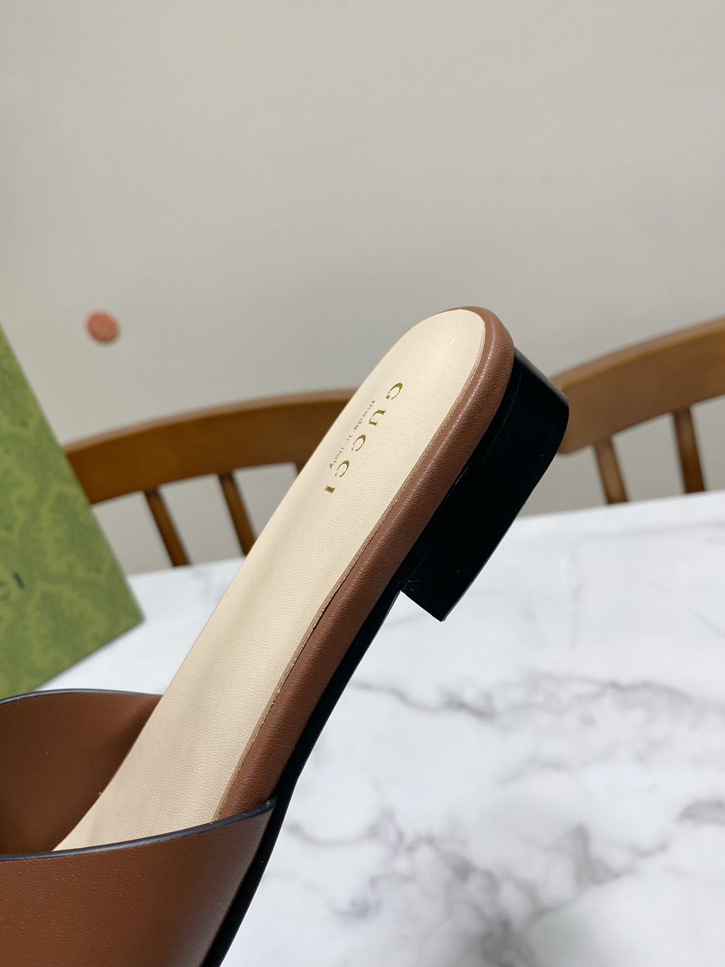 INTERLOCKING G SLIDE SANDAL IN BROWN BEIGE CALFSKIN