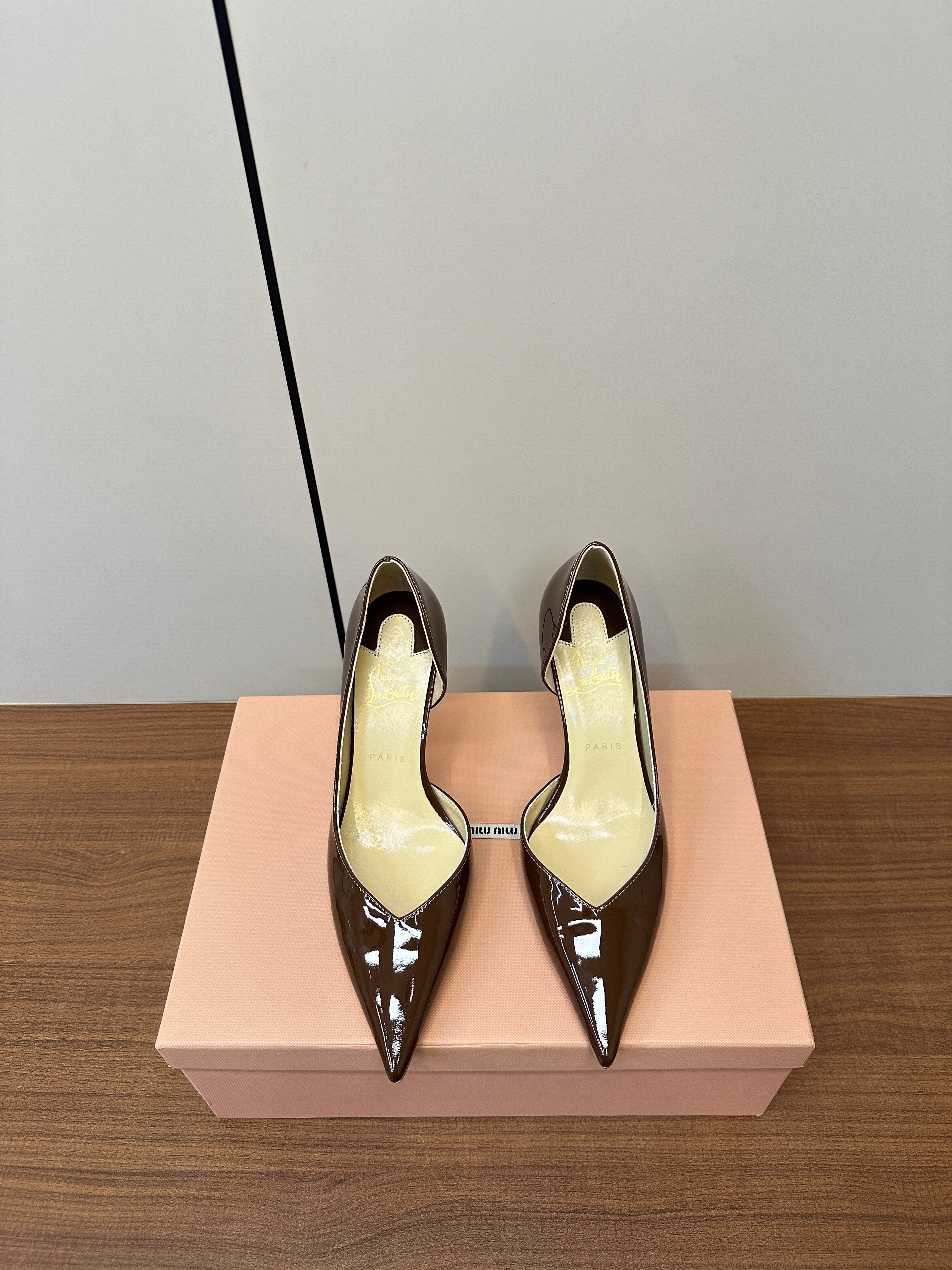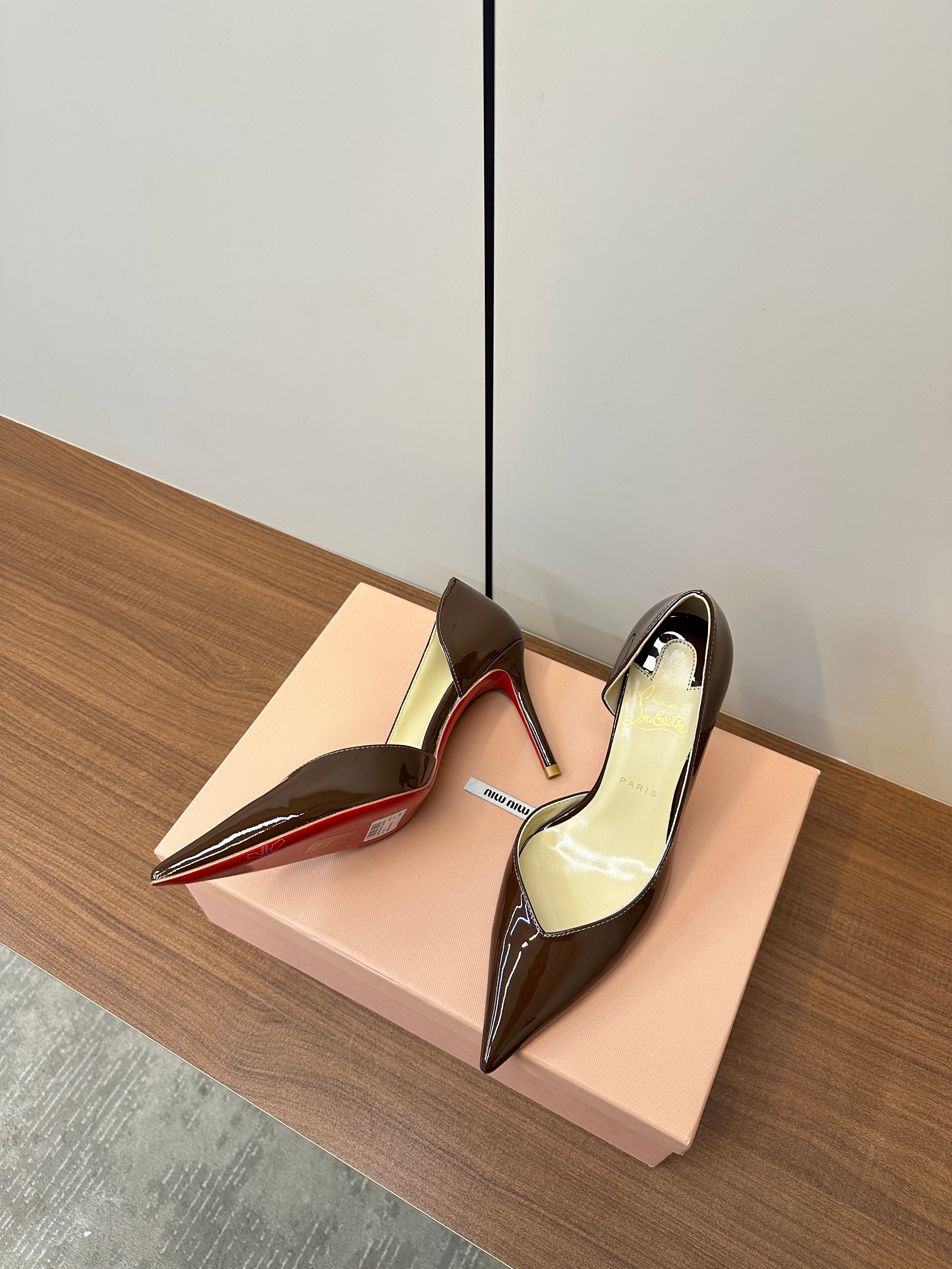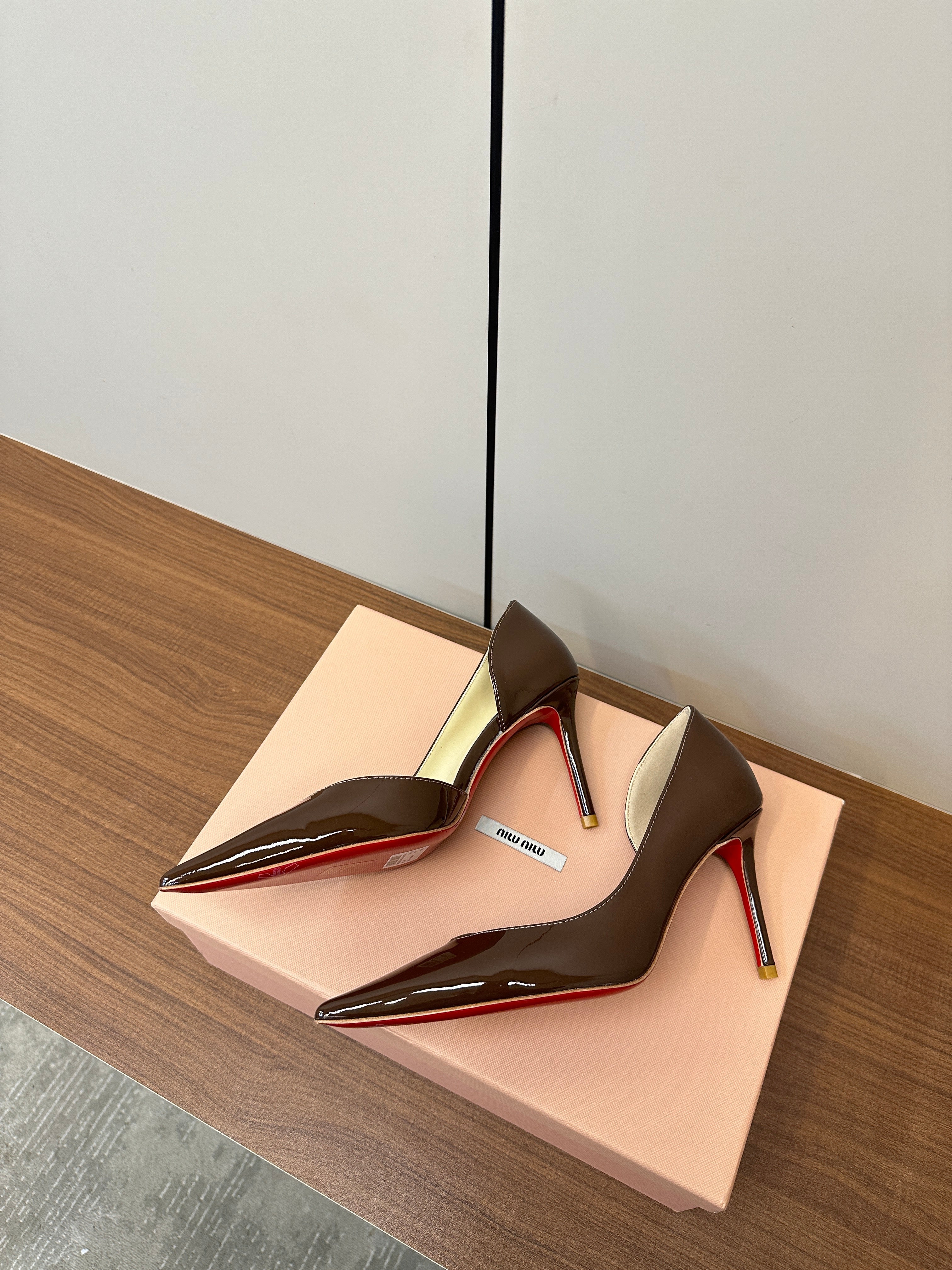 IRIZA PUMPS 85MM IN BROWN PATENT CALFSKIN