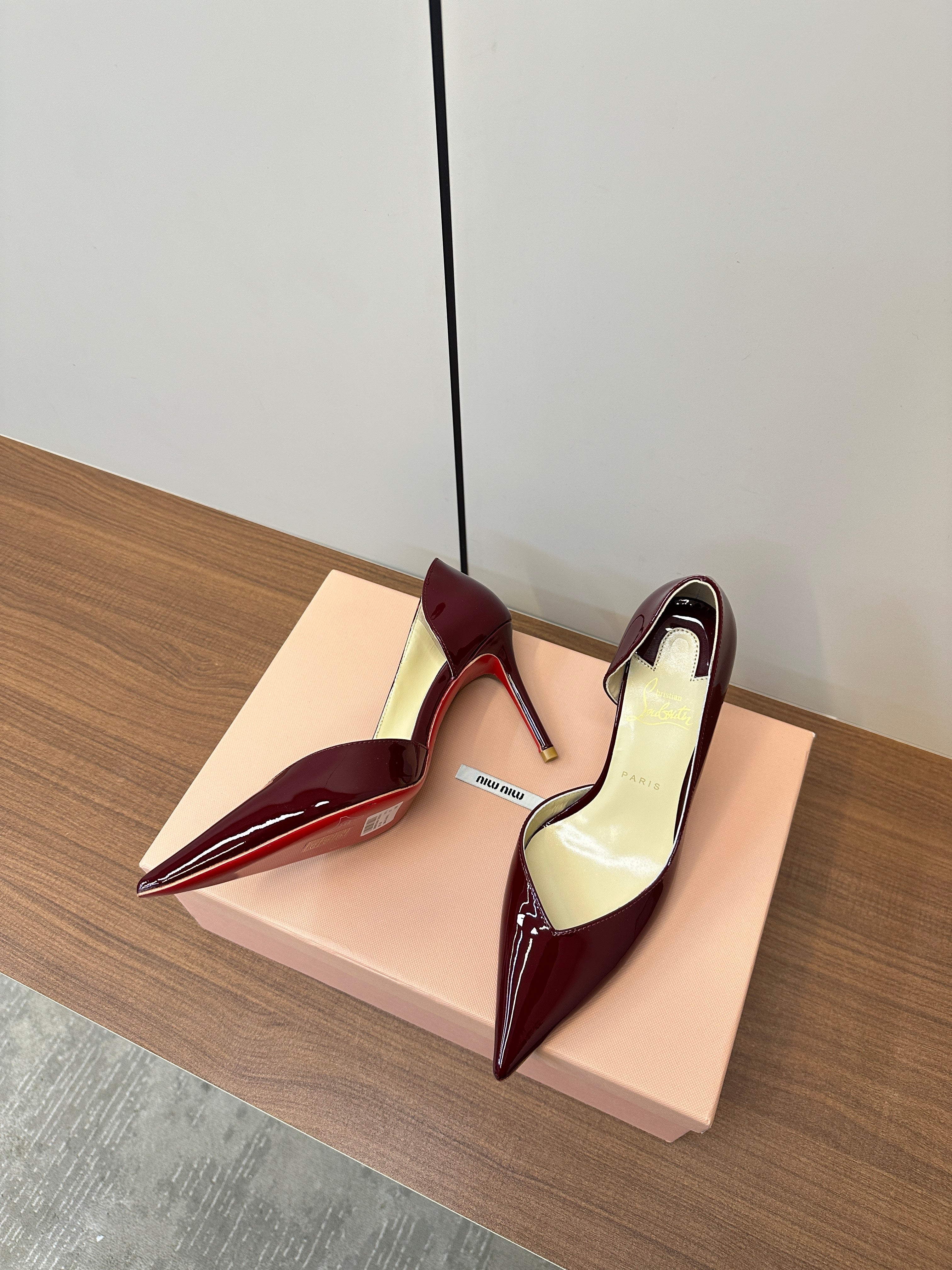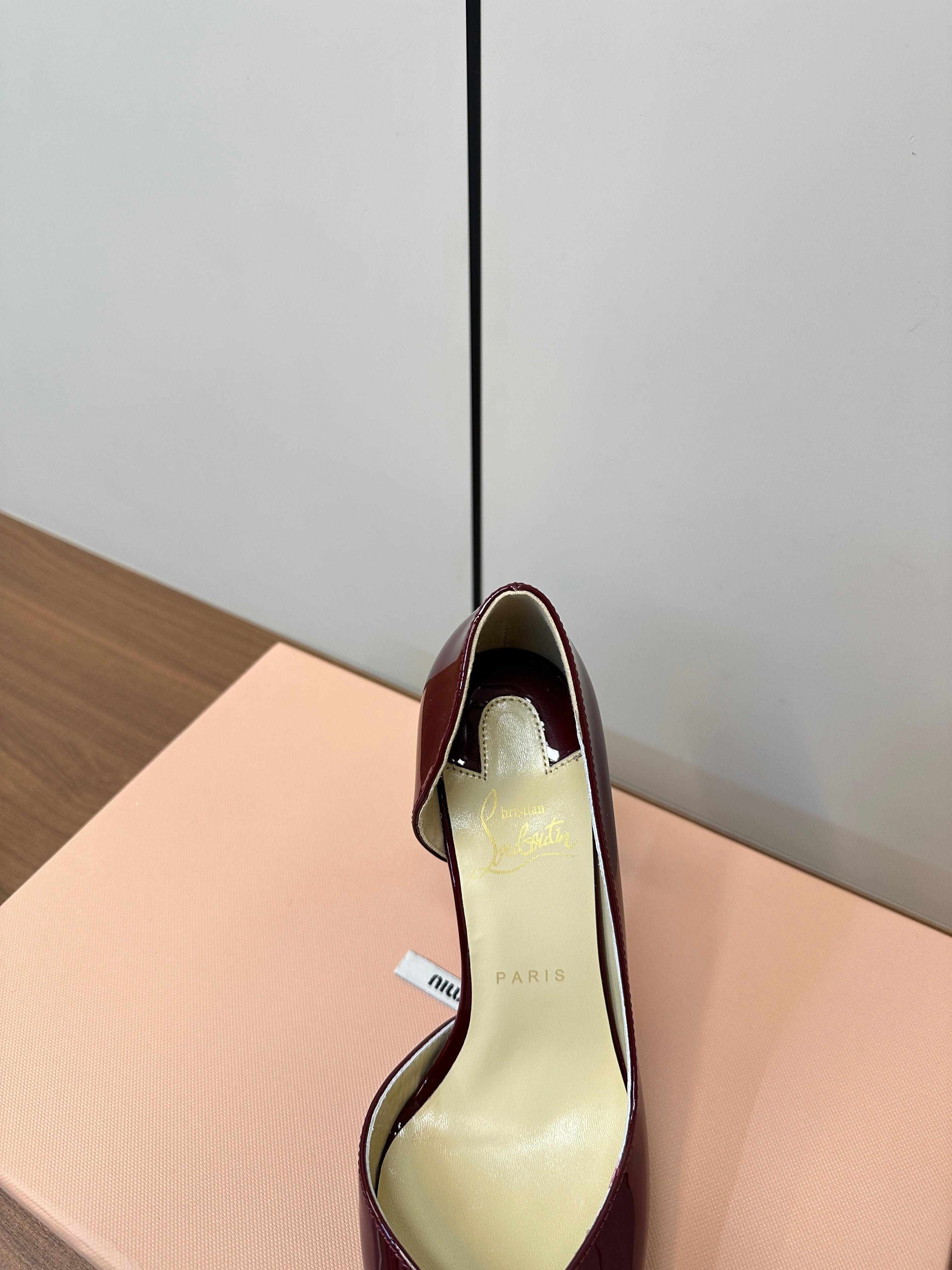 IRIZA PUMPS 85MM IN BURGUNDY PATENT CALFSKIN