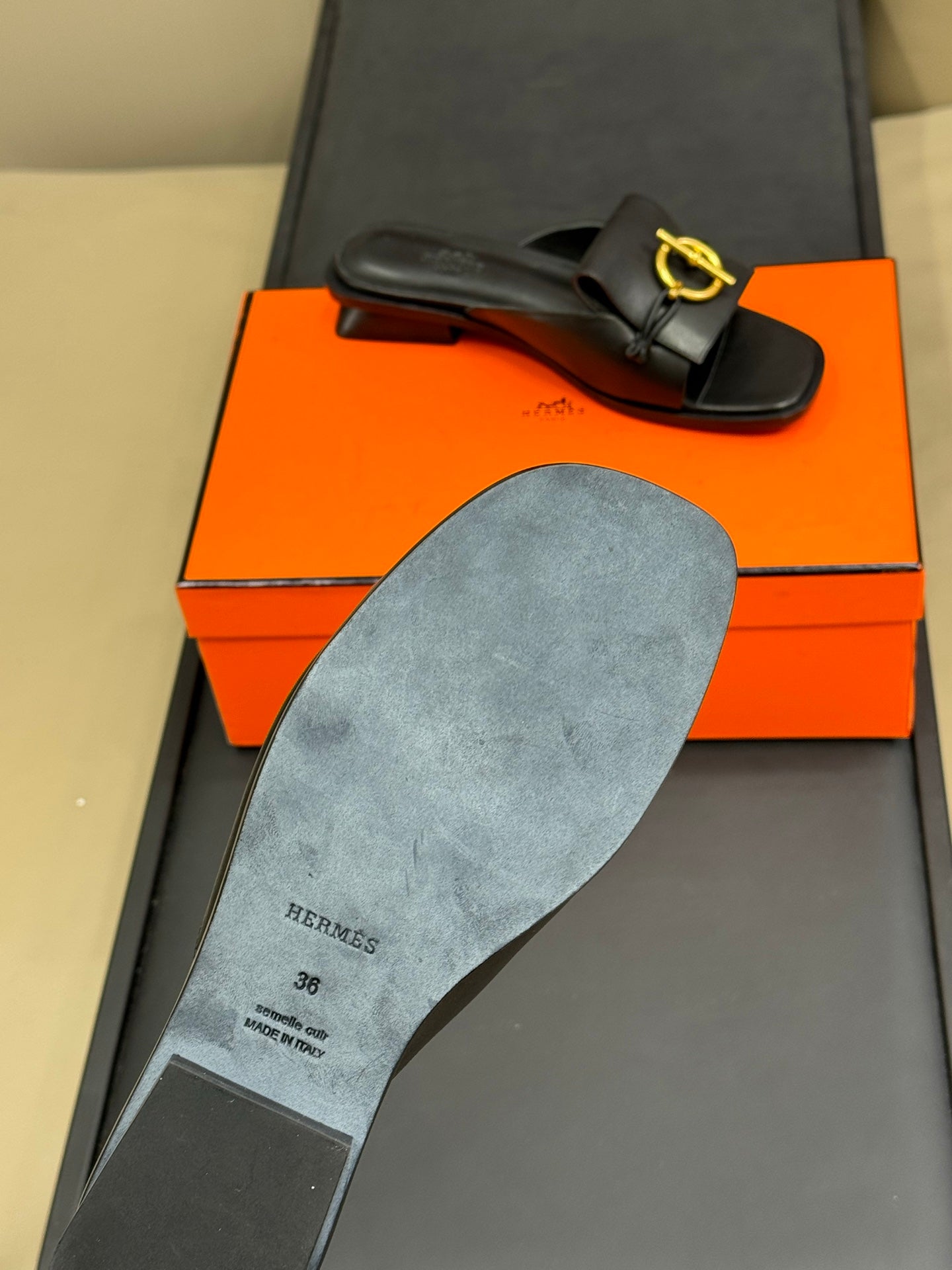 ISLE SANDAL IN BLACK CALFSKIN