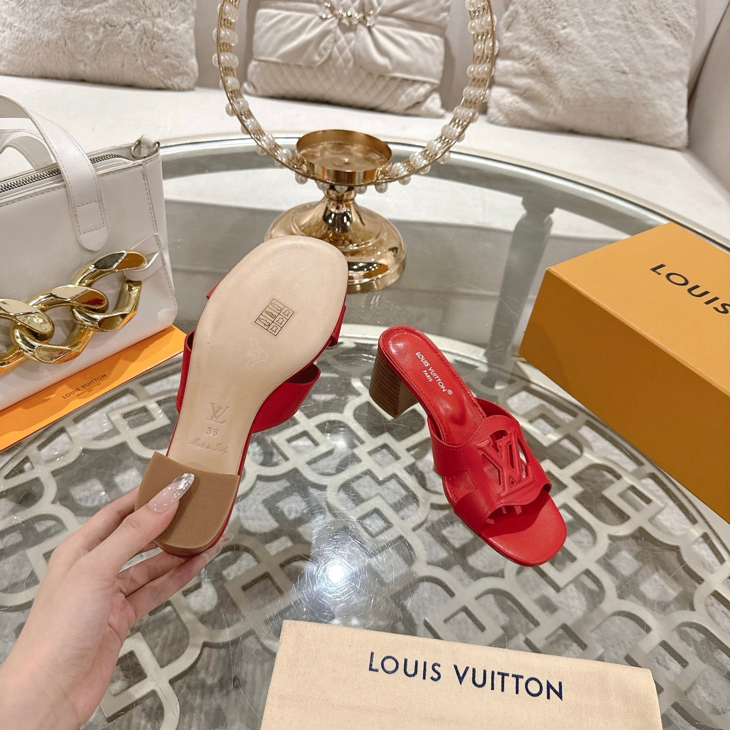 ISOLA HIGH 55 MM MULE IN CHERRY RED CALFSKIN