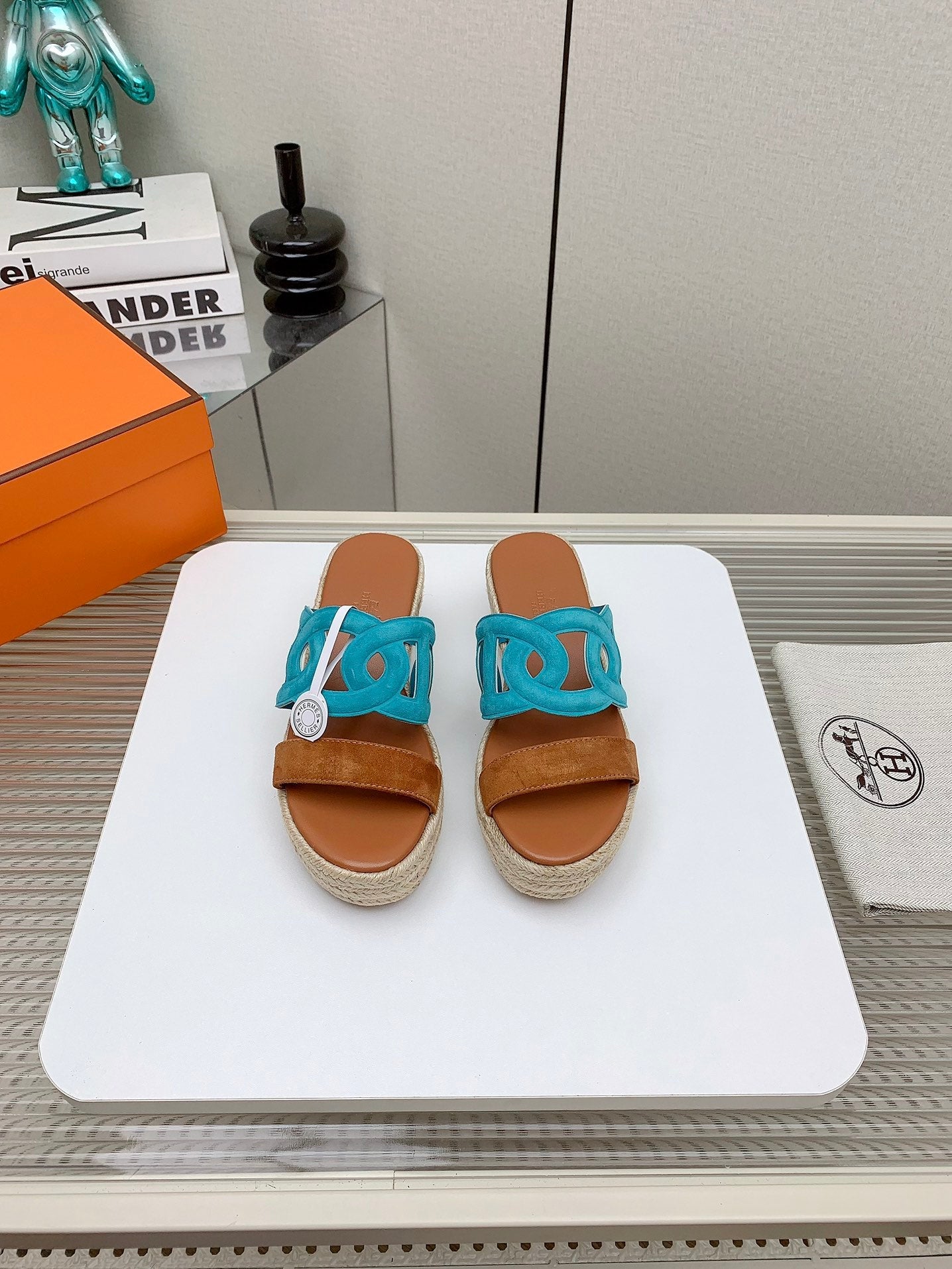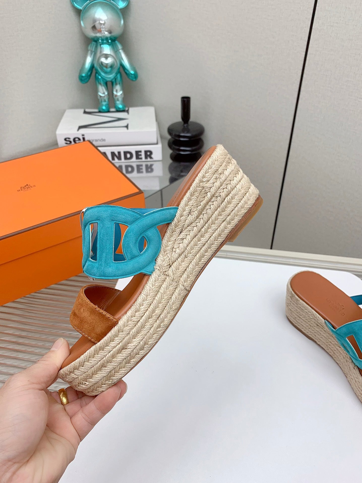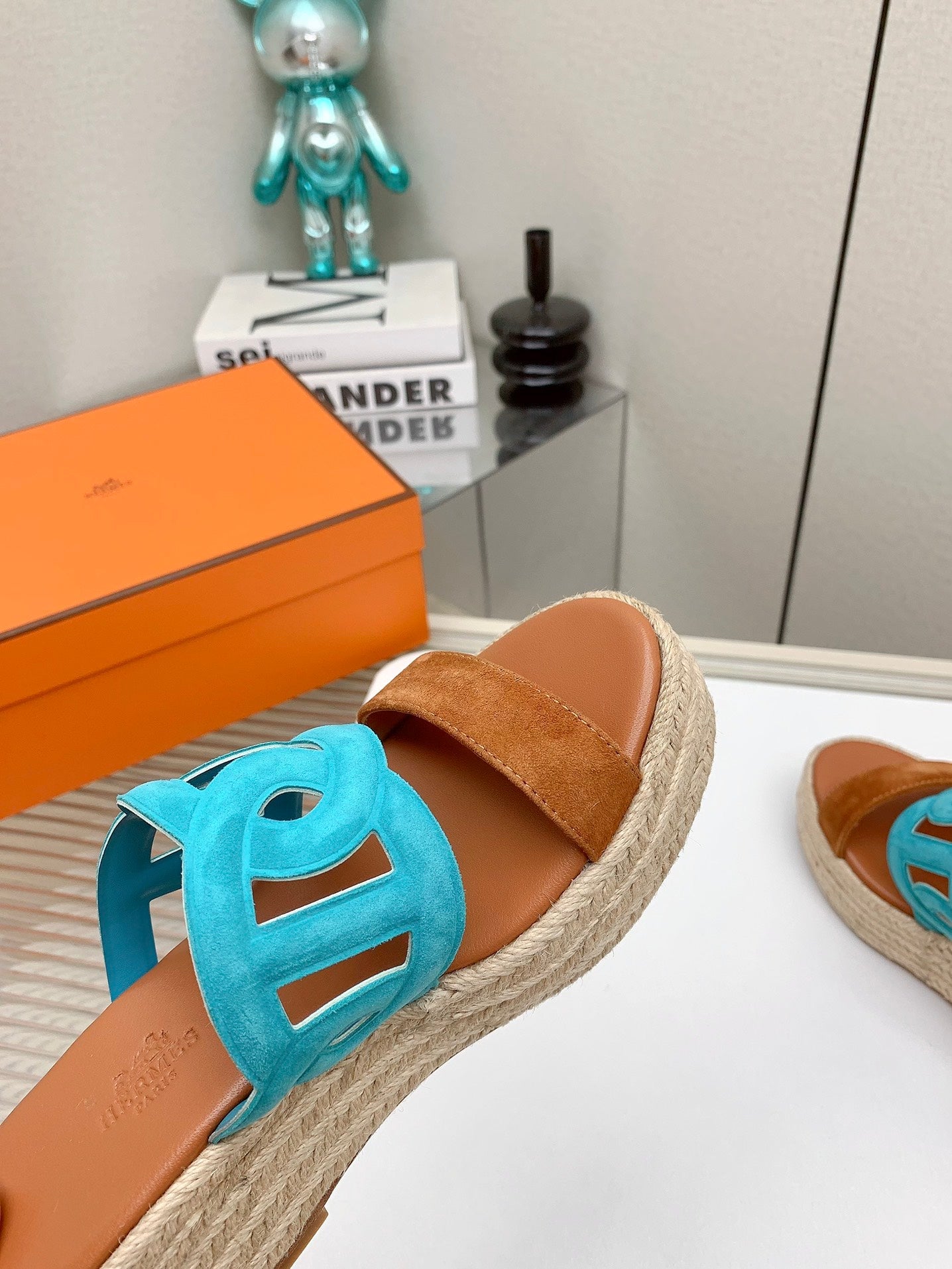 ITHEA 85 MM ESPADRILLE IN BRONZE BROWN AND CERULEAN BLUE SUEDE