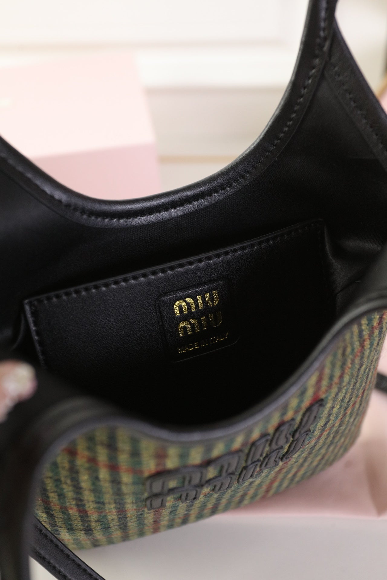 IVY MINI TOTE BAG 20 IN COLORFUL TARTAN AND BLACK LEATHER TRIM