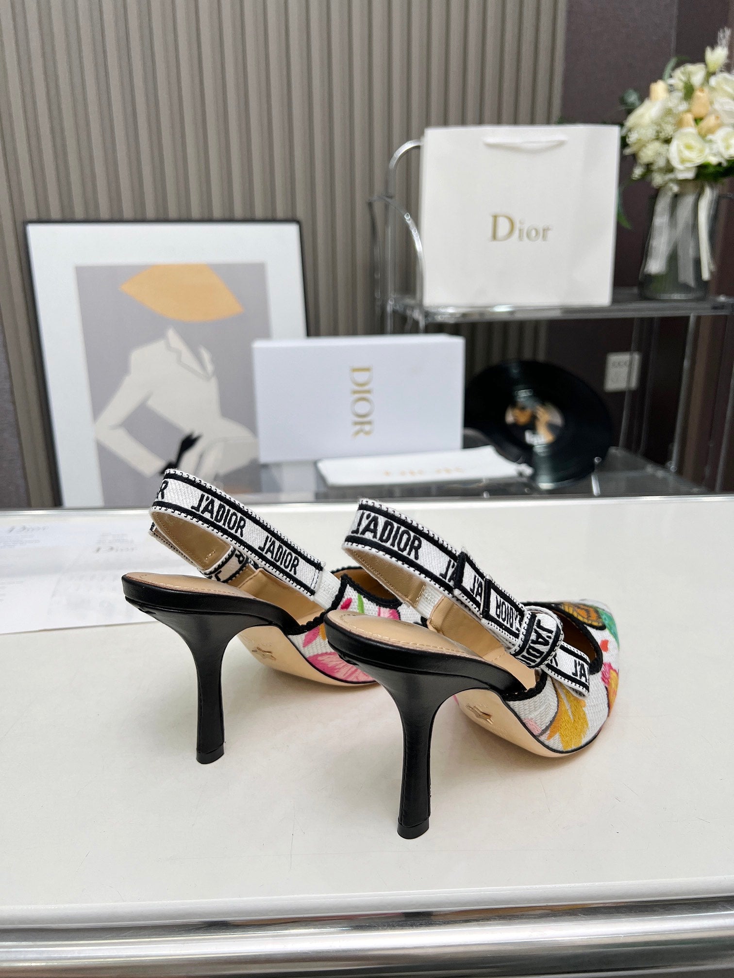 J'ADIOR SLINGBACK PUMP COLORFUL NATURAL RAFFIA AND EMBROIDERED COTTON 10 CM 130857