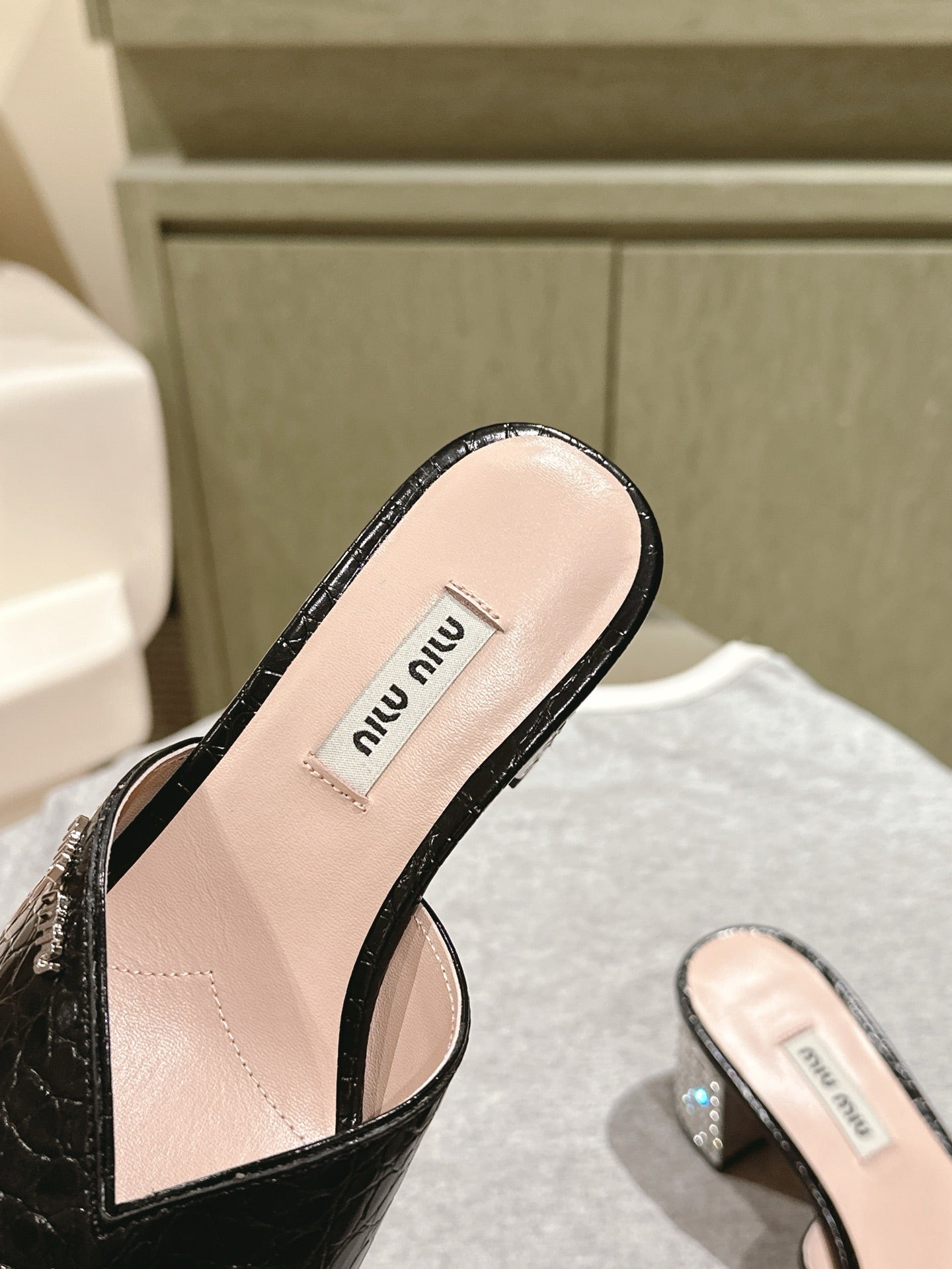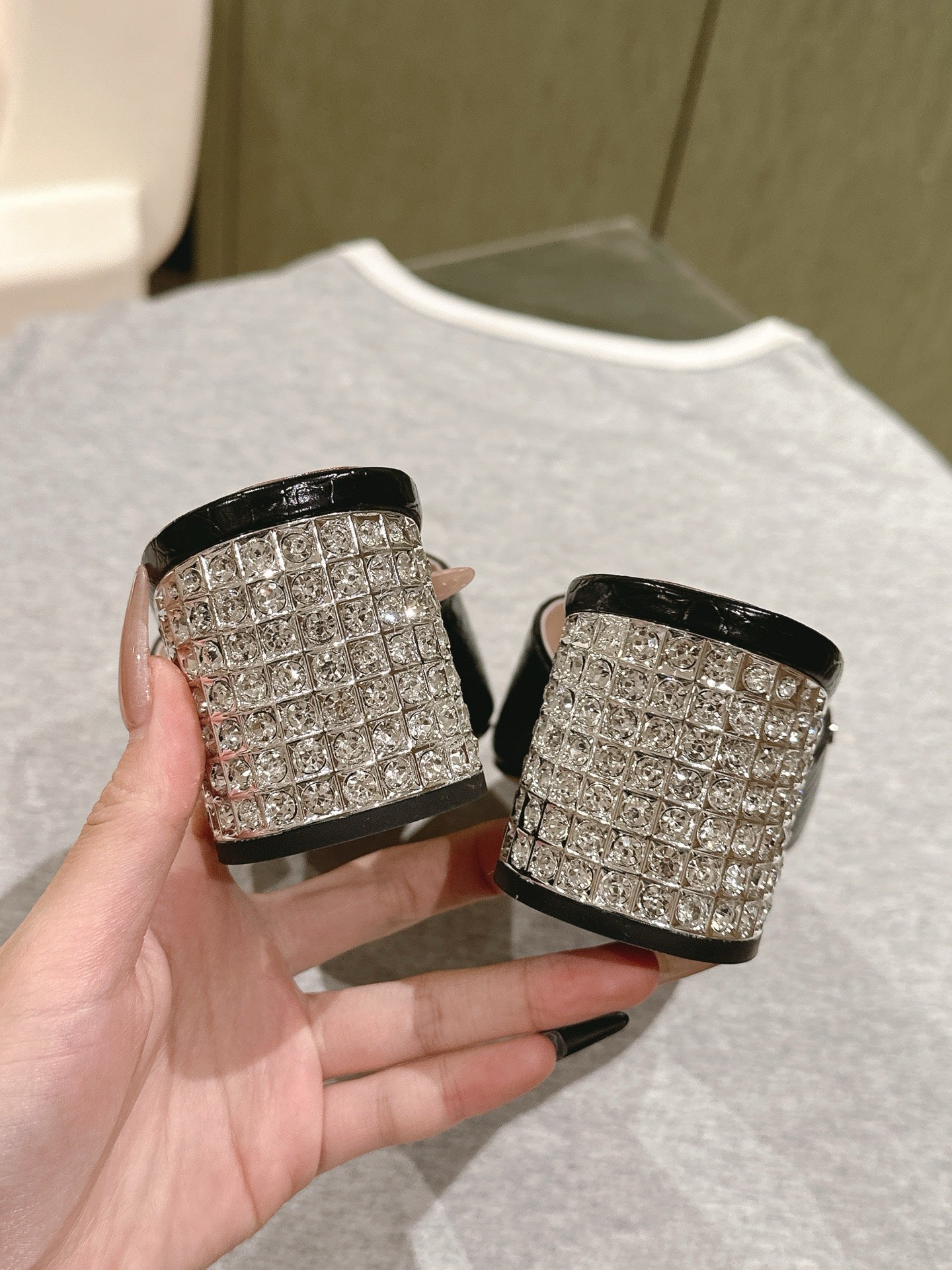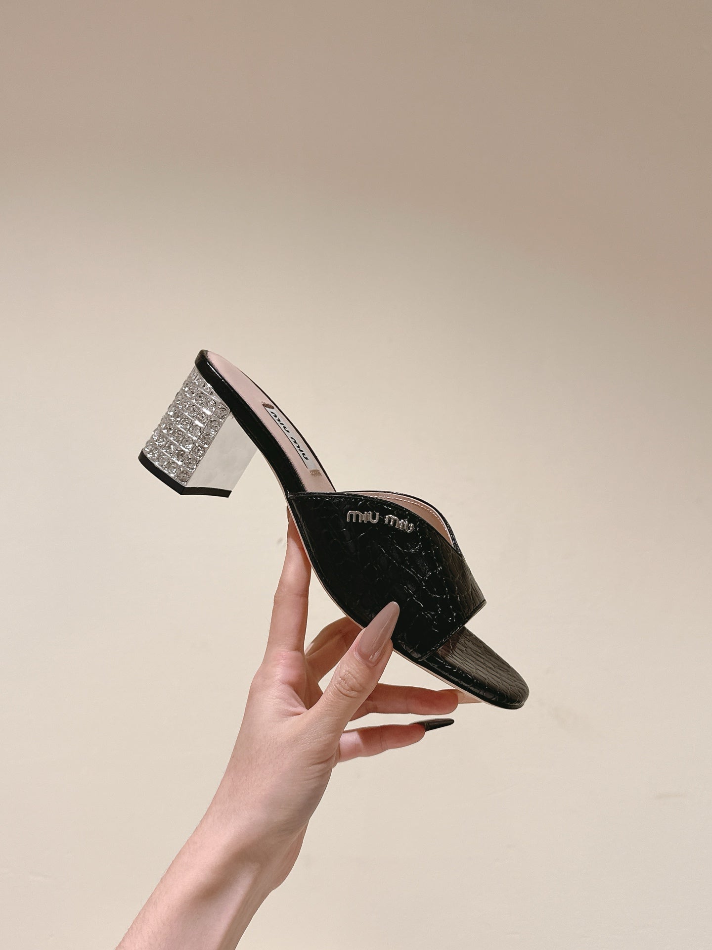 JEWELLED HEEL 55 MULE SANDALS IN BLACK CALFSKIN