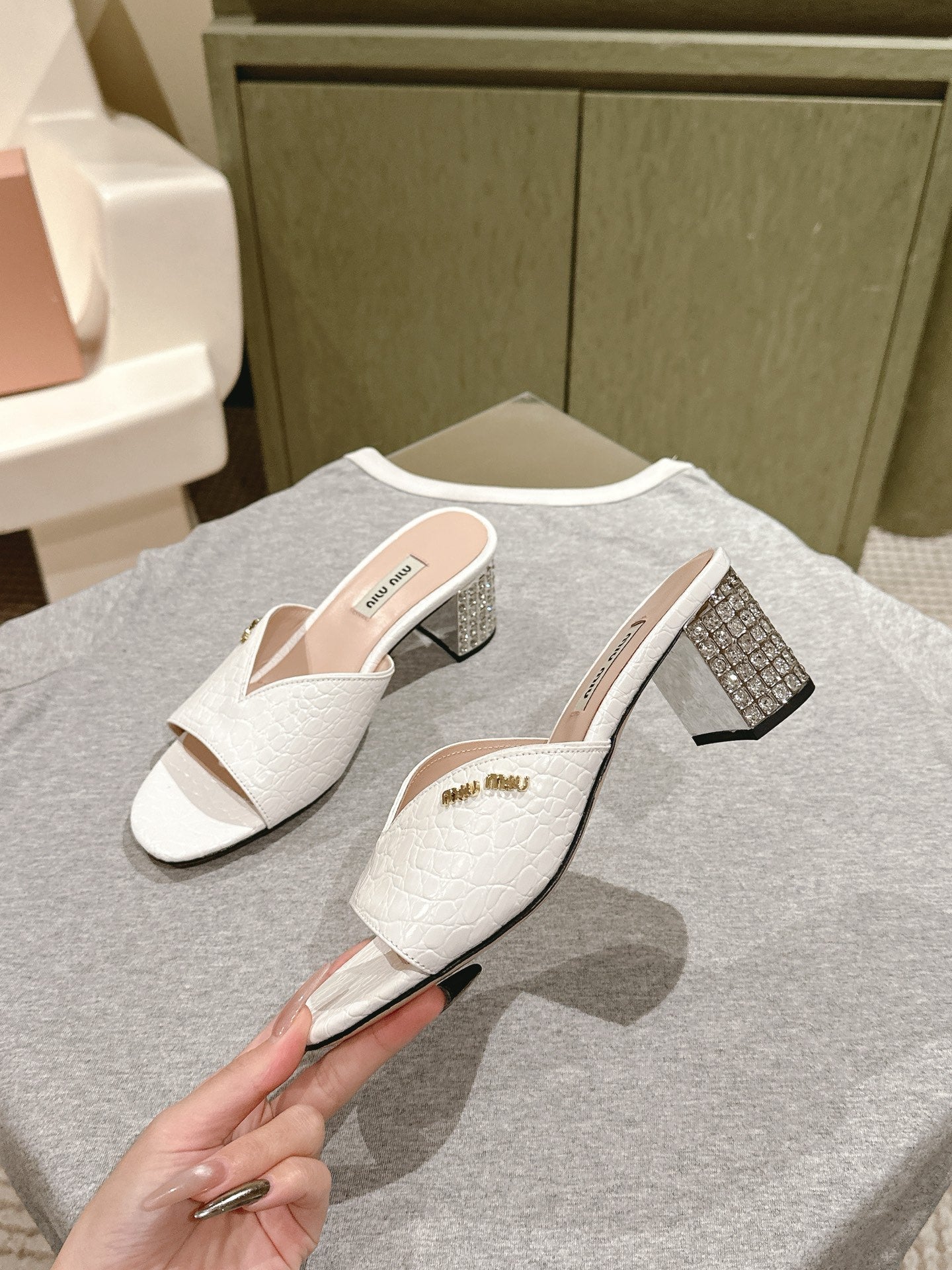 JEWELLED HEEL 55 MULE SANDALS IN WHITE CALFSKIN
