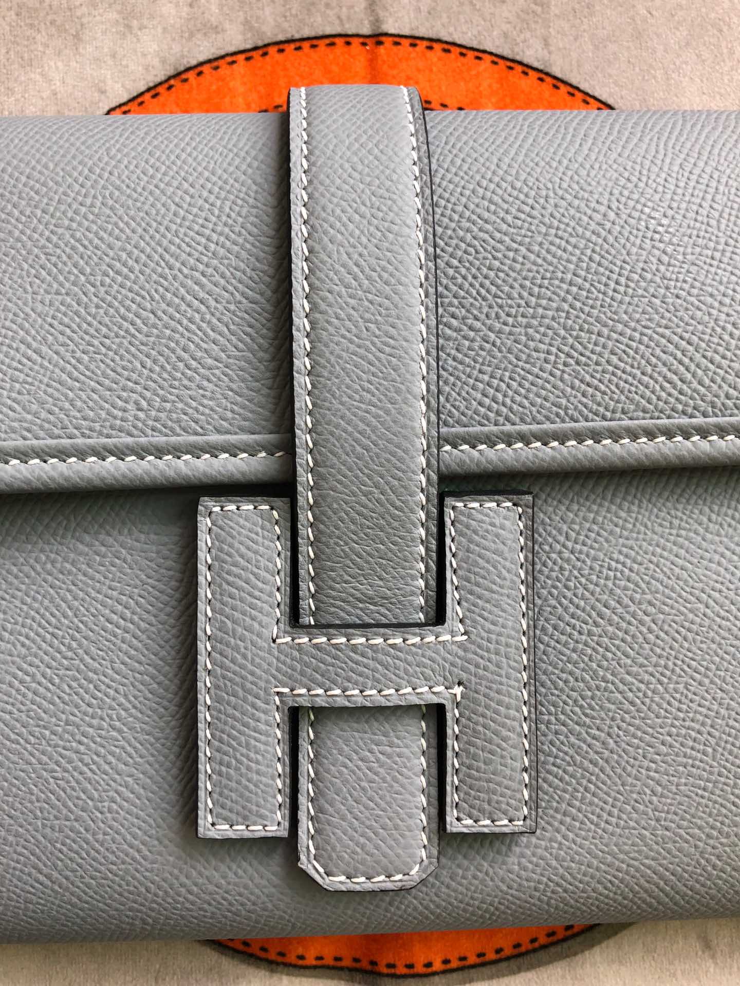 JIGE ELAN 29 CLUTCH IN PALE GRAY CALFSKIN