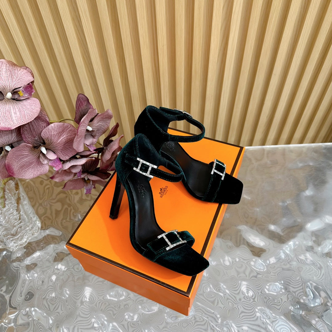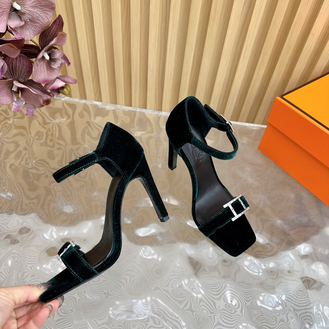 JULY SANDAL 105 MM IN TEAL GREEN VELVET