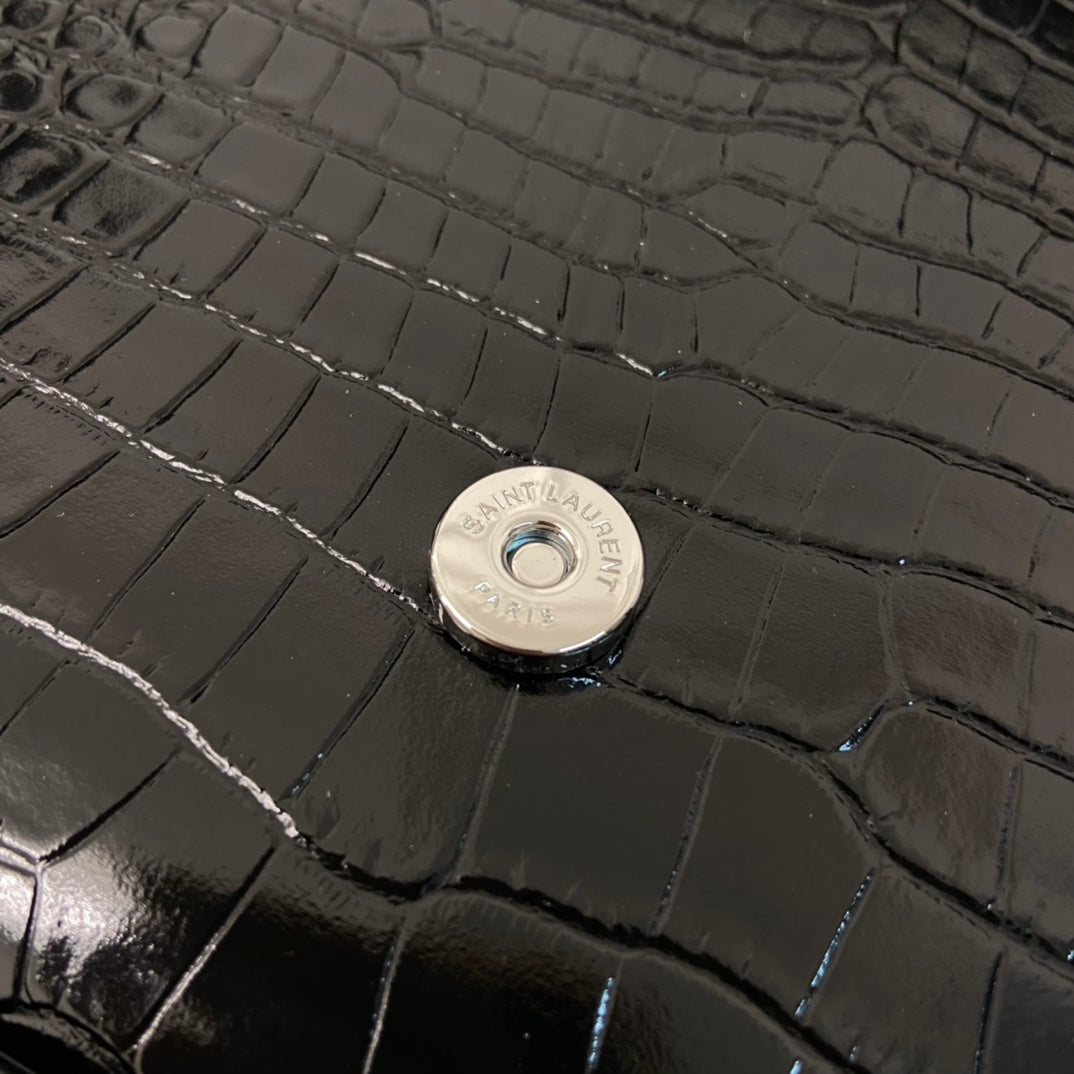 KATE TASSEL 24 CROCODILE PATTERN CALFSKIN BLACK WITH SILVER LOGO