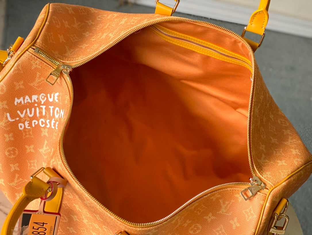KEEPALL BANDOULIÈRE 55 IN ORANGE MONOGRAM HERITAGE CANVAS