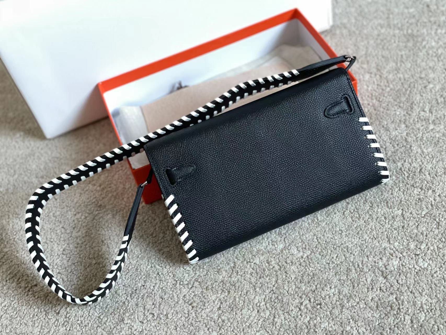 KELLY CLASSIQUE TO GO WALLET 20 IN BLACK CALFSKIN WITH SILVER HARDWARE