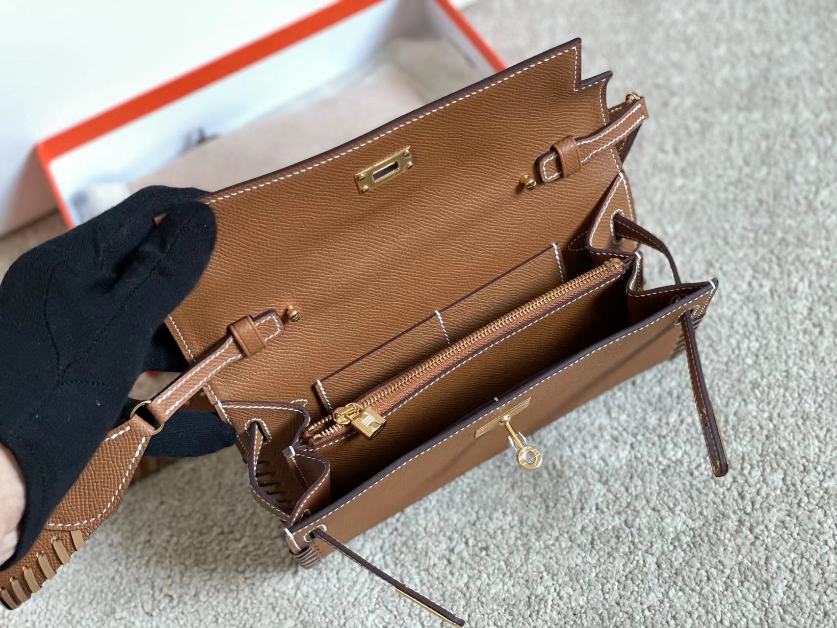 KELLY CLASSIQUE TO GO WALLET 20 IN CHOCOLATE BROWN CALFSKIN WITH GOLD HARDWARE