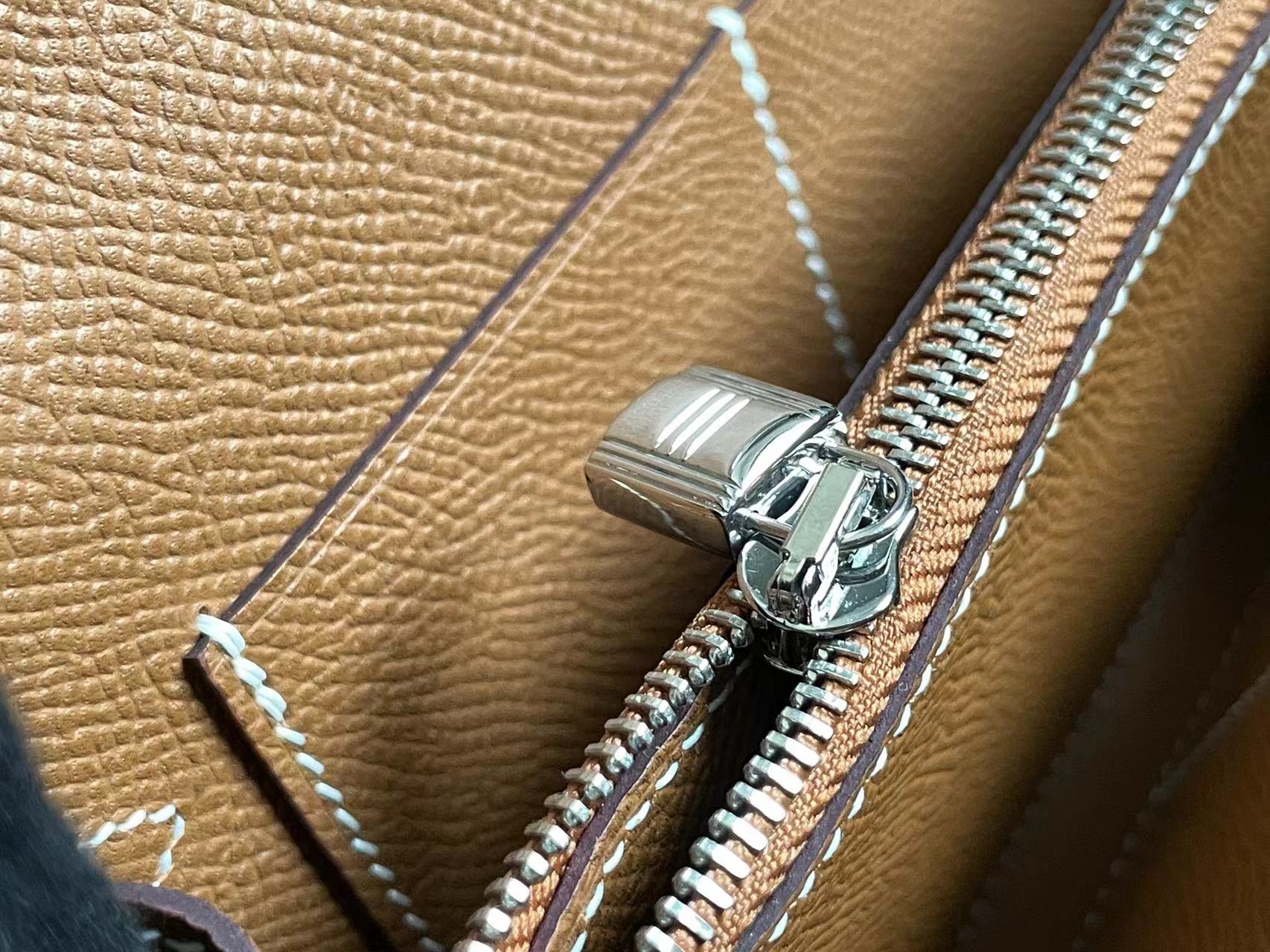 KELLY CLASSIQUE TO GO WALLET 20 IN CHOCOLATE BROWN CALFSKIN WITH SILVER HARDWARE
