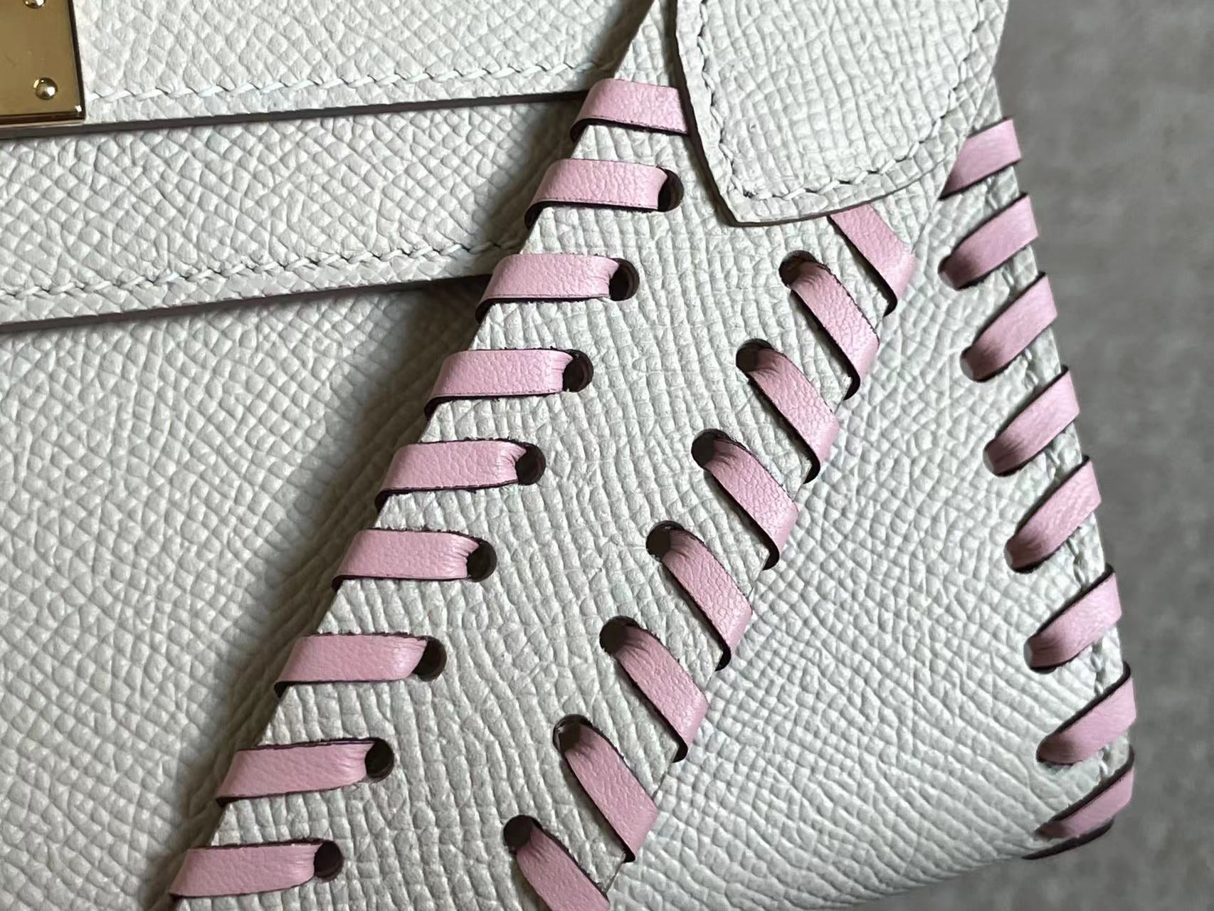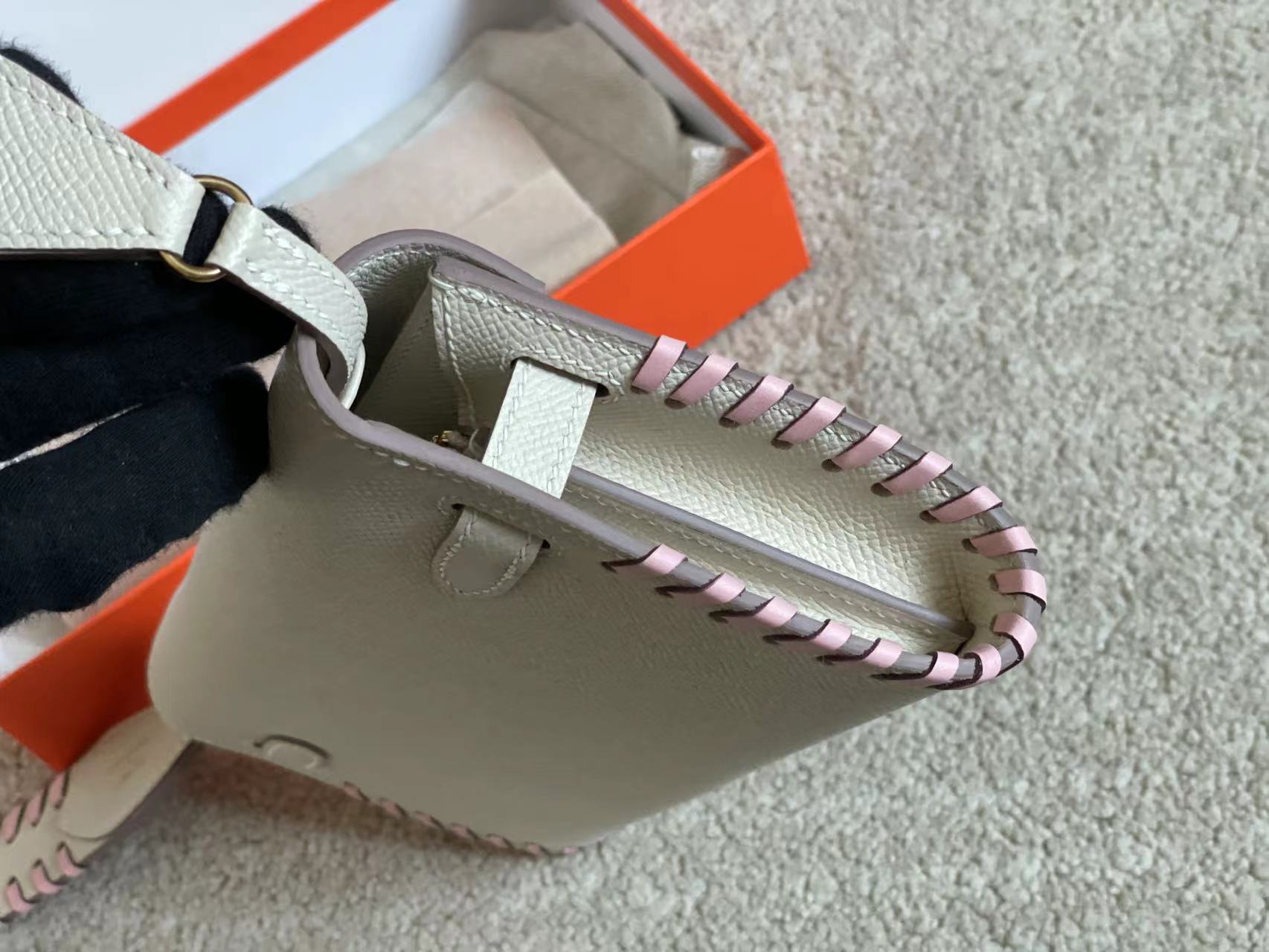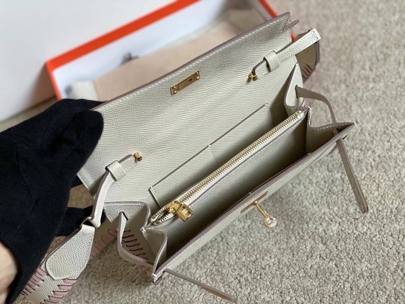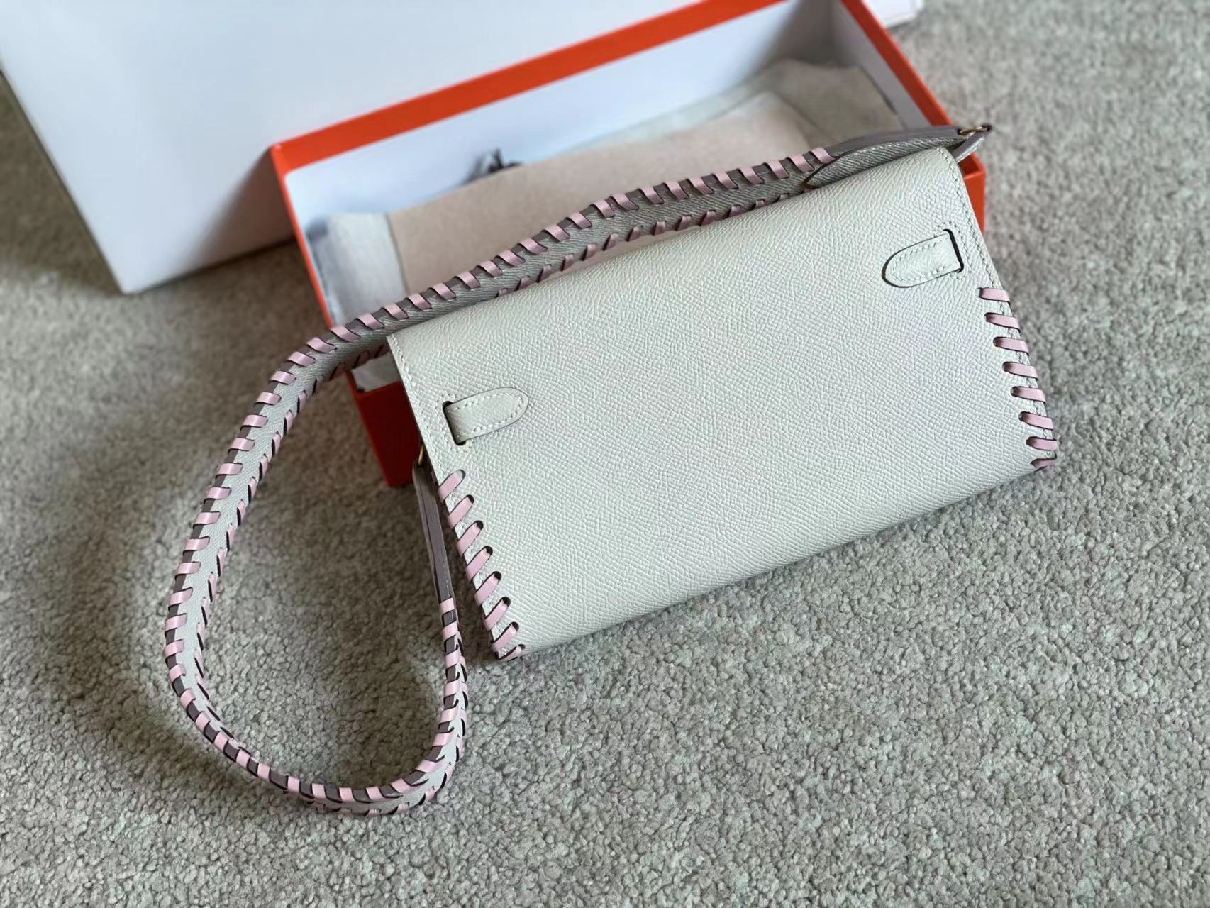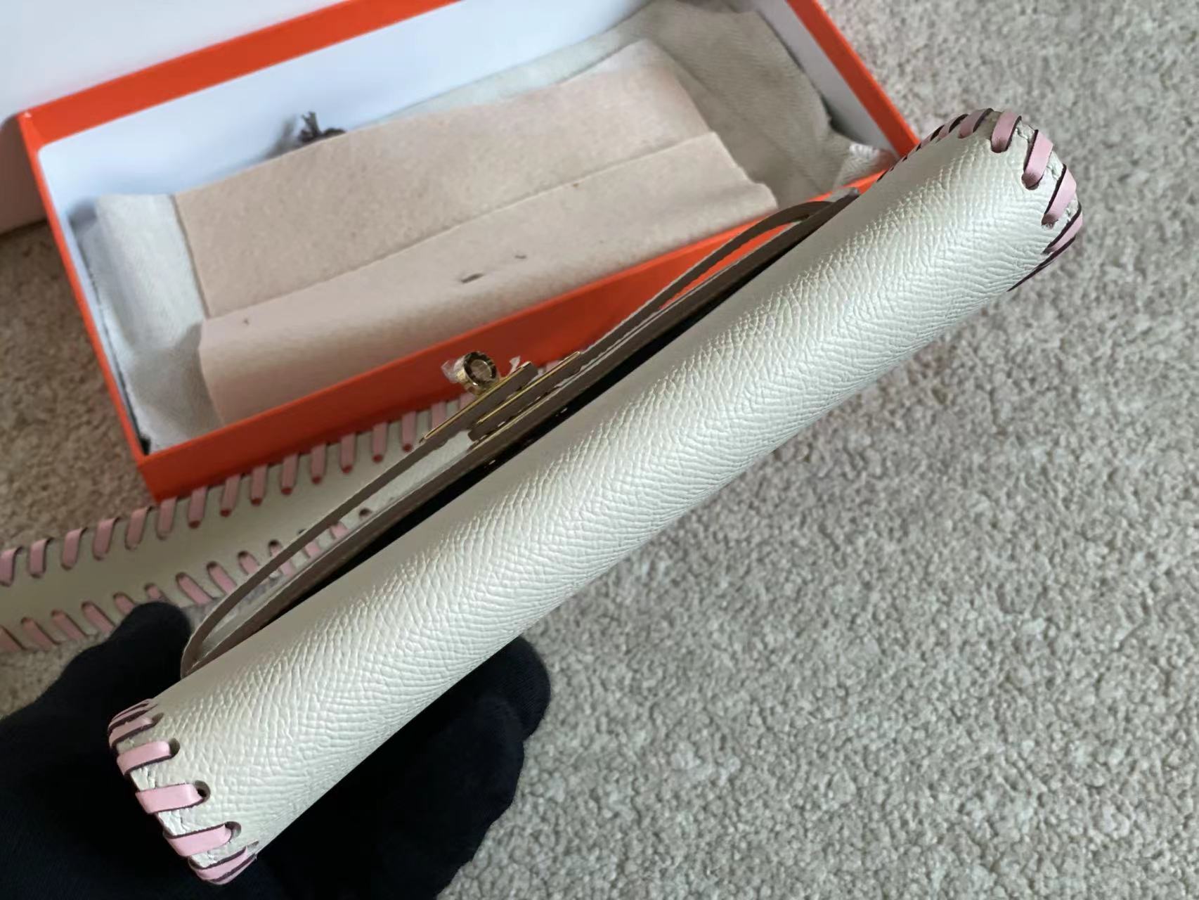 KELLY CLASSIQUE TO GO WALLET 20 IN PALE GRAY CALFSKIN WITH GOLD HARDWARE
