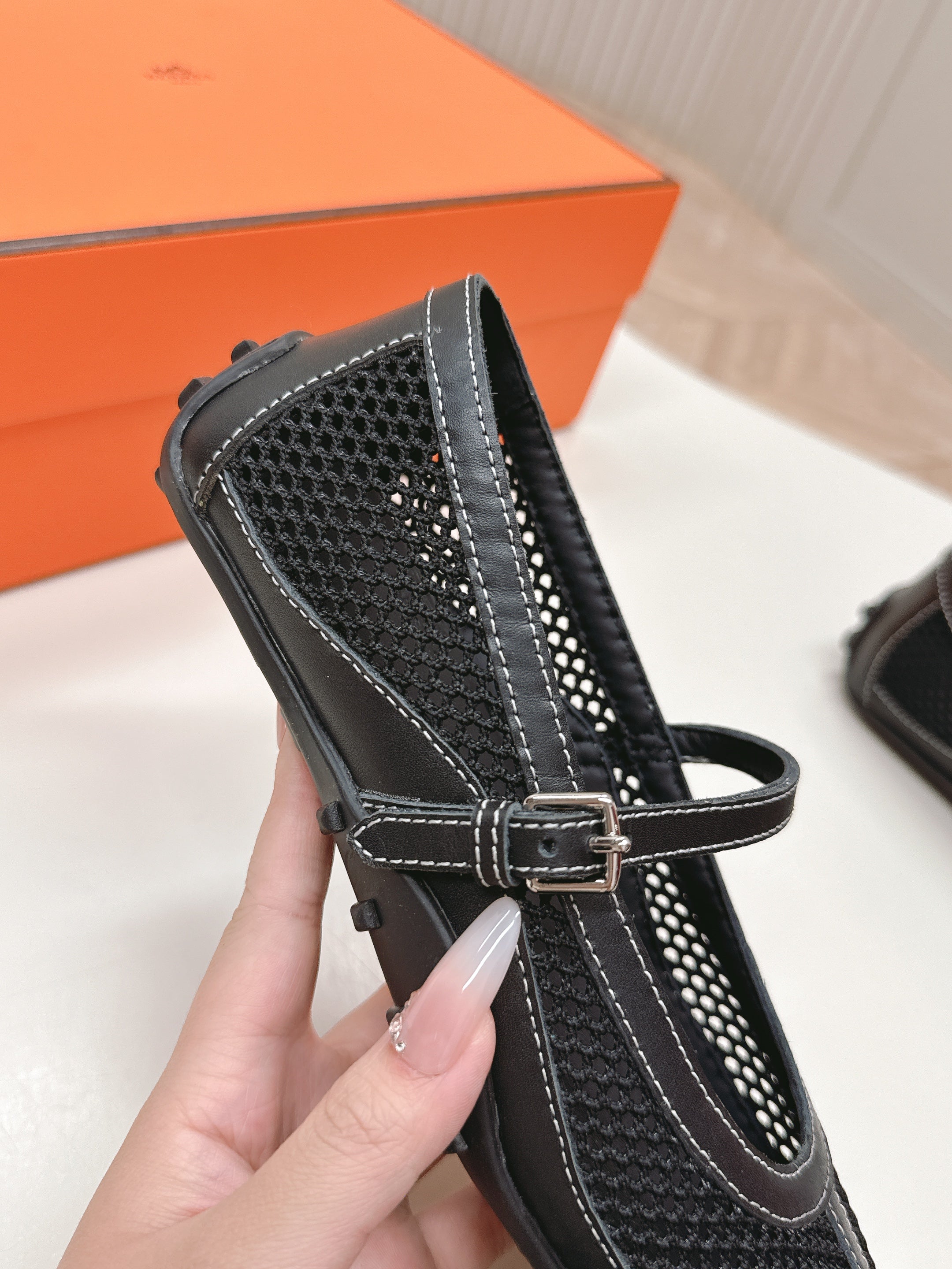 KICHU BALLET FLAT IN BLACK CROCHET KNIT AND CALFSKIN