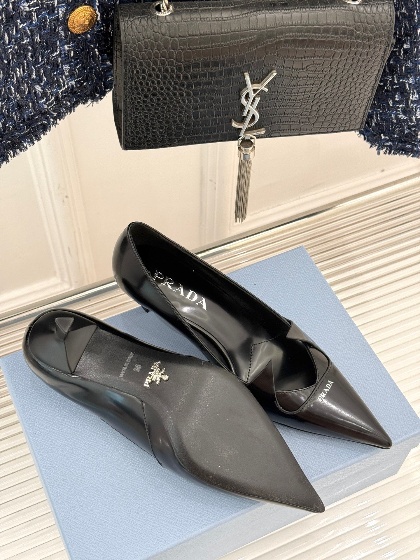 KITTEN HEEL PUMPS IN BLACK CALFSKIN