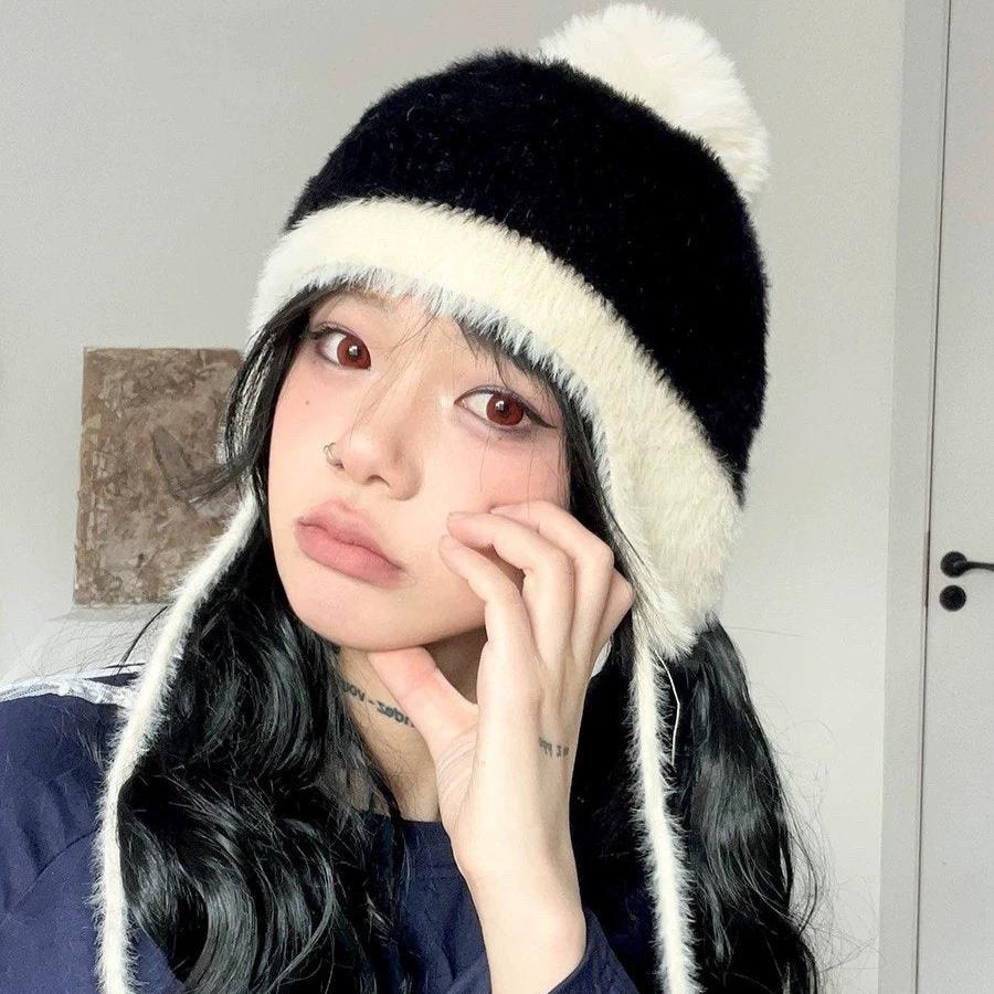 KNIT HAT IN BLACK MIX WHITE WOOL 426270