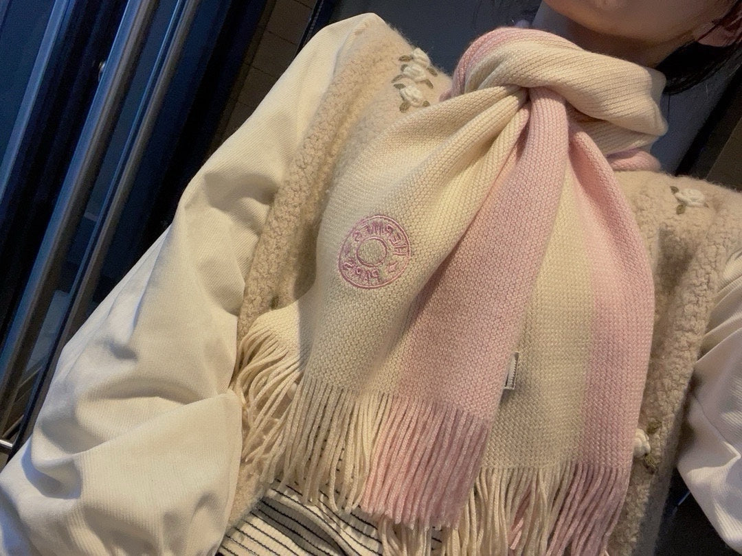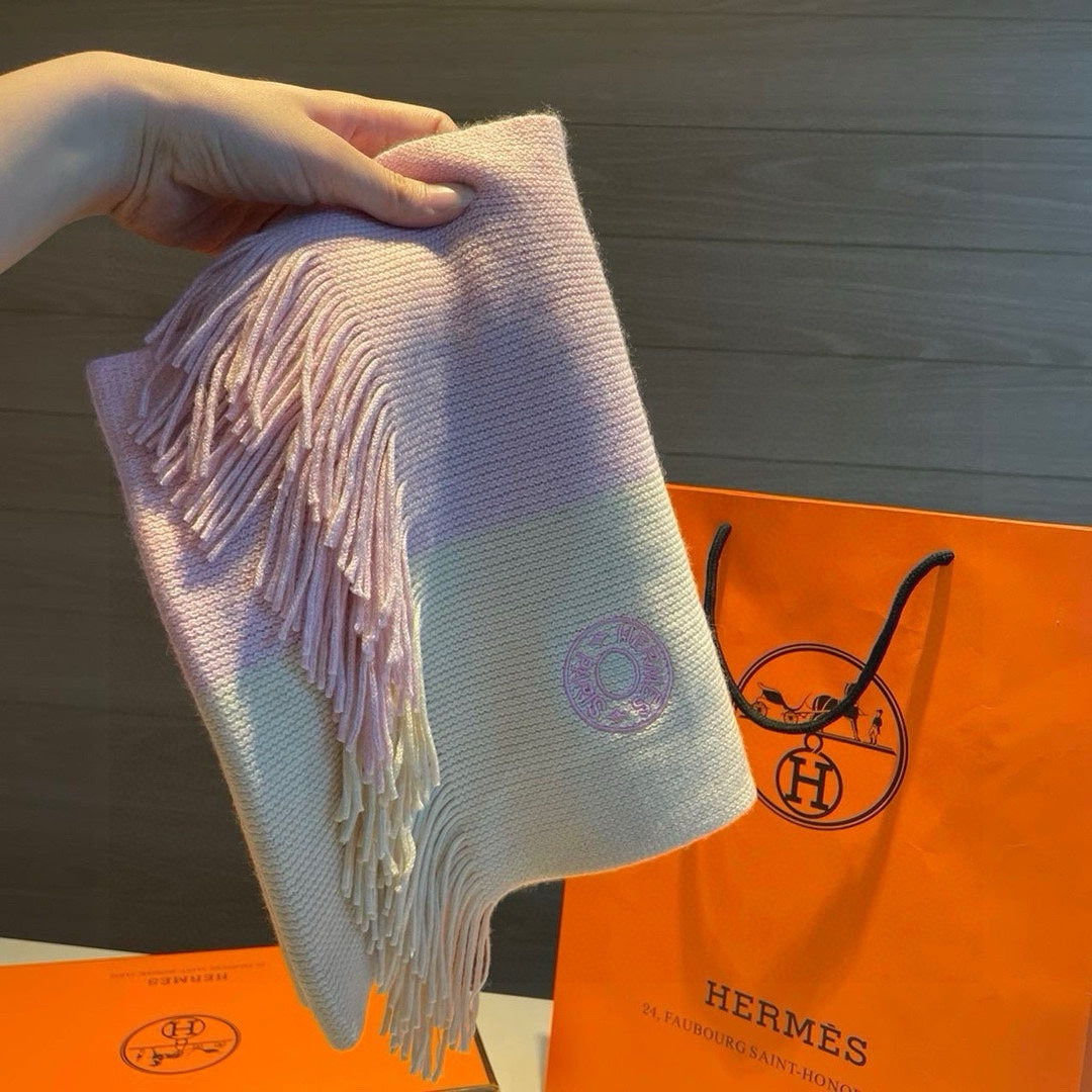 KNIT SCARF 180 IN LIGHT PINK MIX WHITE CASHMERE