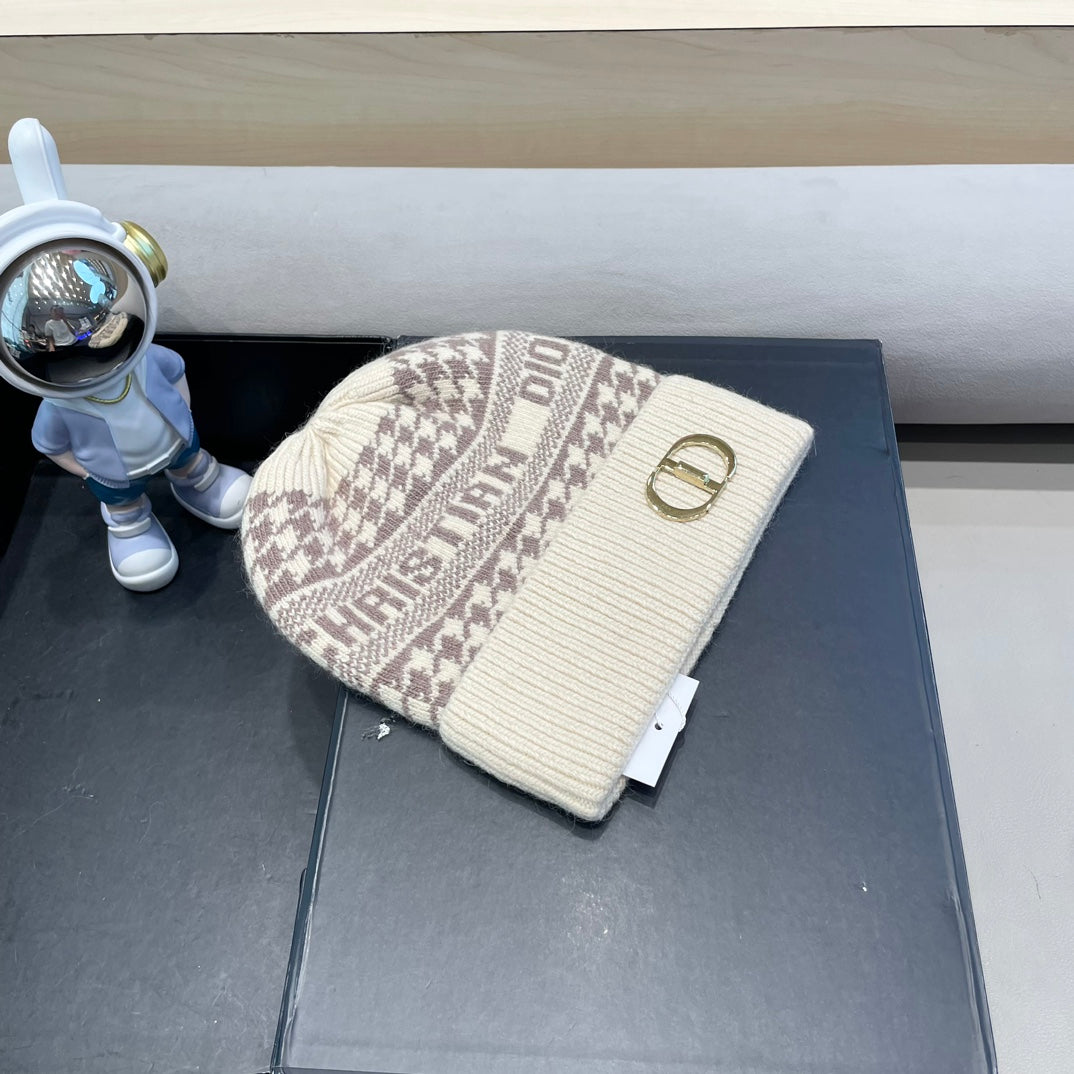 KNITTED BEANIE HAT IN BEIGE CASHMERE WOOL 422480
