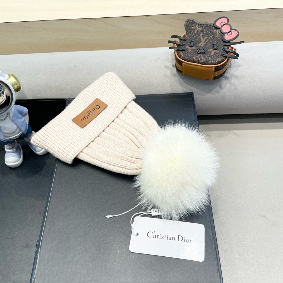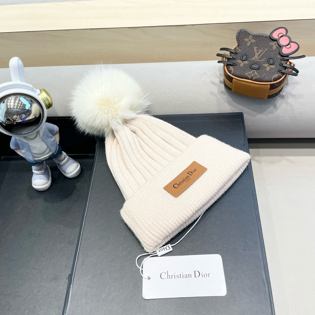 KNITTED BEANIE HAT IN BEIGE WOOL AND FOX FUR 435034